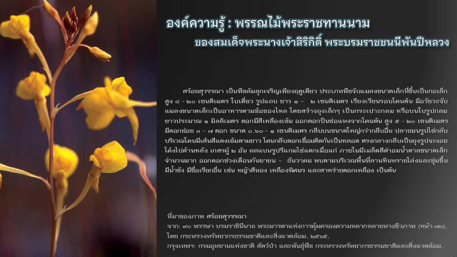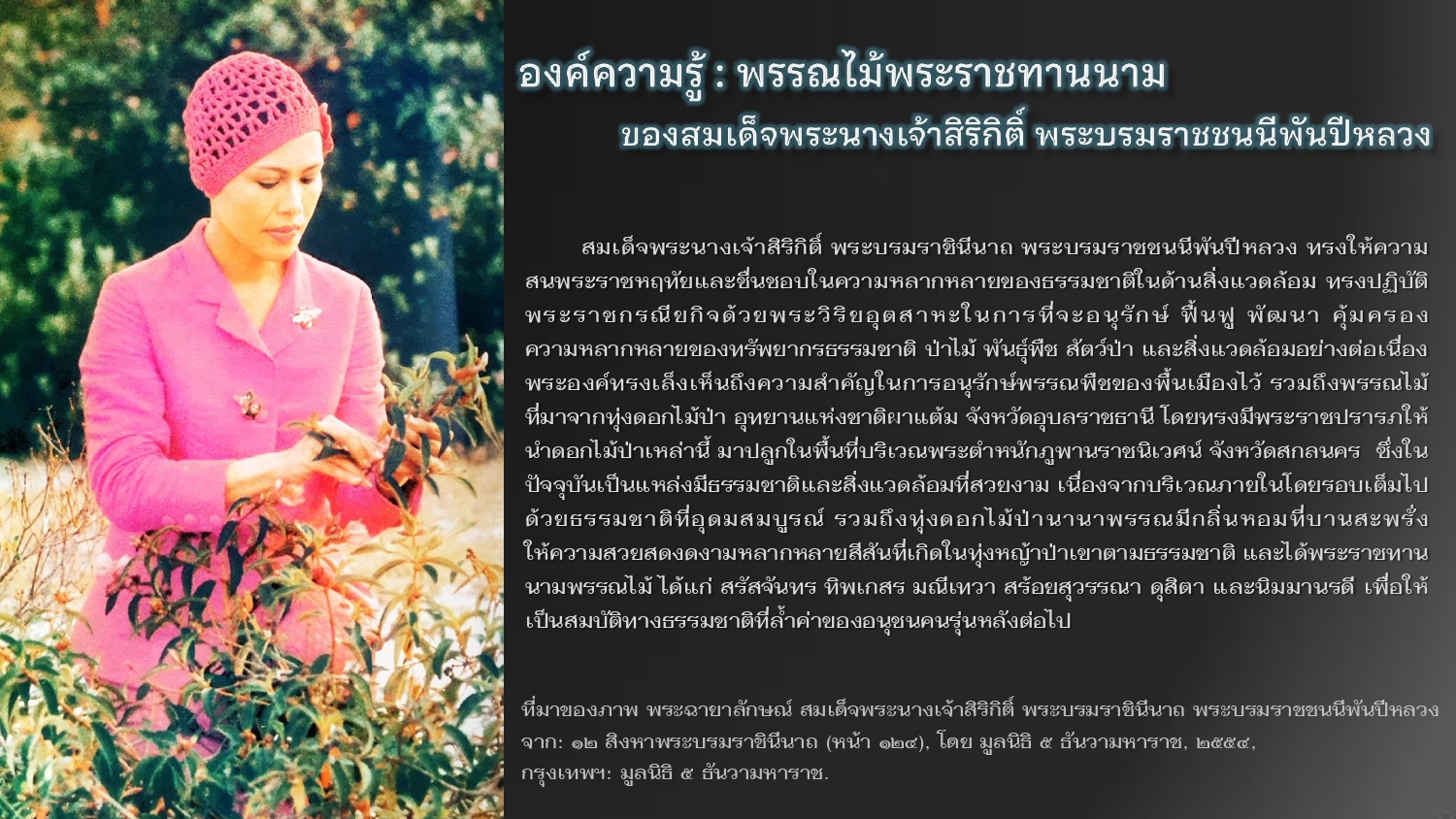 กระทรวงทรัพยากรธรรมชาติและสิ่งแวดล้อม. ๙๐ พรรษา บรมราชินีนาถ พระมารดาแห่งการคุ้มครองความหลากหลายทางชีวภาพ.