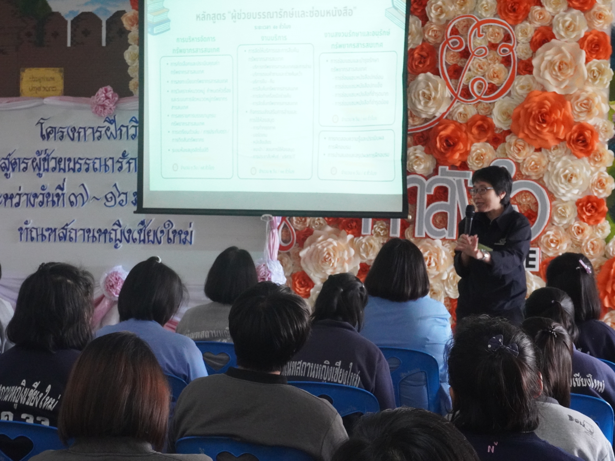 ผู้อำนวยการหอสมุดแห่งชาติรัชมังคลาภิเษก เชียงใหม่ พร้อมด้วยบรรณารักษ์ และเจ้าหน้าที่ เข้าร่วมเป็นวิทยากรในโครงการฝึกวิชาชีพหลักสูตรผู้ช่วยบรรณารักษ์และซ่อมหนังสือ ประจำปี ๒๕๖๙