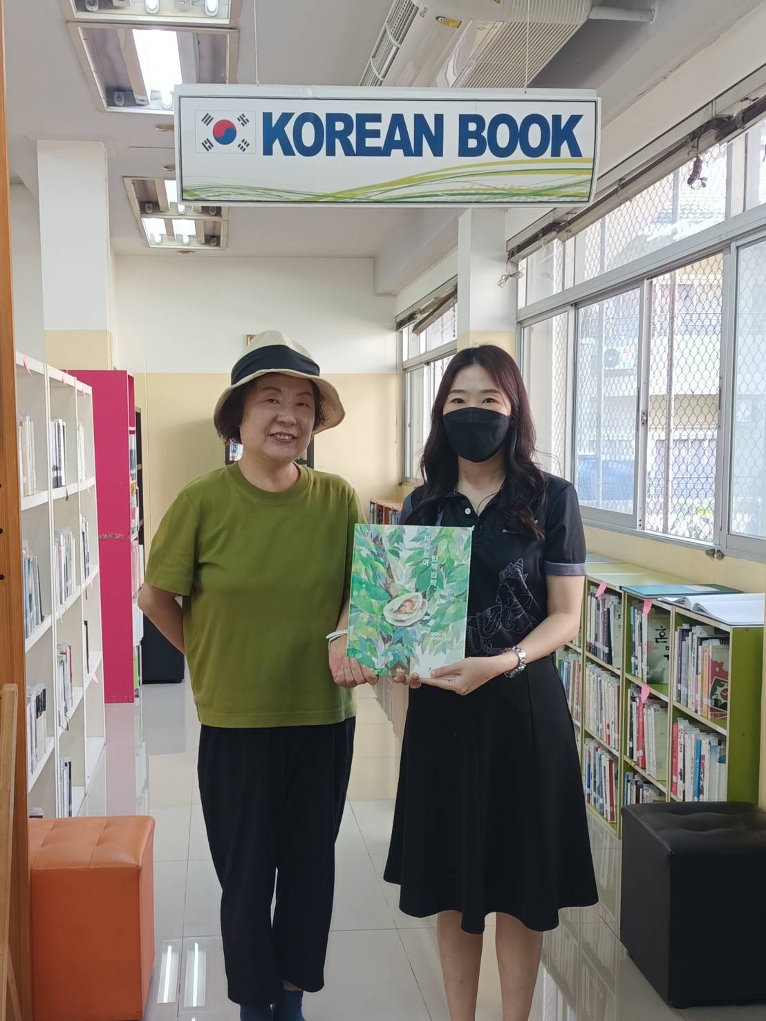 คุณ Kim SooHyun จากสำนักพิมพ์ FlyingStar Books มอบหนังสือภาพสำหรับเด็ก เพื่อให้บริการที่มุมหนังสือ Korean Book