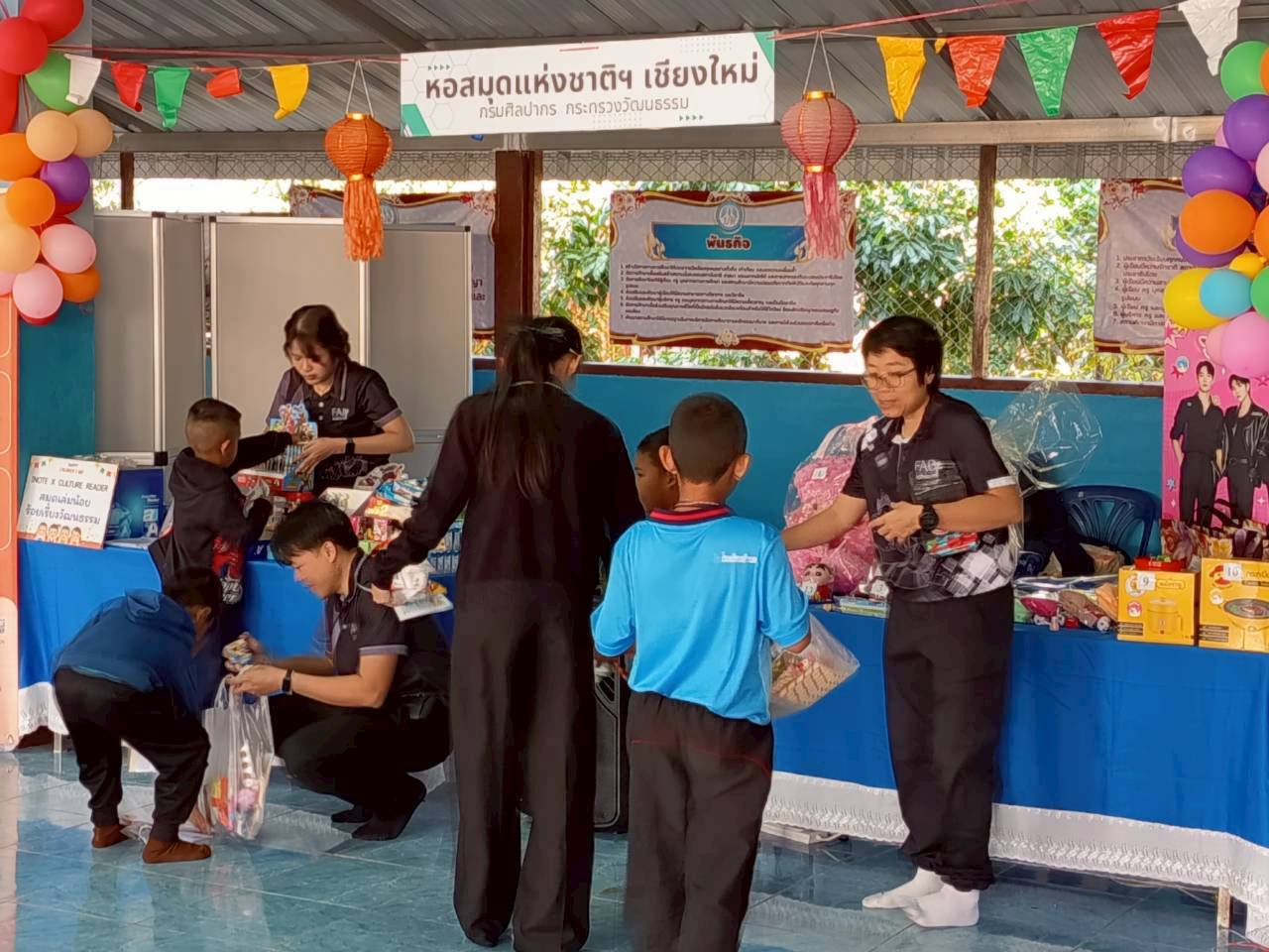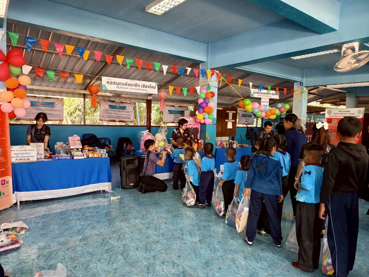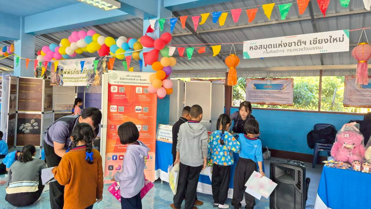 วันอังคารที่ ๒๐ มกราคม ๒๕๖๙ บรรณารักษ์และเจ้าหน้าที่ หอสมุดแห่งชาติรัชมังคลาภิเษก เชียงใหม่ ร่วมจัดกิจกรรม iNote x Culture Reader : สมุดเล่มน้อย ร้อยเรียงวัฒนธรรม ประดิษฐ์สมุดโน้ตจิ๋ว ปกหนังสือหายาก มัทนะพาธา พร้อมทั้งกิจกรรมแจกของรางวัล ในโครงการการจัดกิจกรรมเสริมสร้างการเป็นแหล่งเรียนรู้ตามอัธยาศัยแก่เด็กและเยาวชน โดยสำนักศิลปากรที่ ๗ เชียงใหม่ จัด ณ โรงเรียนบ้านดง ตำบลทุ่งหัวช้าง อำเภอทุ่งหัวช้าง จังหวัดลำพูน