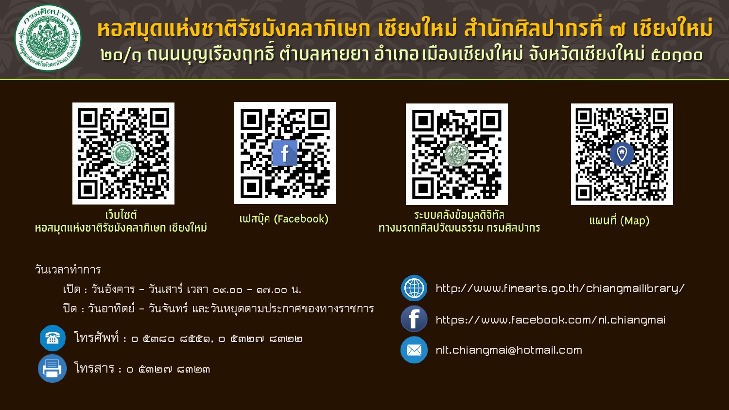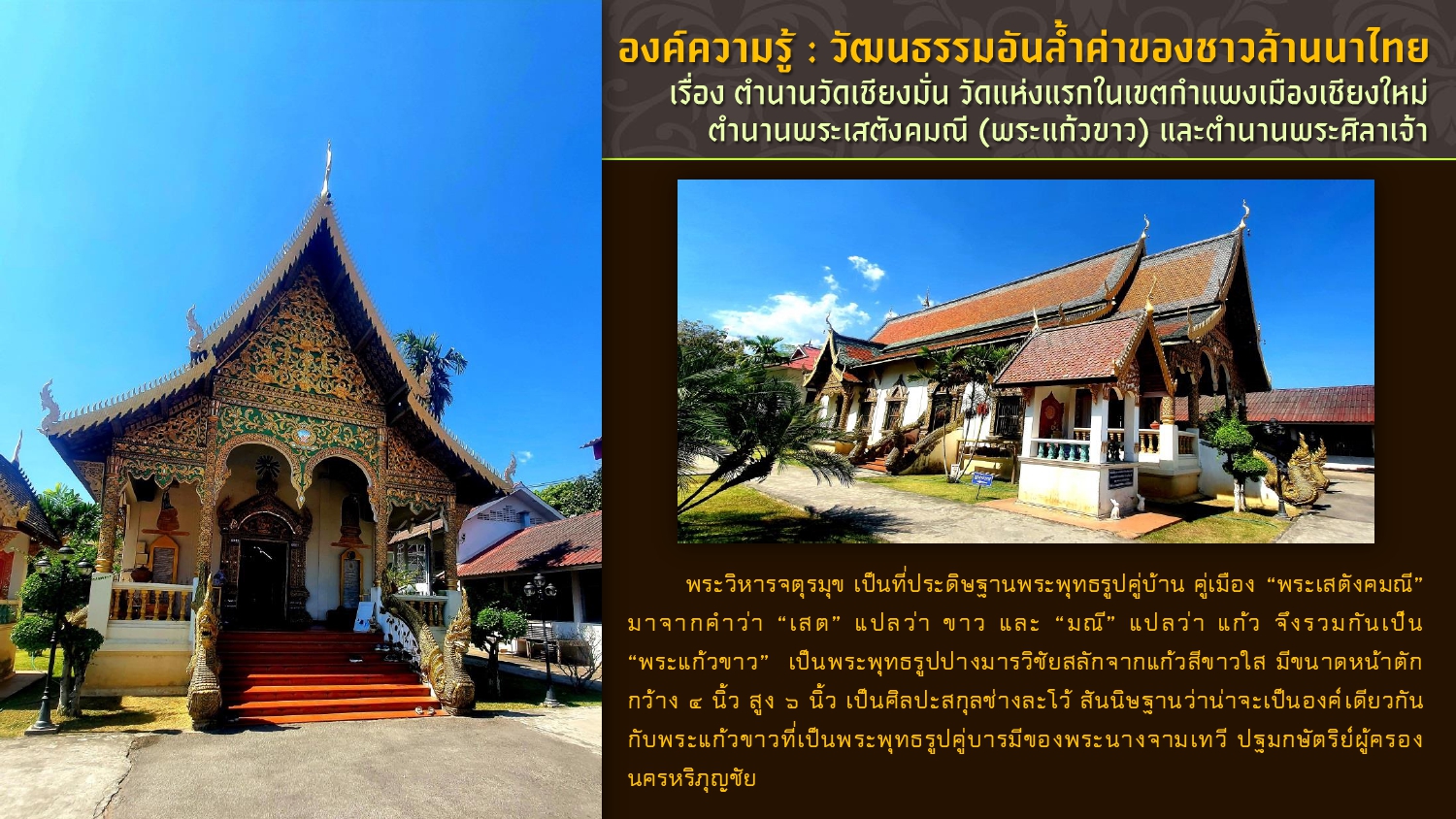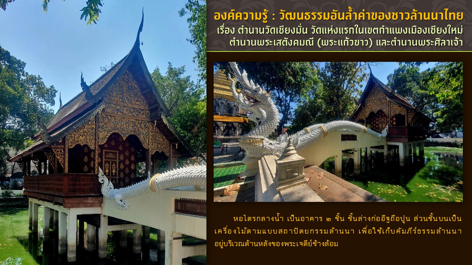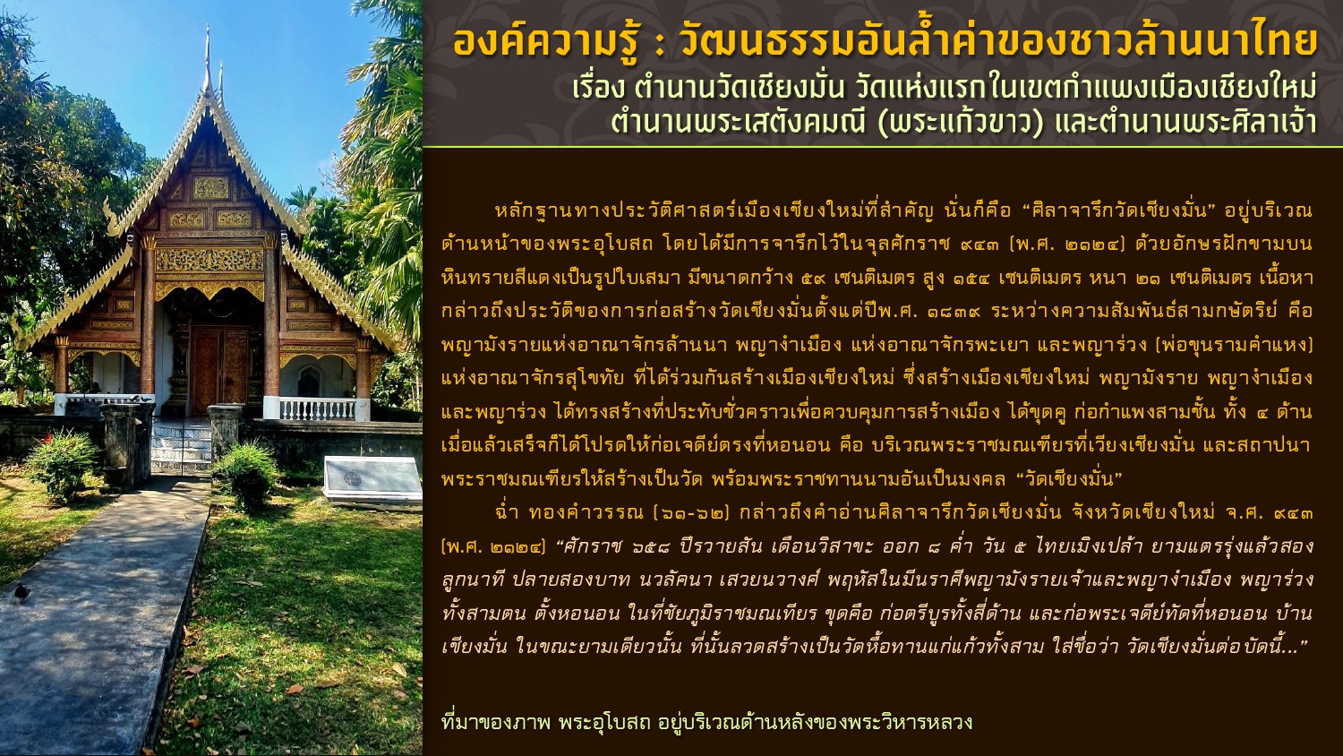 เรียบเรียงโดย : นายธีรบูลย์ มิตรมโนชัย นักวิชาการโสตทัศนศึกษาชำนาญการ หอสมุดแห่งชาติรัชมังคลาภิเษก เชียงใหม่ สำนักศิลปากรที่ ๗ เชียงใหม่ กรมศิลปากร กระทรวงวัฒนธรรม