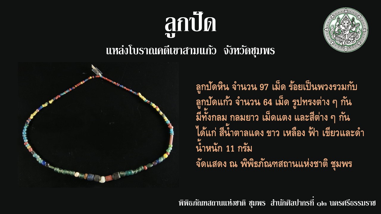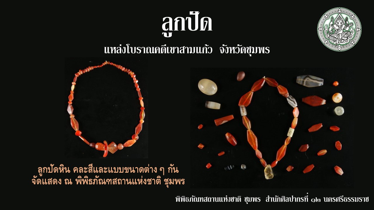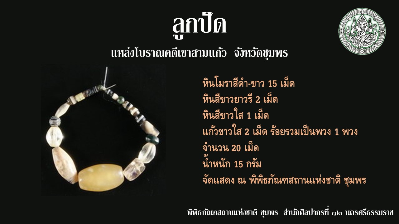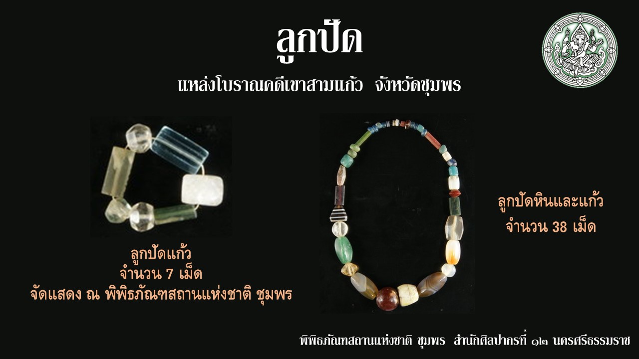 โบราณวัตถุ ลุกปัดแหล่งโบราณคดีเขาสามแก้ว จังหวัดชุมพร