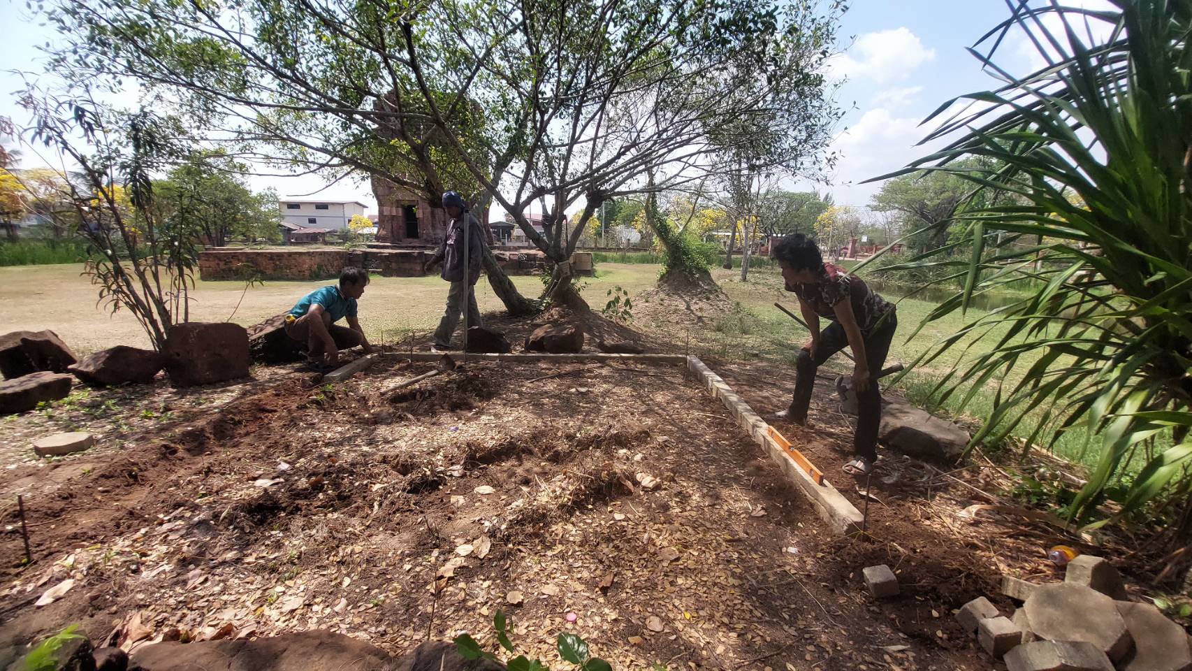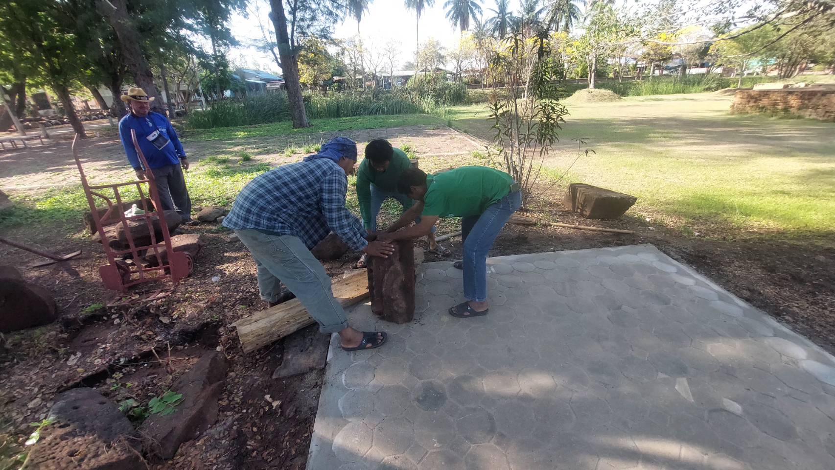 วันที่ 12-15 มีนาคม 2568 กลุ่มอนุรักษ์โบราณสถาน สำนักศิลปากรที่ 10 นครราชสีมา ลงพื้นที่เพื่อดำเนินการทดลองประกอบหินพร้อมทั้งปรับพื้นที่เพื่อทำลานจัดแสดง ปูอิฐตัวบล็อกหกเหลี่ยม และขนย้ายทดลองประกอบบัวยอด ณ โบราณสถานปรางค์บ้านปรางค์ อำเภอคง จังหวัดนครราชสีมา
