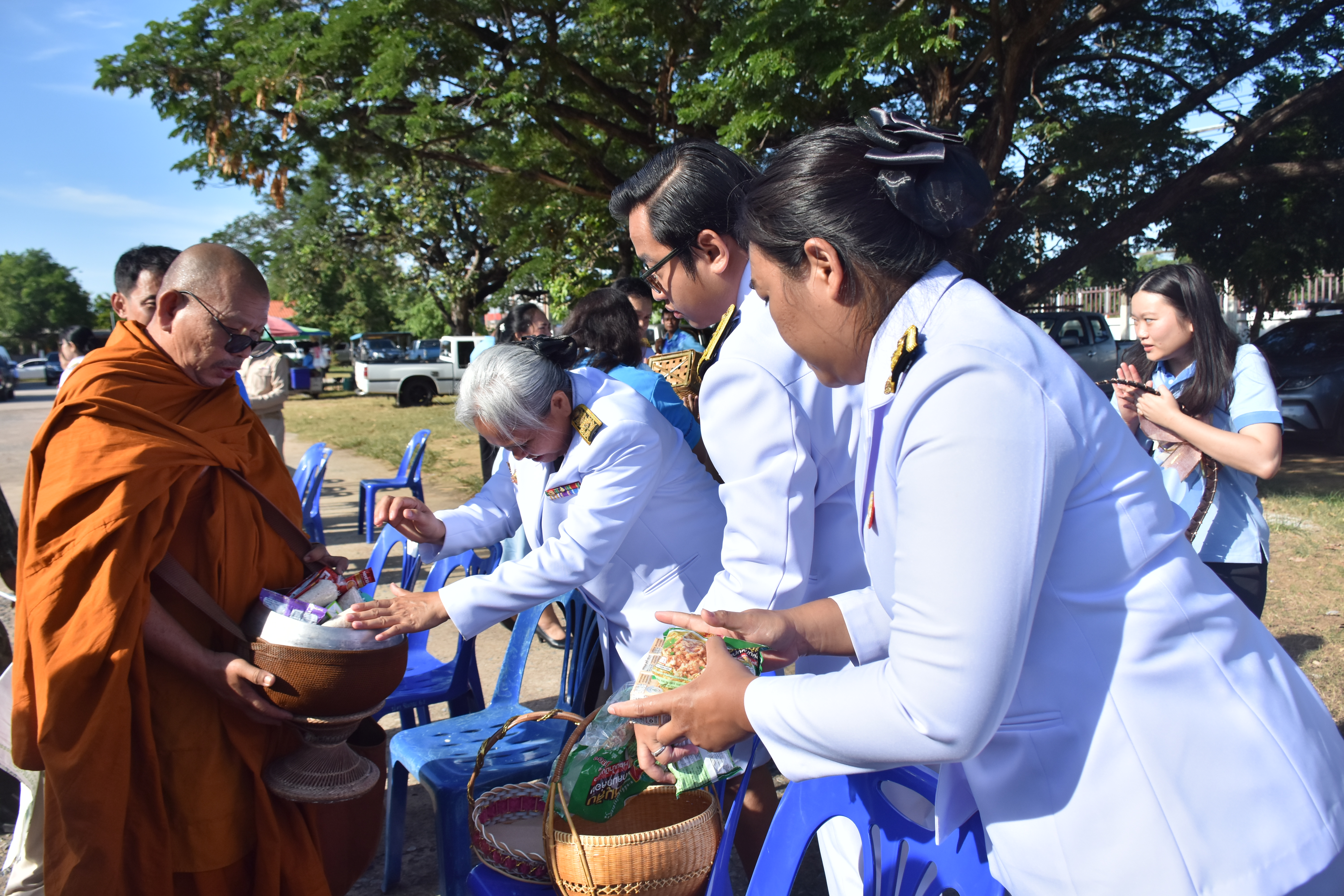 พิธีตักบาตรข้าวสารอาหารแห้ง เนื่องในโอกาสวันเฉลิมพระชนมพรรษา สมเด็จพระนางเจ้าสิริกิติ์ พระบรมราชินีนาถ พระบรมราชชนนีพันปีหลวง ๑๒ สิงหาคม ๒๕๖๘ ณ ที่ว่าการอำเภอพิมาย จังหวัดนครราชสีมา