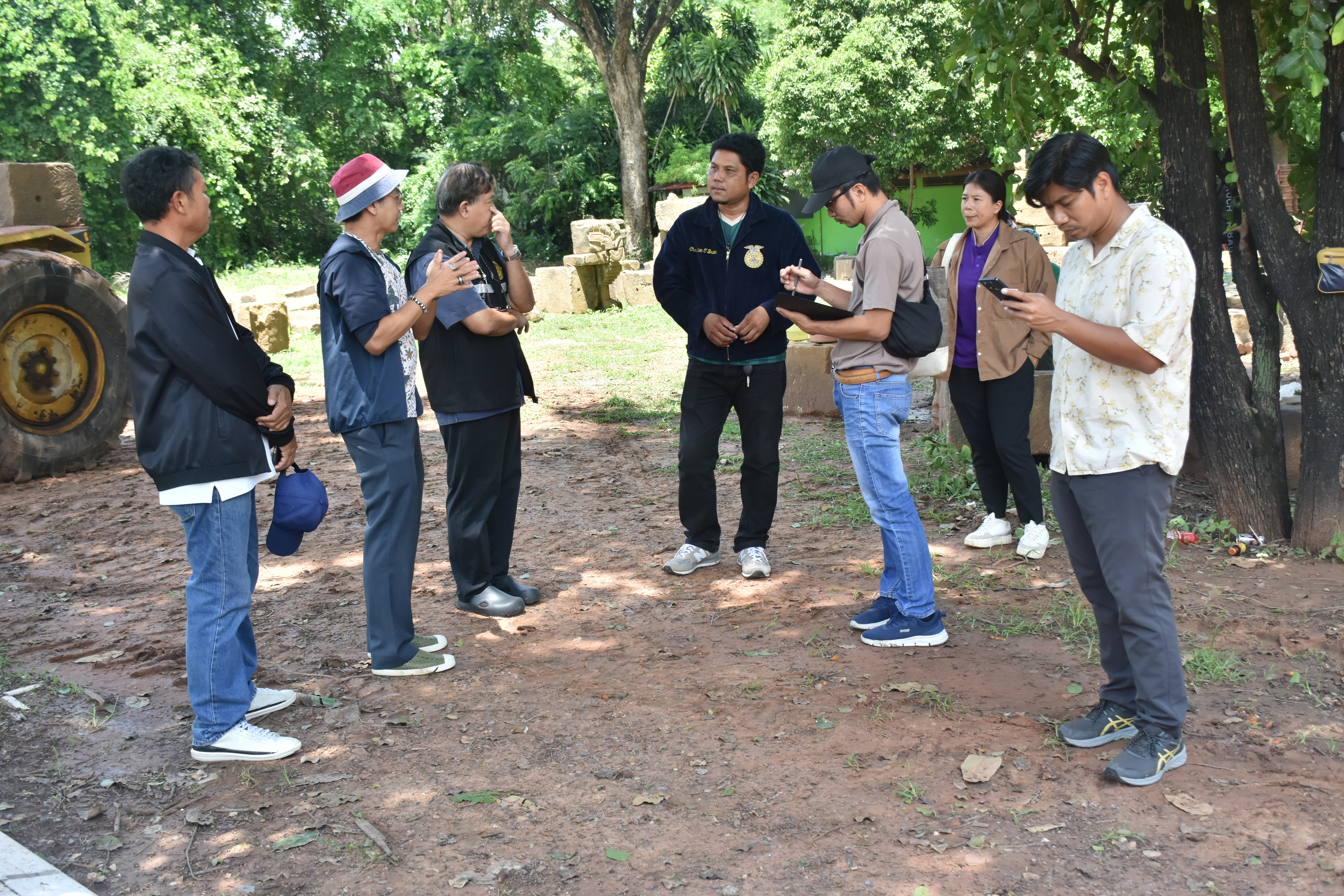 วันอังคารที่ 9 กันยายน 2568 นายวสุ โปษยะนันทน์ สถาปนิกเชี่ยวชาญ ผู้เชี่ยวชาญเฉพาะด้านสถาปัตยกรรม (บูรณปฏิสังขรณ์หรือสถาปัตยกรรมไทย) กรมศิลปากร พร้อมด้วยนายทศพร ศรีสมาน ผู้อำนวยการสำนักศิลปากรที่ 10 นครราชสีมา และผู้ที่เกี่ยวข้อง ลงพื้นที่เพื่อติดตามความคืบหน้าและให้คำแนะนำแนวทาง ขั้นตอนการดำเนินงาน วิเคราะห์ศึกษาโครงสร้างและองค์ประกอบโบราณสถานประเภทหิน ณ โบราณปราสาทบ้านบุใหญ่ อำเภอสูงเนิน จังหวัดนครราชสีมา ซึ่งขณะนี้อยู่ในระหว่างการดำเนินงานทดลองประกอบหิน