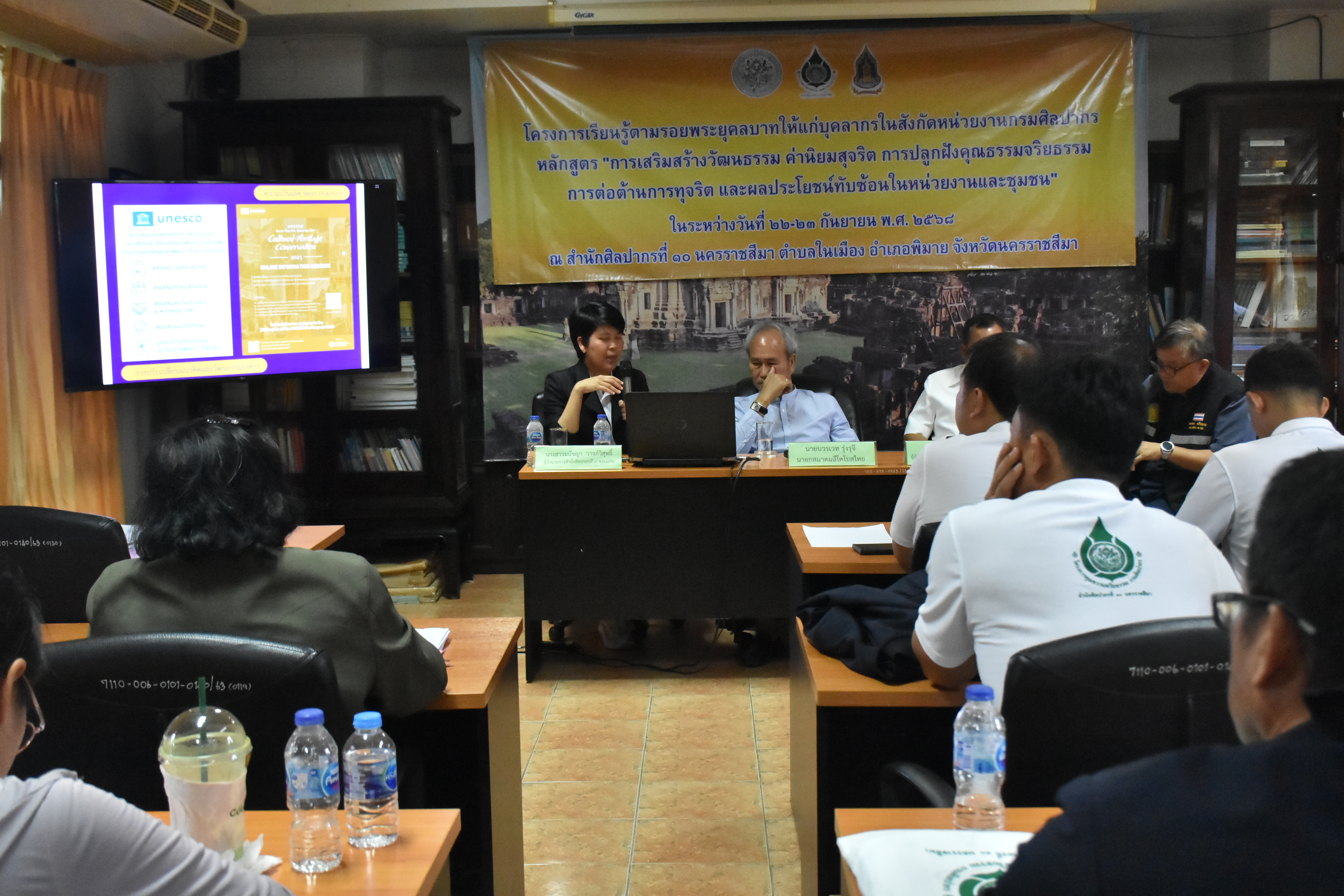 โครงการเรียนรู้ตามรอยพระยุคลบาทให้แก่บุคลากรในสังกัดหน่วยงานกรมศิลปากร หลักสูตร “การเสริมสร้างวัฒนธรรม ค่านิยมสุจริต การปลูกฝังคุณธรรมจริยธรรม การต่อต้านการทุจริต และผลประโยชน์ทับซ้อนในหน่วยงานและชุมชน” วันที่ ๒๓ กันยายน ๒๕๖๘