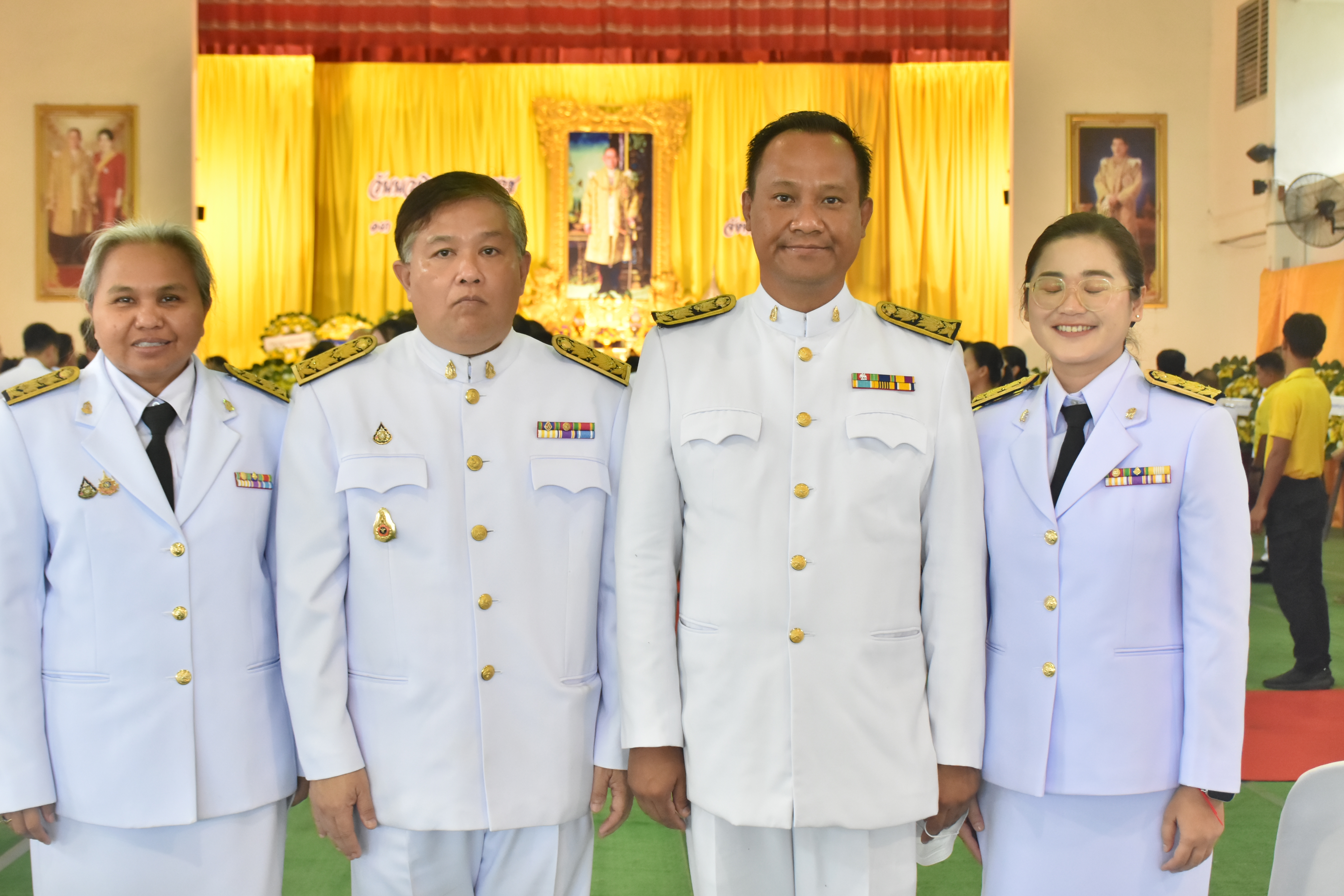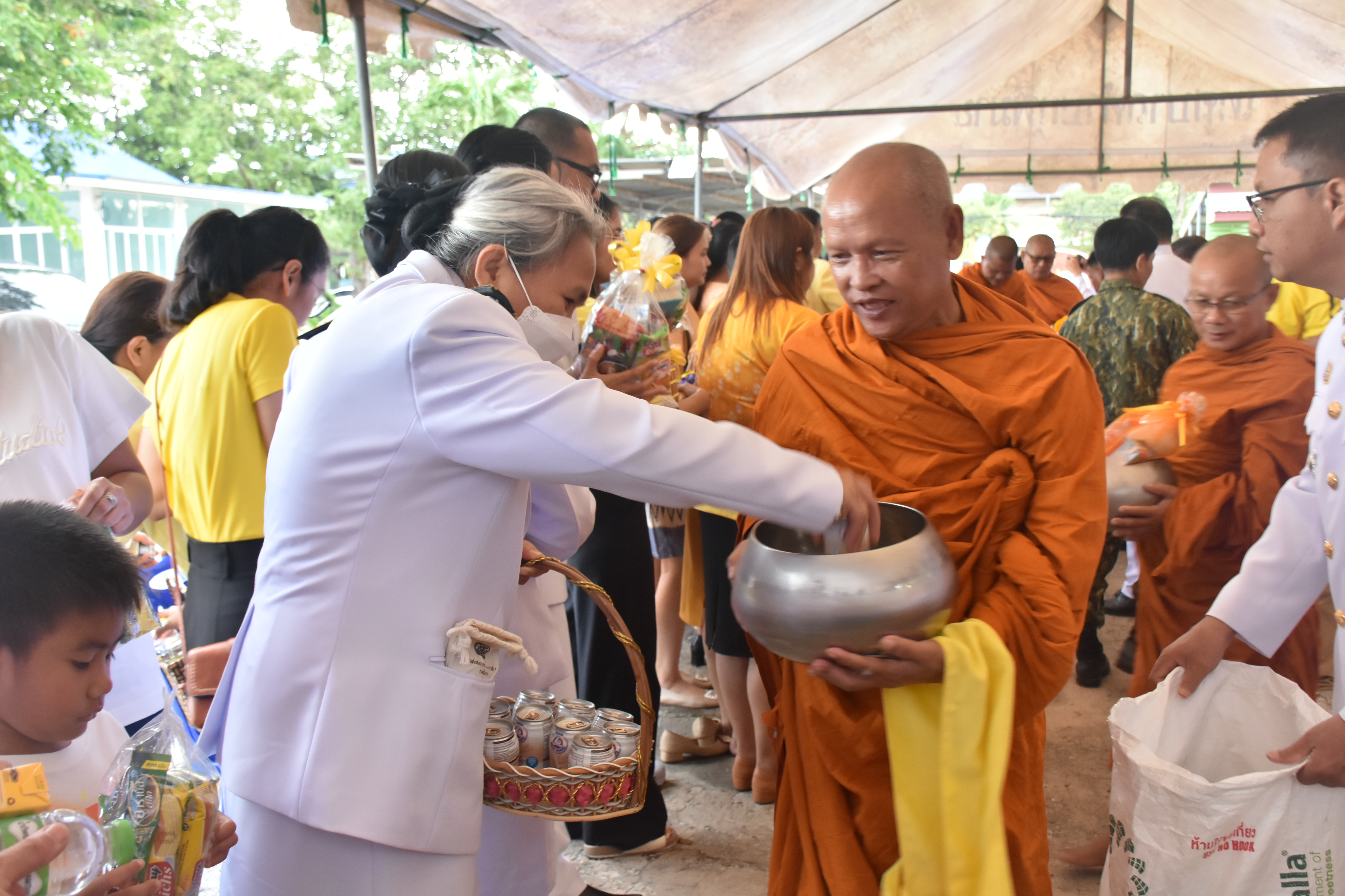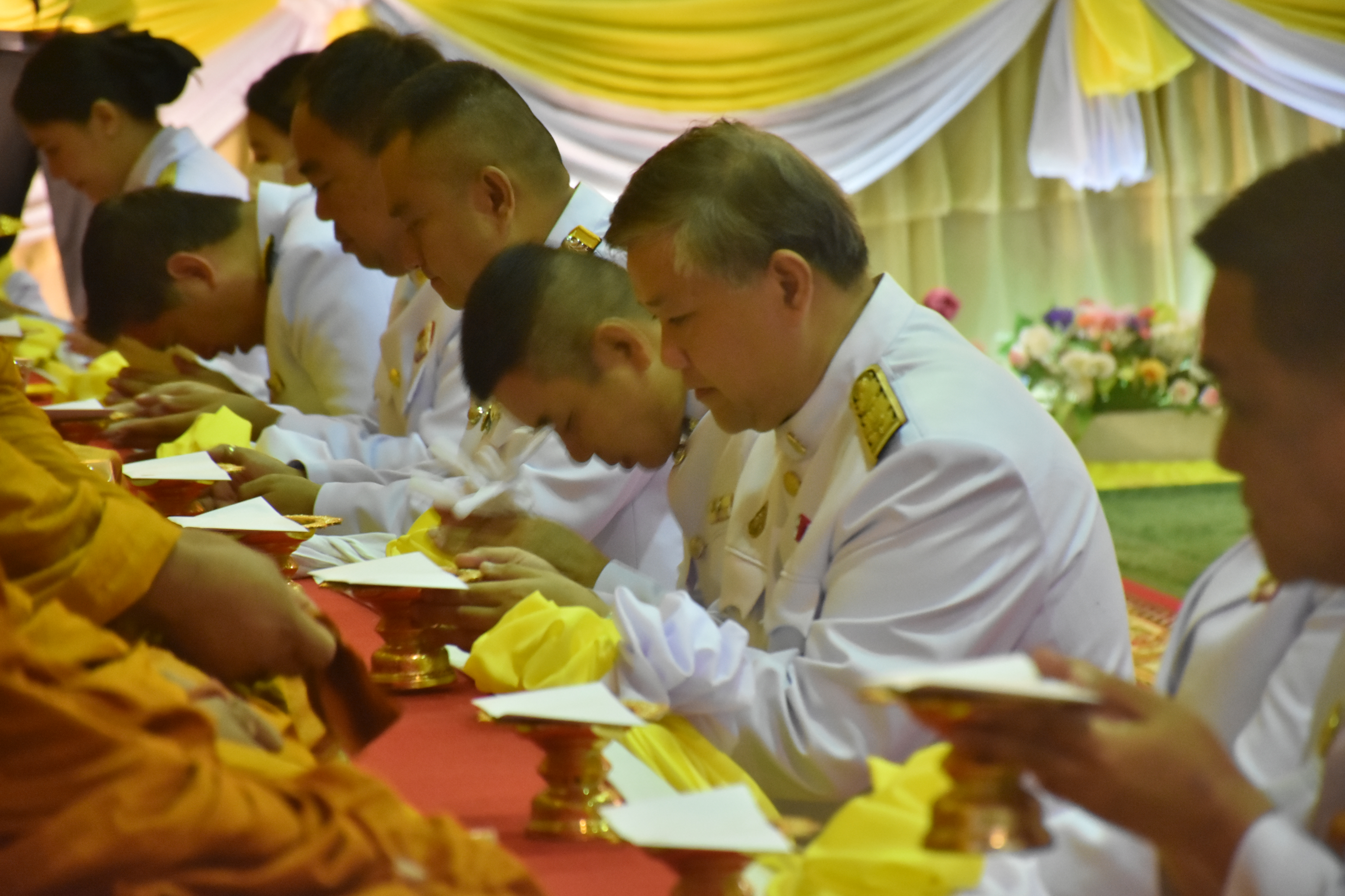 พิธีตักบาตรข้าวสารอาหารแห้ง และพิธีวางพวงมาลาเนื่องในวันนวมินทรมหาราช ณ หอประชุมที่ว่าการอำเภอพิมาย จังหวัดนครราชสีมา