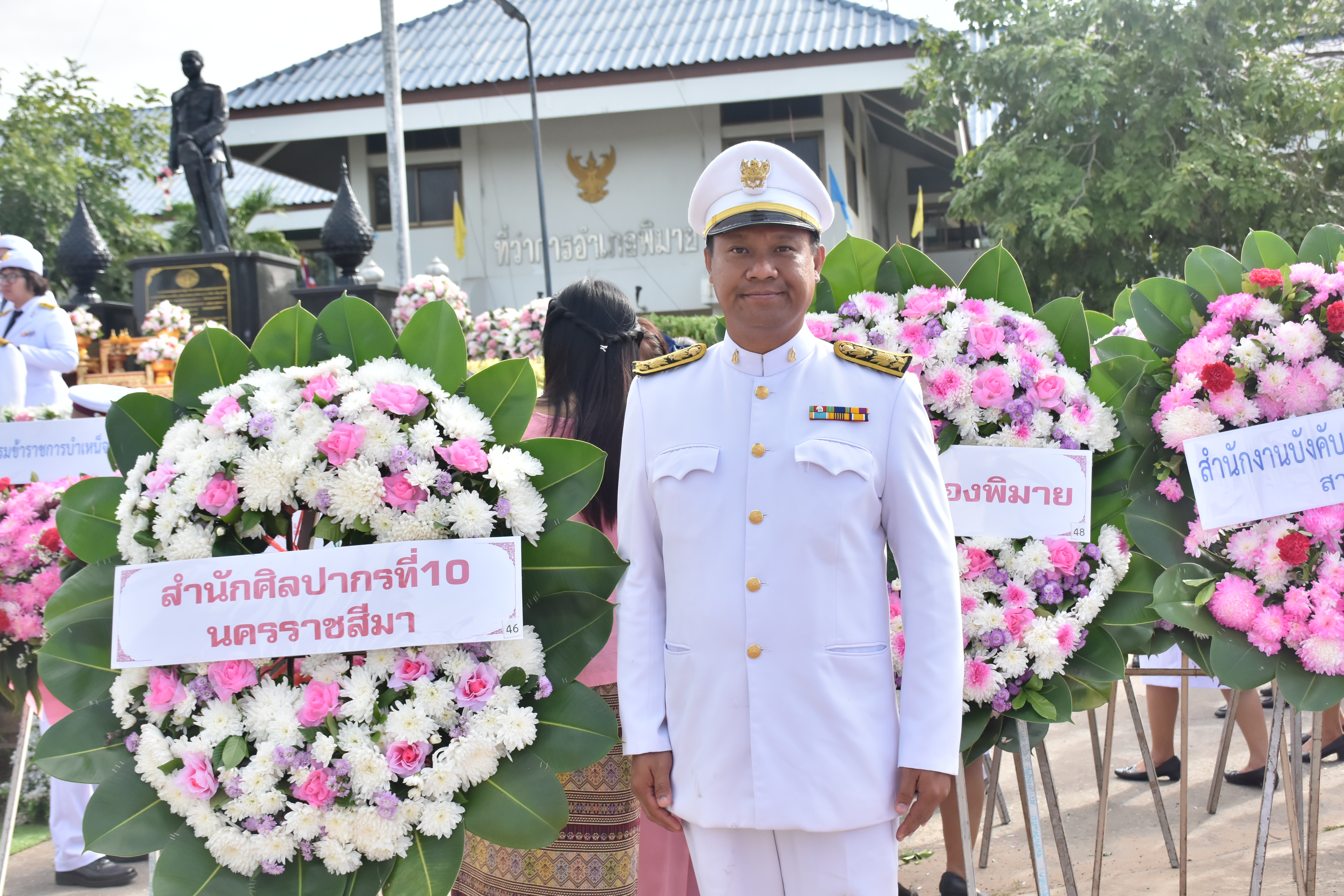 นายทศพร ศรีสมาน ผู้อำนวยการสำนักศิลปากรที่ ๑๐ นครราชสีมา พร้อมด้วยผู้อำนวยการพิพิธภัณฑสถานแห่งชาติพิมาย ผู้อำนวยการกลุ่มโบราณคดี หัวหน้าอุทยานประวัติศาสตร์พิมาย และหัวหน้าฝ่ายบริหารงานทั่วไป เข้าร่วมพิธีวางพวงมาลาถวายสักการะ เนื่องในวันคล้ายวันสวรรคตพระบาทสมเด็จพระปรมินทร มหาจุฬาลงกรณ์พระจุลจอมเกล้าเจ้าอยู่หัว ในวันพฤหัสบดีที่ ๒๓ ตุลาคม ๒๕๖๘ ณ บริเวณหน้าที่ว่าการอำเภอพิมาย อำเภอพิมาย จังหวัดนครราชสีมา