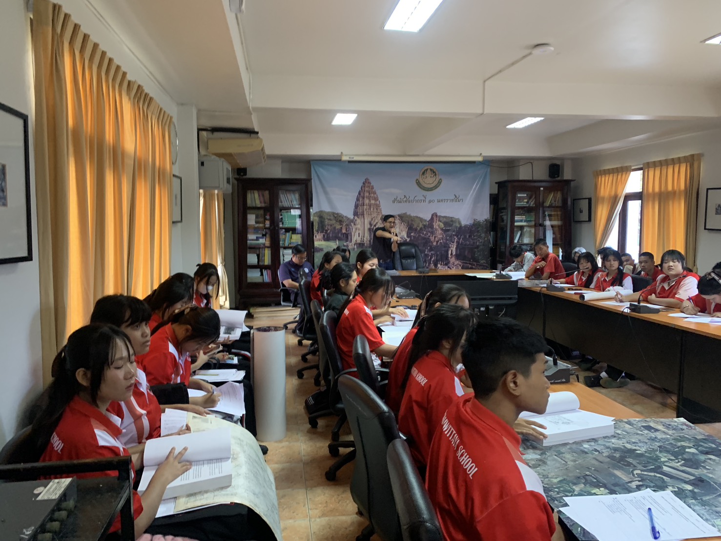 เมื่อวันที่ 20 พฤศจิกายน 2568 สำนักศิลปากรที่ 10 นครราชสีมา โดยกลุ่มโบราณคดีได้มอบหมายให้นายวีระชาติ พงค์ชนะ นักโบราณคดีชำนาญการและนายวรรณพงษ์ ปาละกะวงษ์ ณ อยุธยา นักโบราณคดีชำนาญการ เป็นวิทยากรบรรยายเรื่องความสำคัญ วิธีวิทยาและกระบวนการทำงานทางโบราณคดี ตลอดจนการจัดการหลักฐานทางโบราณคดีให้กับนักเรียนระดับชั้นมัธยมศึกษาปีที่ 4 (แผนการเรียนนิติรัฐ) จากโรงเรียนพิมายวิทยา พร้อมคณะครู จำนวน 40 คน