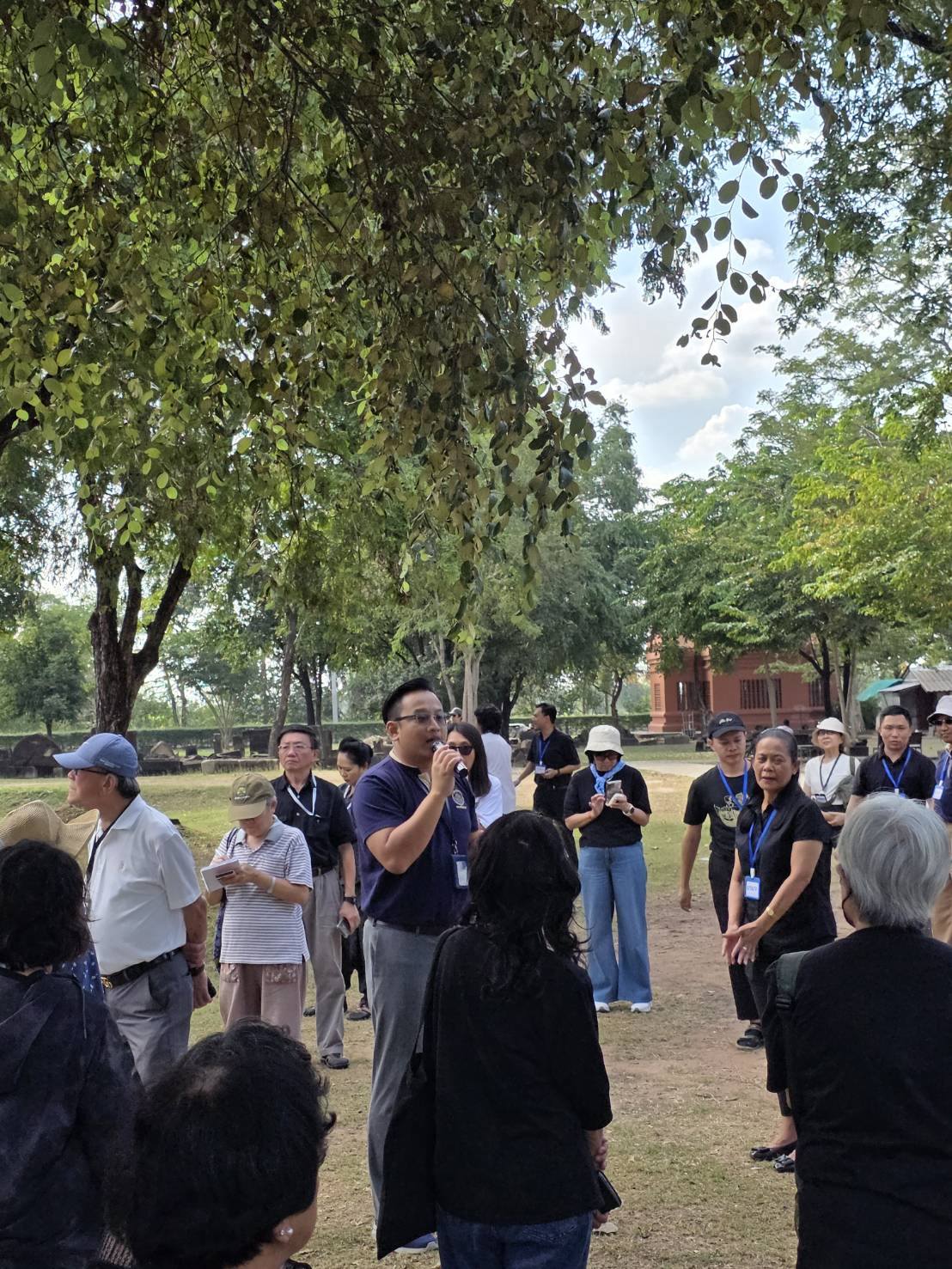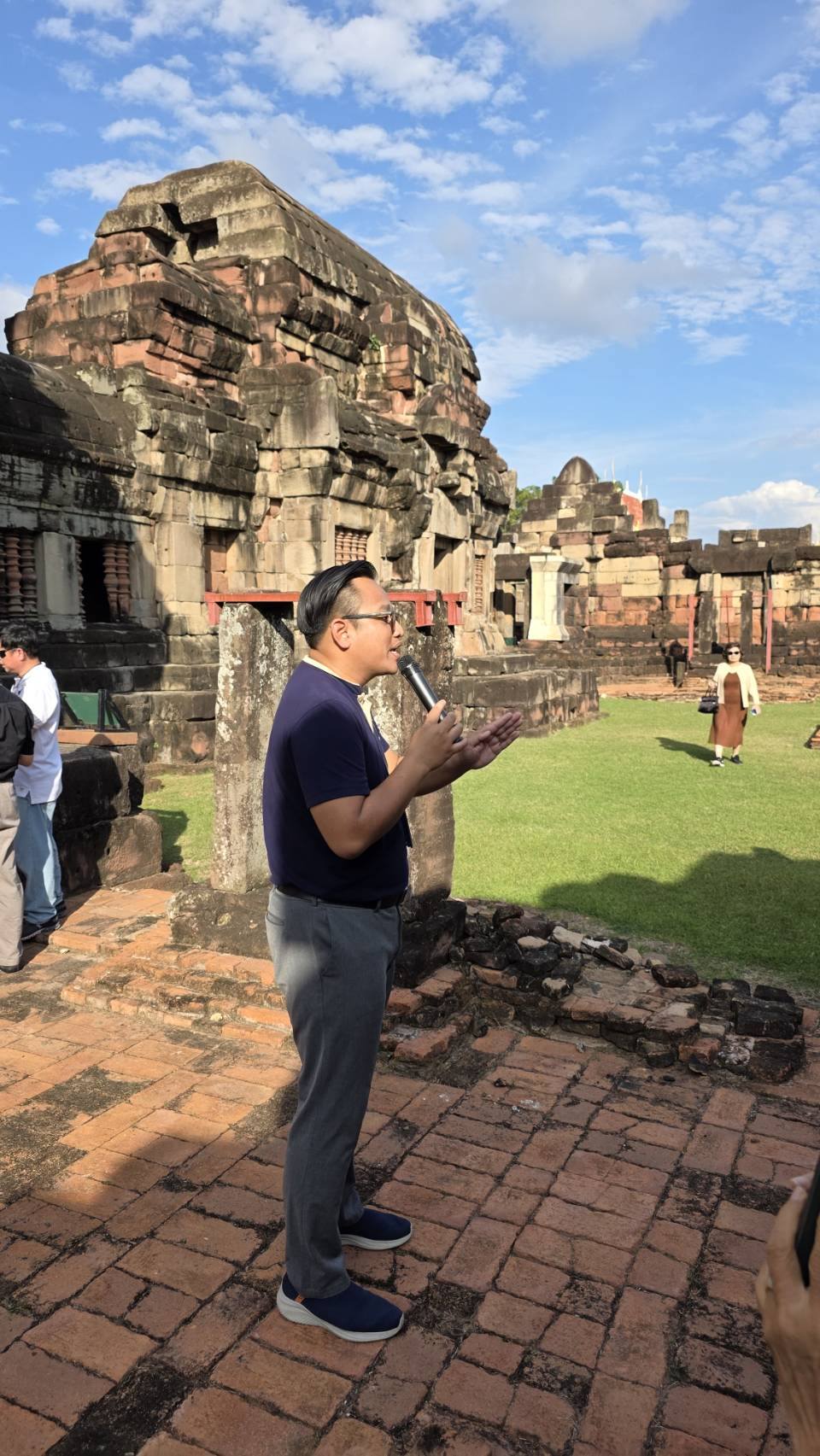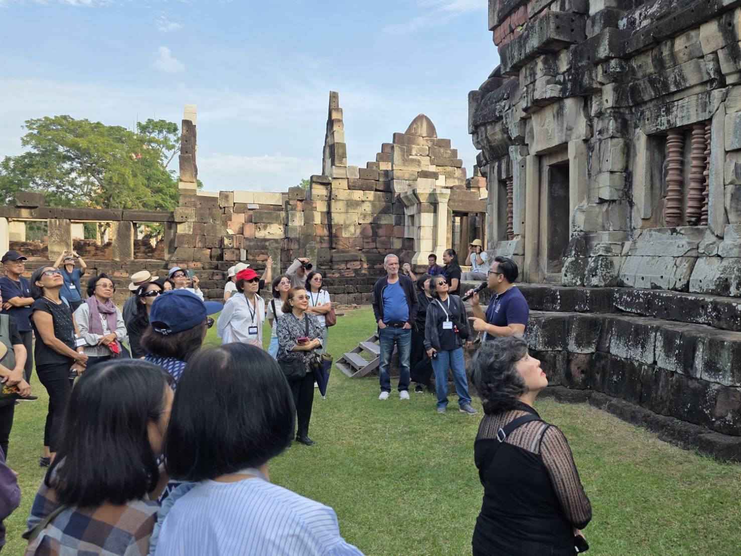 นายวรรณพงษ์ ปาละกะวงษ์ ณ อยุธยา นักโบราณคดีชำนาญการ ร่วมต้อนรับพร้อมทั้งบรรยายนำชมโบราณสถานปราสาทพนมวัน ตำบลบ้านโพธิ์ อำเภอเมือง จังหวัดนครราชสีมา ให้กับคณะเดินทางในโครงการศิลปากรสัญจร