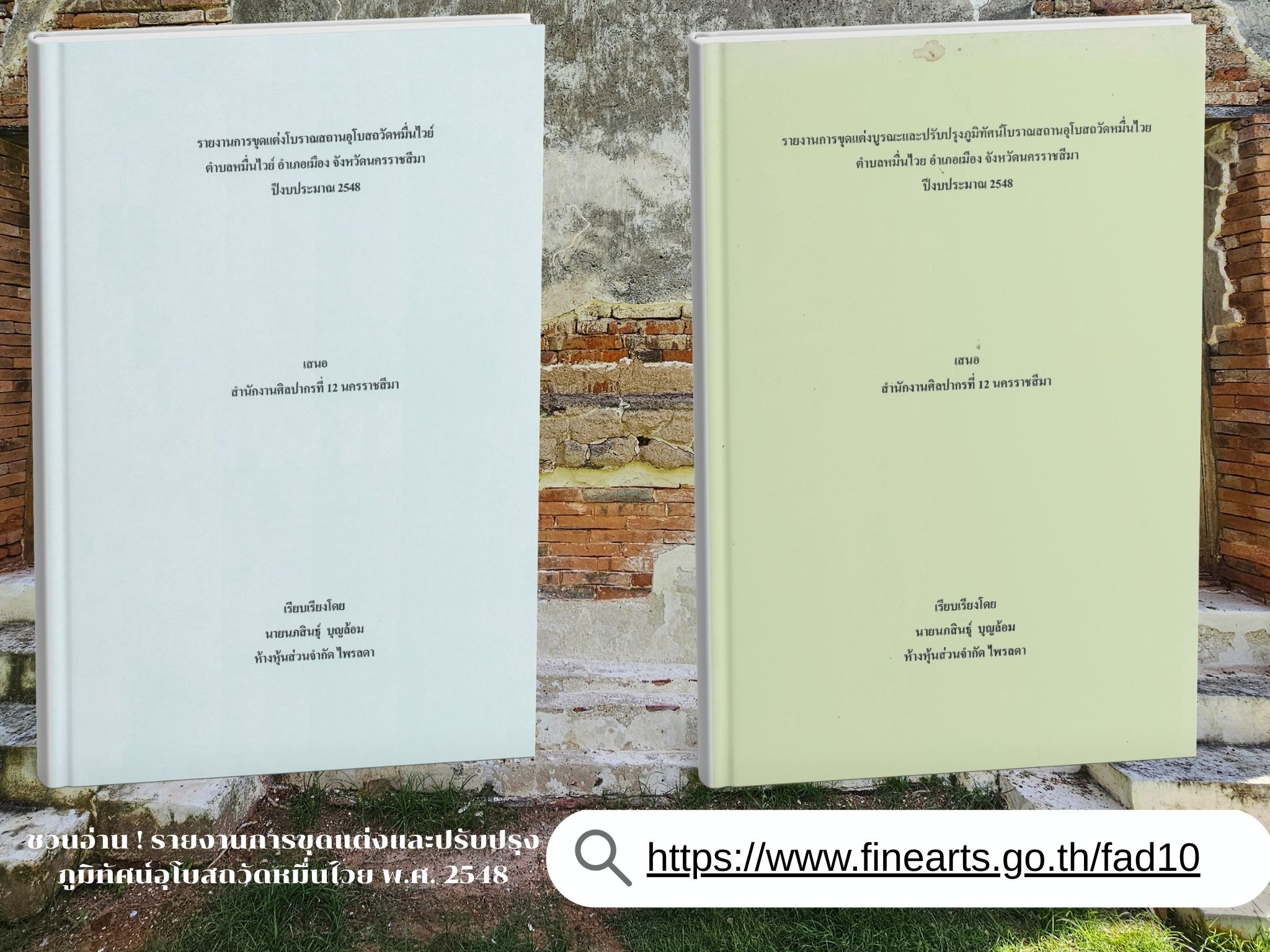 นภสินธุ์ บุญล้อม. รายงานการขุดแต่งโบราณสถานอุโบสถวัดหมื่นไวย ตำบลหมื่นไหว อำเภอเมืองนครราชสีมา จังหวัดนครราชสีมา. นครราชสีมา: ไพรลดา, 2548.