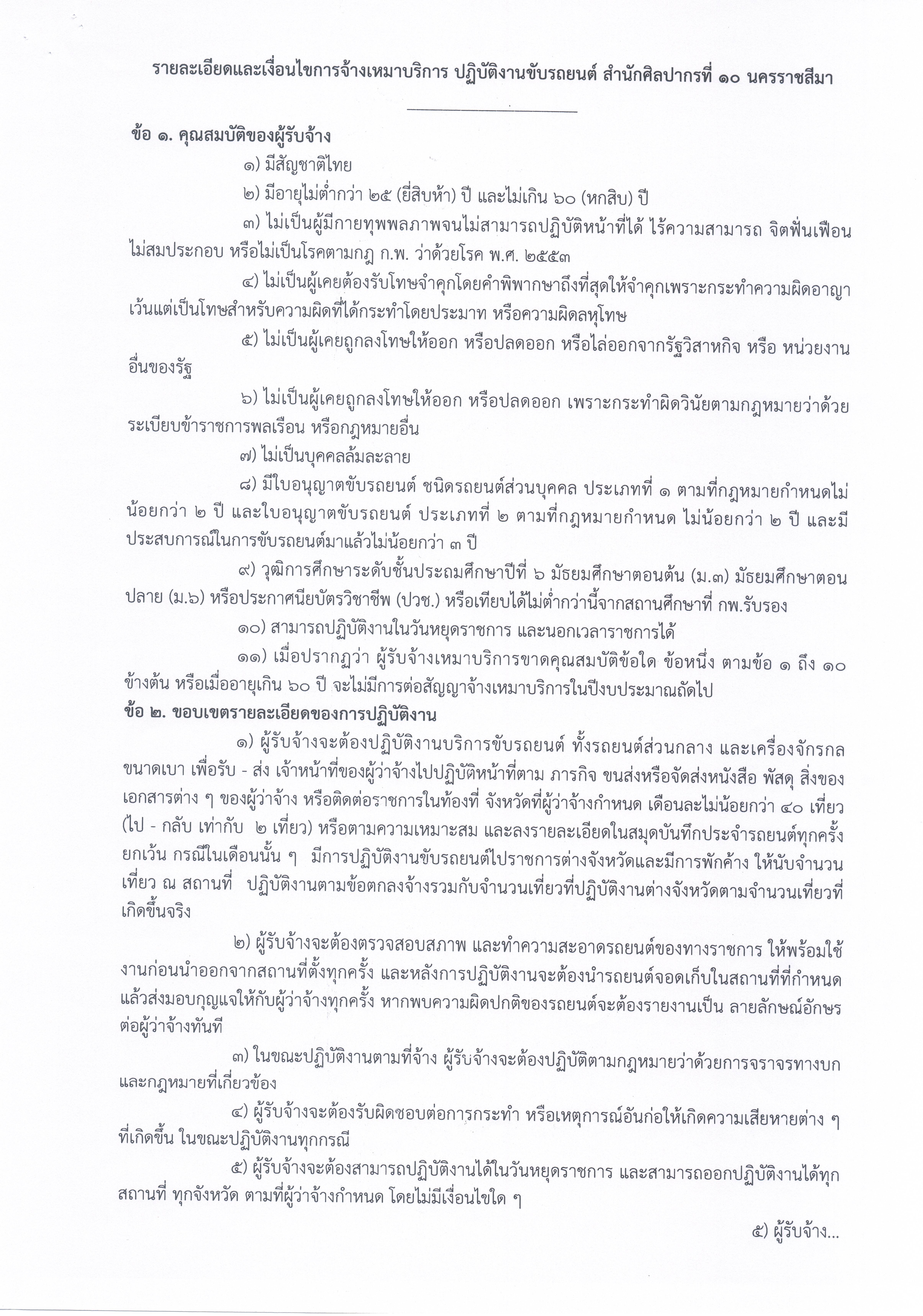 ประกาศสำนักศิลปากรที่ ๑๐ นครราชสีมา เรื่อง รับสมัครคัดเลือกบุคคลเพื่อจัดจ้างเป็นจ้างเหมาบริการปฏิบัติงานขับรถยนต์ ประจำสำนักศิลปากรที่ ๑๐ นครราชสีมา (จำนวน ๑ อัตรา)