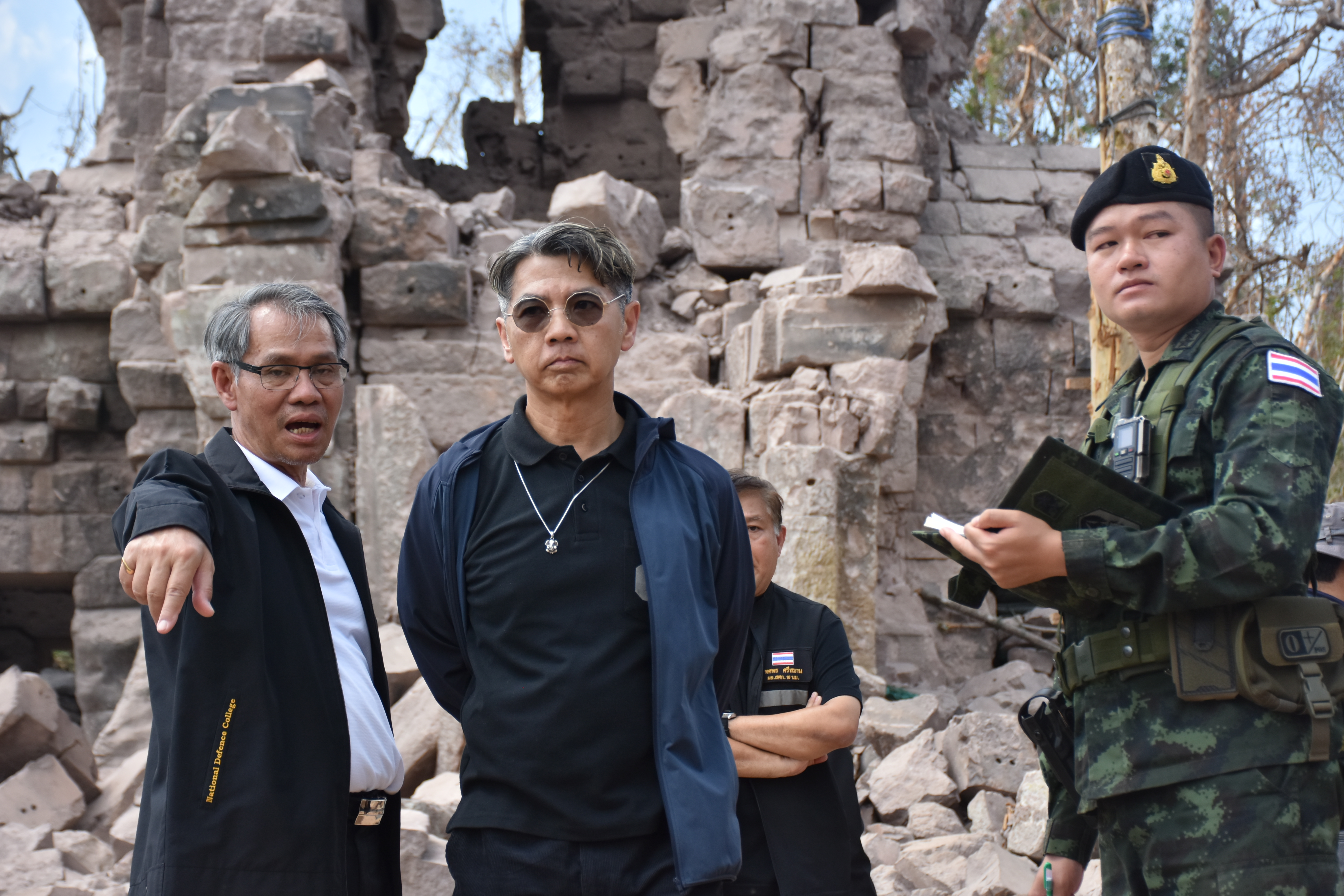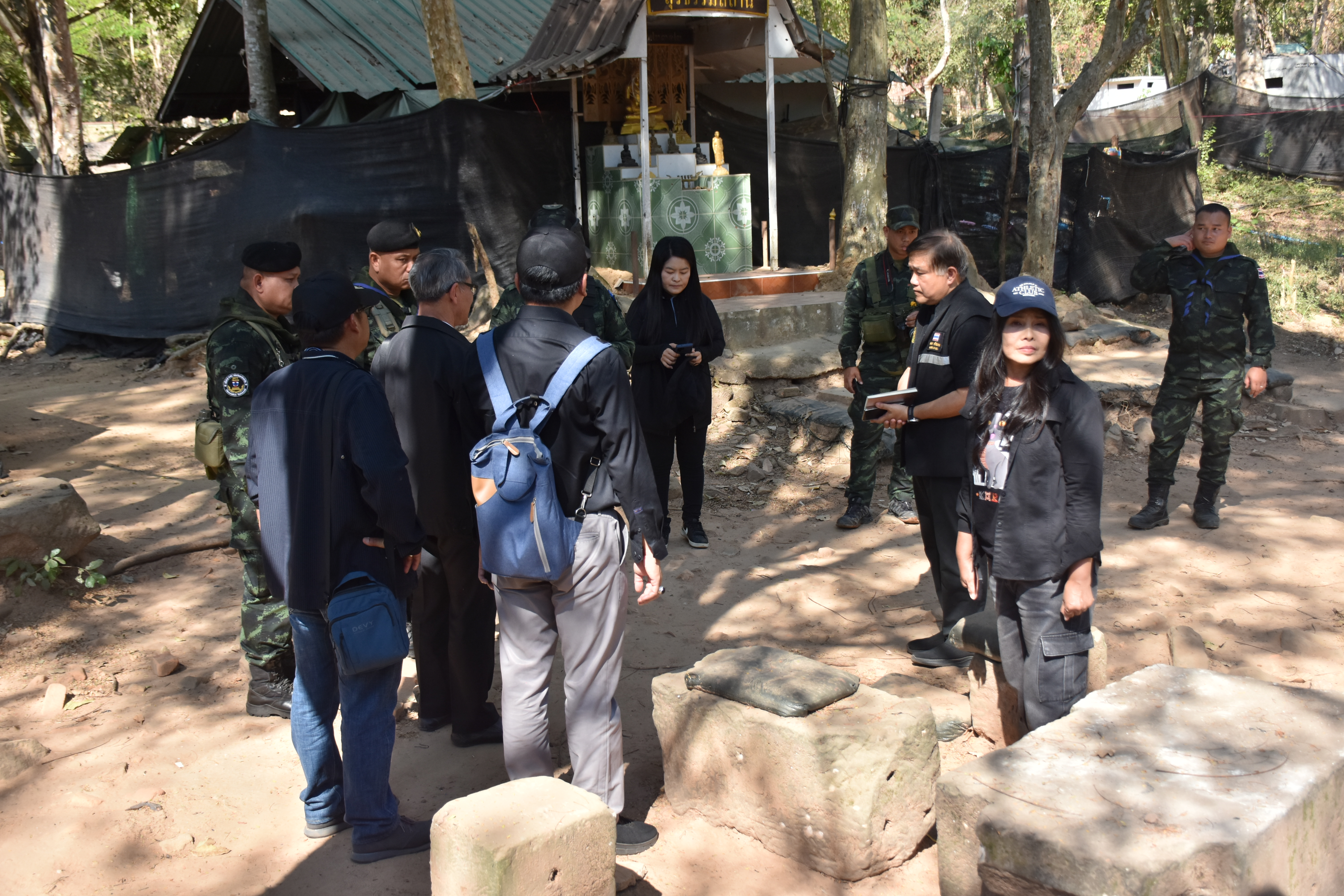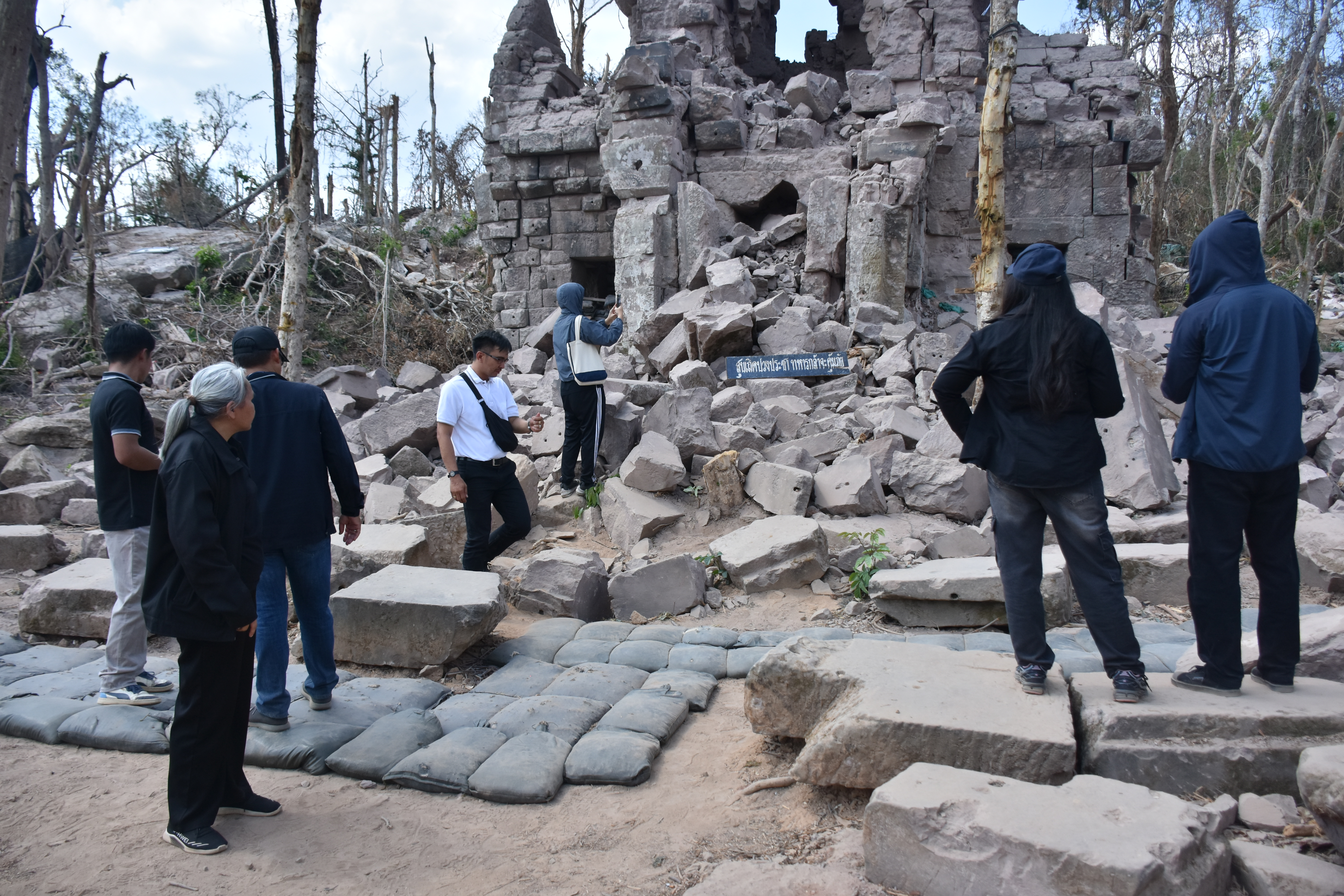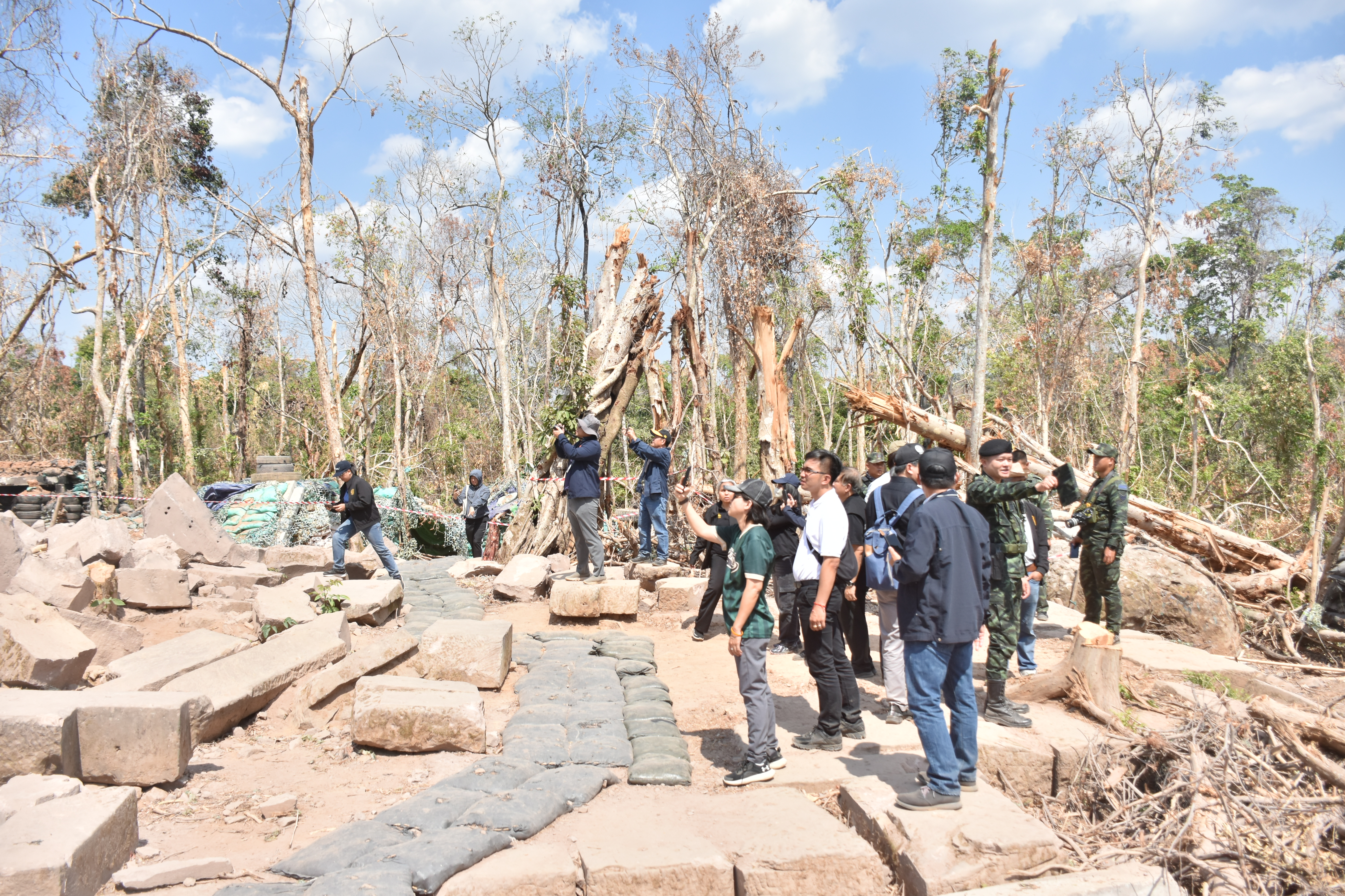 นายกิตติพันธ์ พานสุวรรณ ที่ปรึกษาอธิบดีกรมศิลปากร (อดีตอธิบดีกรมศิลปากร) นายวสุ โปษยะนันทน์ สถาปนิกเชี่ยวชาญ นายทศพร ศรีสมาน ผู้อำนวยการสำนักศิลปากรที่ 10 นครราชสีมา พร้อมด้วย #ทีมช่าง จาก #สำนักสถาปัตยกรรมกรมศิลปากร #กลุ่มอนุรักษ์โบราณสถานสำนักศิลปากรที่10นครราชสีมา และเจ้าหน้าที่ที่เกี่ยวข้อง เพื่อสำรวจเก็บข้อมูลสภาพความเสียหายของโบราณสถานปราสาทตาควาย และปราสาทตาเมือนธม จังหวัดสุรินทร์