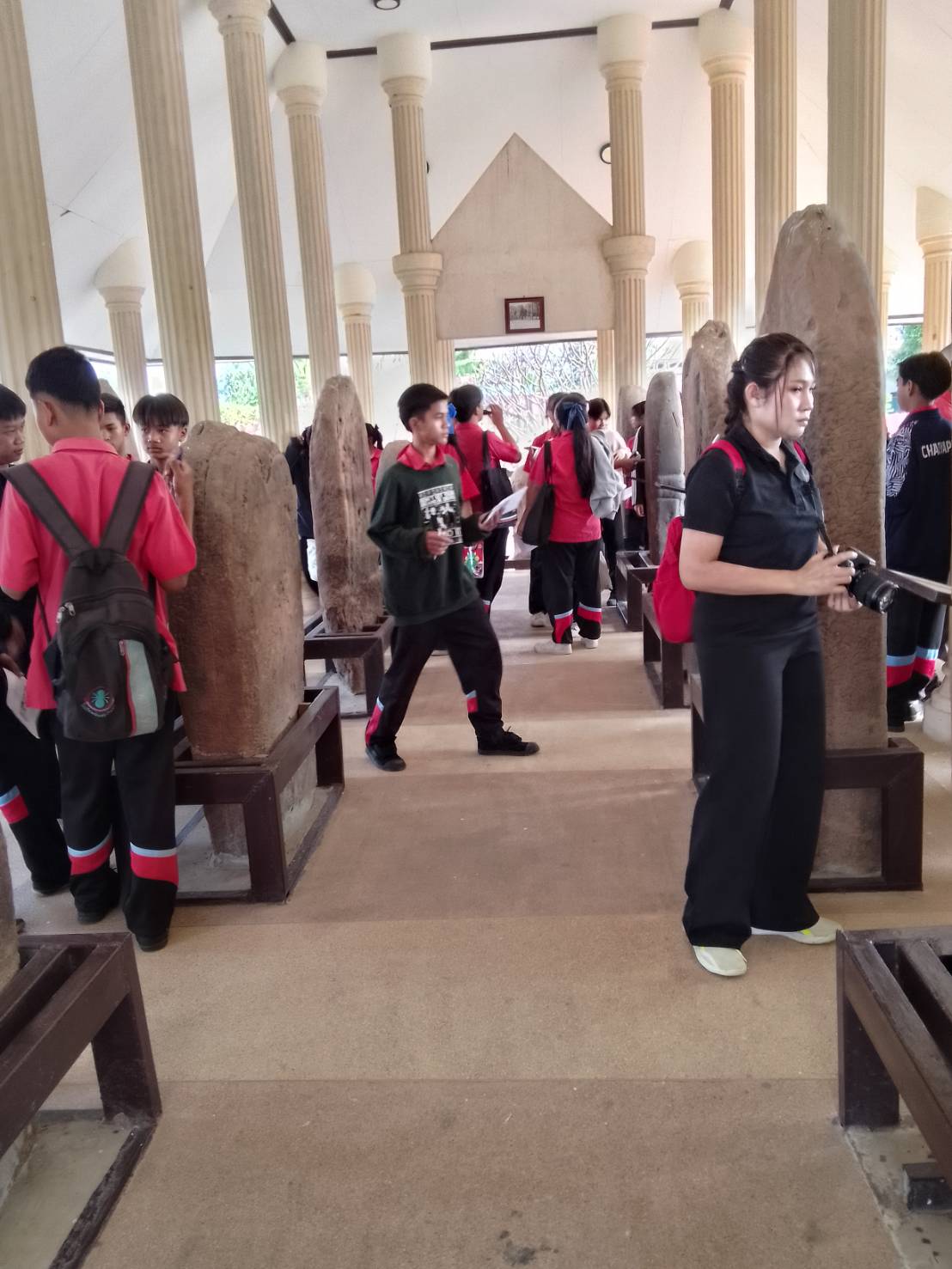 คณะครู นักเรียน เข้าชมโบราณสถานใบเสมาบ้านกุดโง้ง อำเภอเมือง จังหวัดชัยภูมิ และการดำเนินงานทำความสะอาดพื้นที่โดยรอบอาคารคลุมใบเสมา