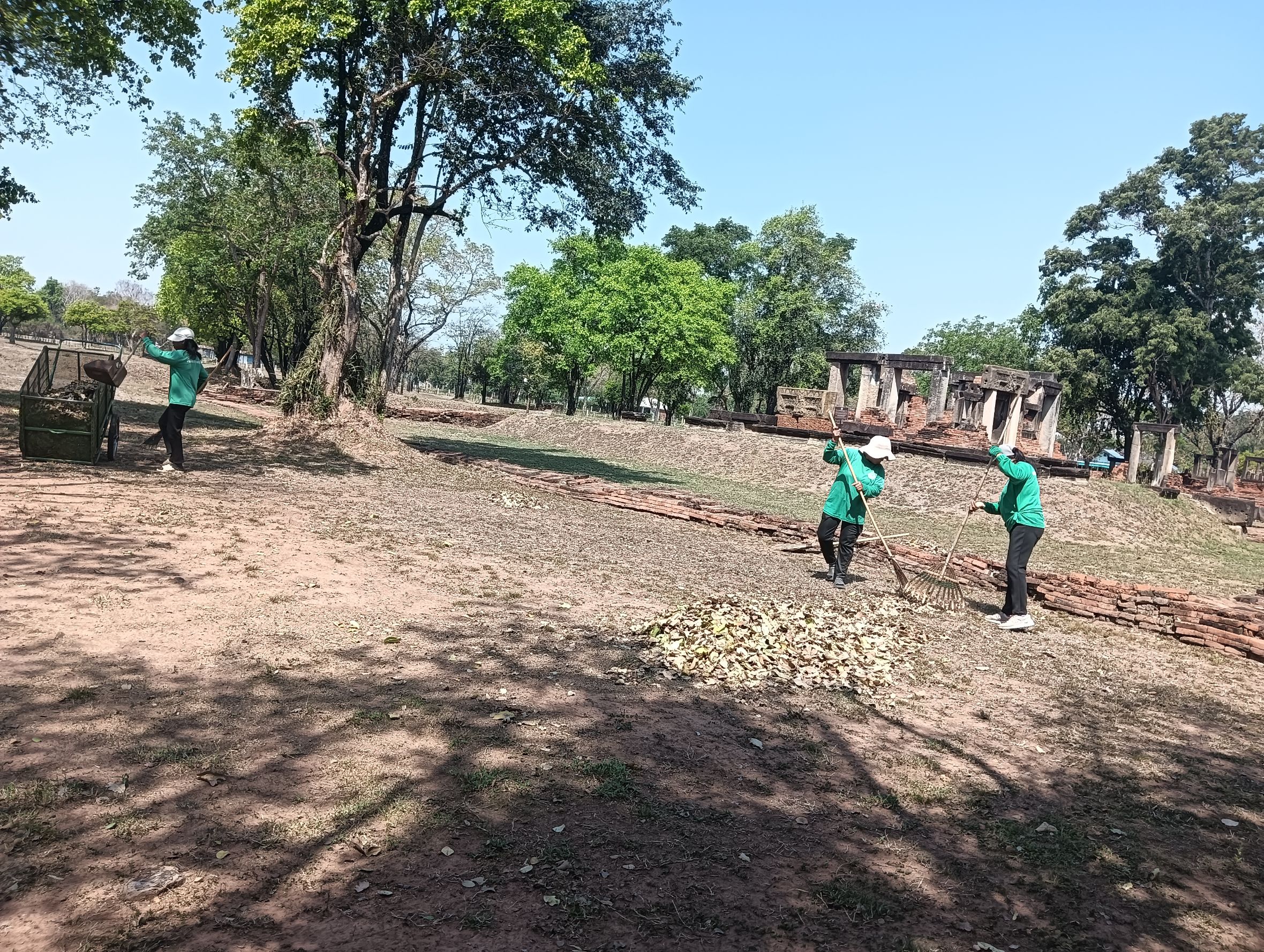 บรรยากาศนักท่องเที่ยวเข้าชมโบราณสถานปราสาทเมืองแขก ตำบลโคราช อำเภอสูงเนิน จังหวัดนครราชสีมา พร้อมทั้งการดำเนินงานถากถางกำจัดวัชพืช ดูแลความสะอาดพื้นที่บริเวณโดยรอบโบราณสถาน ในวันที่ 3 มีนาคม 2569