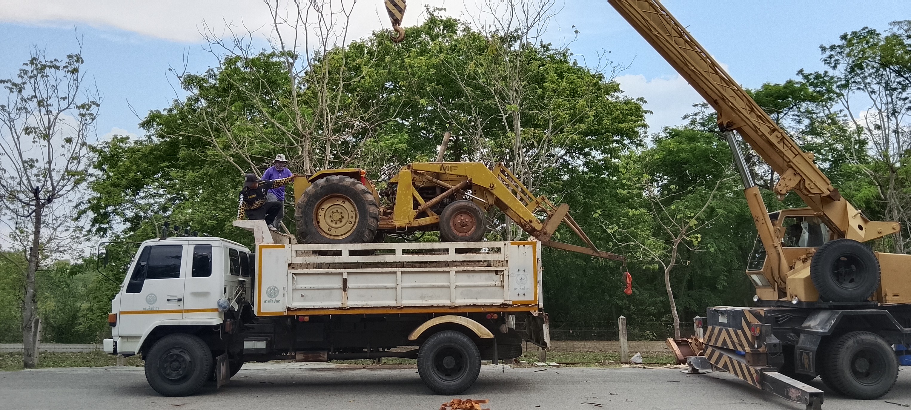 กลุ่มอนุรักษ์โบราณสถาน ดำเนินการขนย้ายเครื่องจักร (รถแทรคเตอร์และรถเครน) กลับมายังสำนักศิลปากรที่ 10 นครราชสีมา