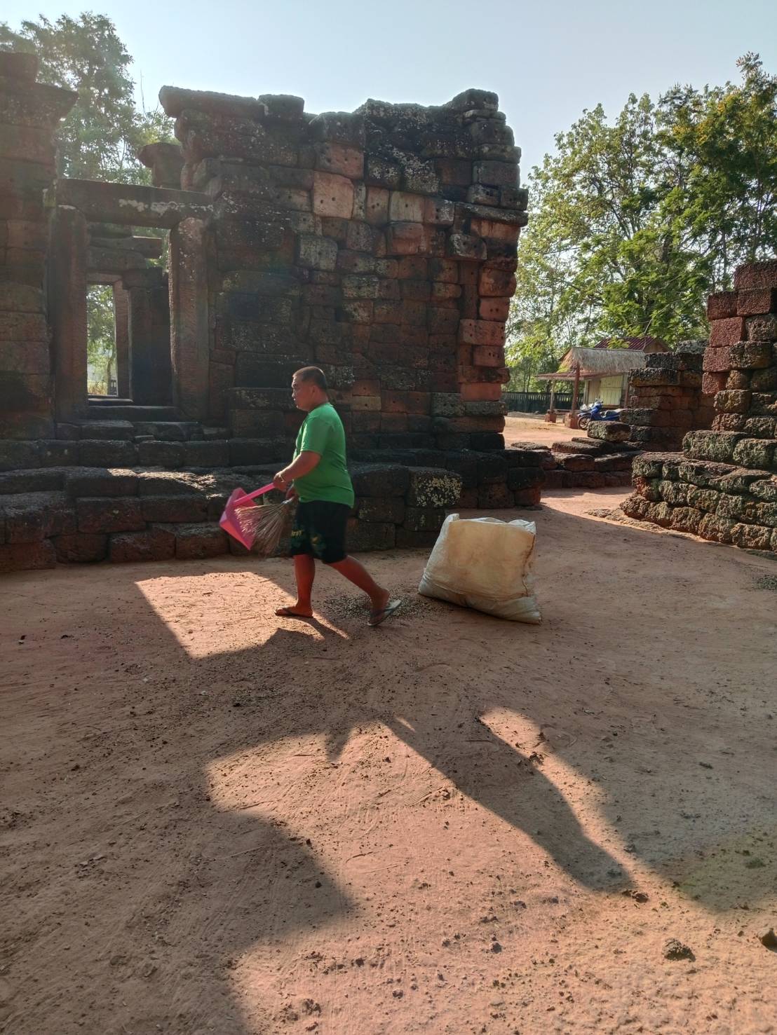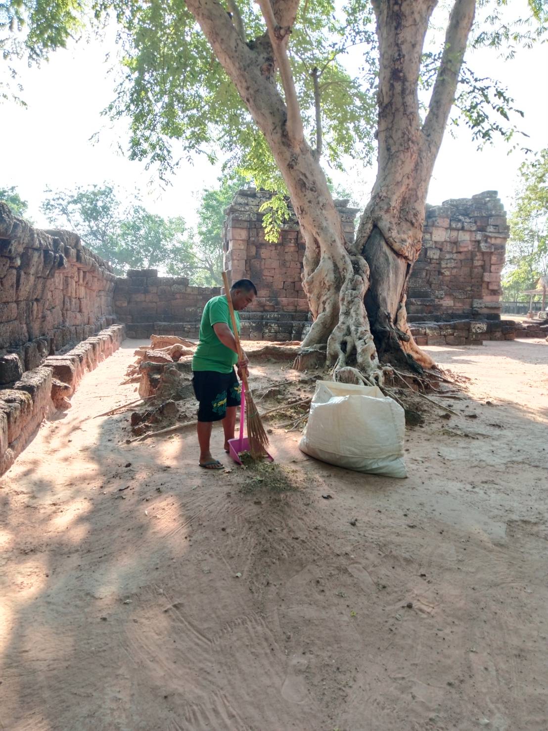 การดำเนินงานทำความสะอาดพื้นที่โดยรอบโบราณสถานปรางค์ครบุรี ตำบลครบุรี อำเภอครบุรี จังหวัดนครราชสีมา ในวันเสาร์ที่ 11 เมษายน 2569