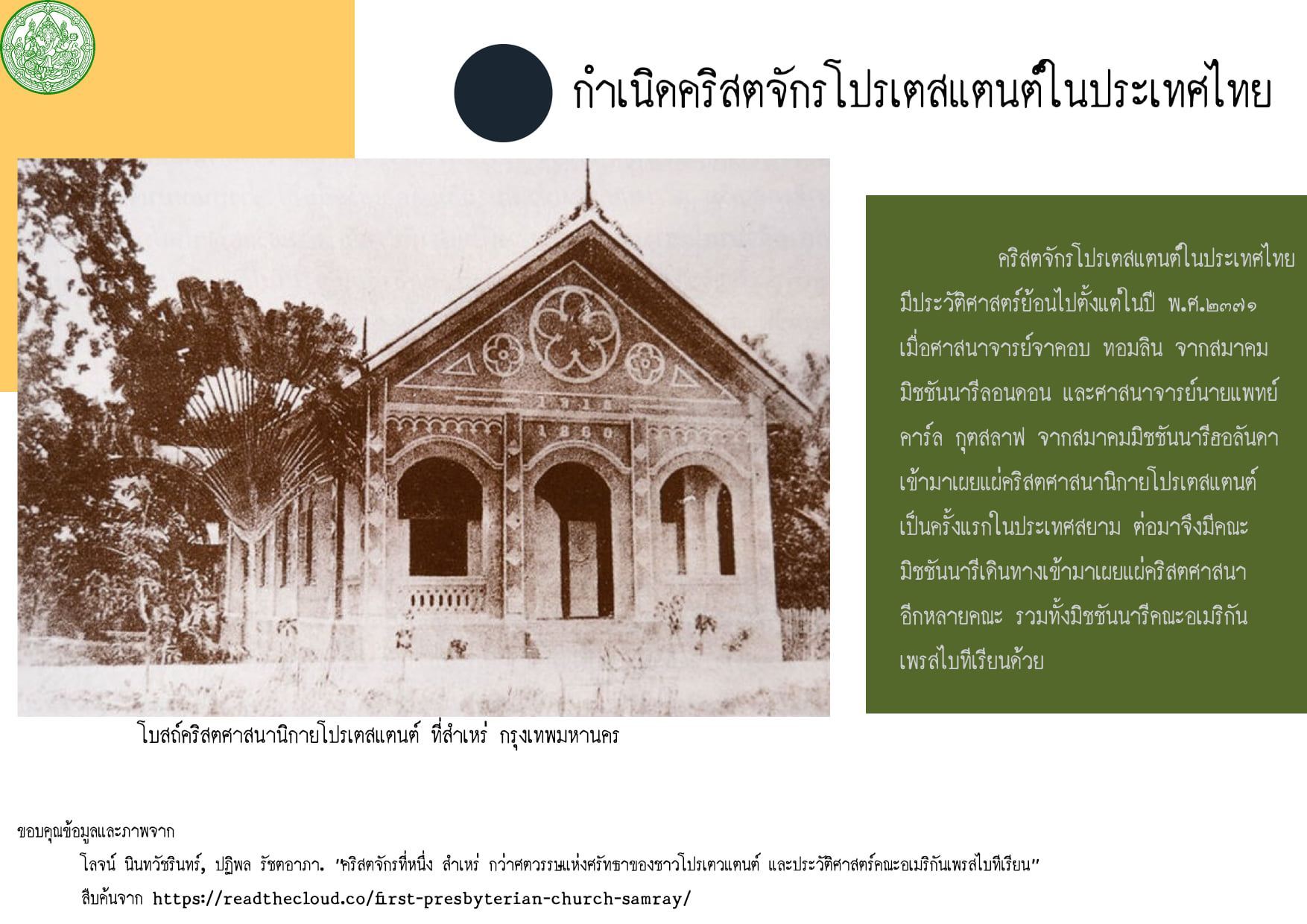 กำเนิดคริสตจักรโปรเตสแตนต์ในประเทศไทย