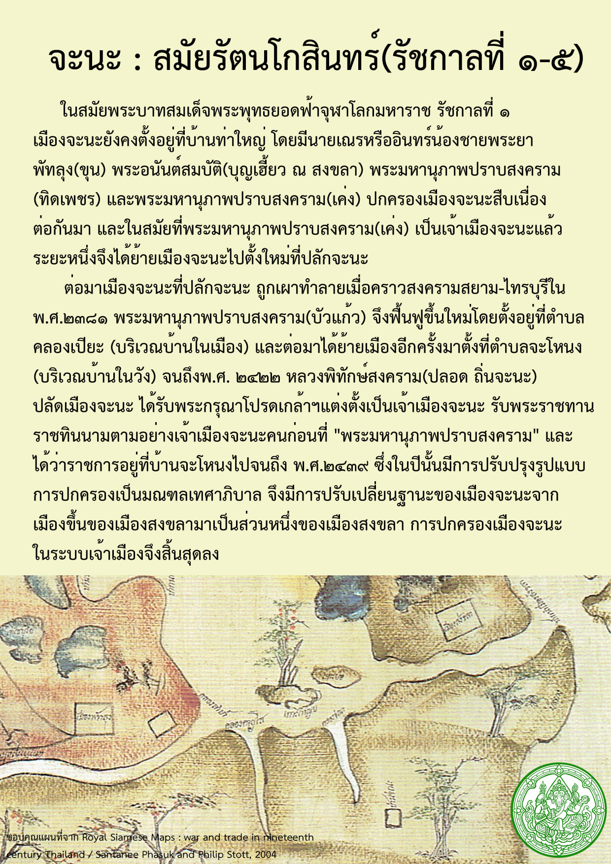 ประวัติศาสตร์และโบราณคดีเมืองจะนะ ตอนที่ ๓ ยุคประวัติศาสตร์ สมัยรัตนโกสินทร์ (รัชกาลที่ ๑-๕)