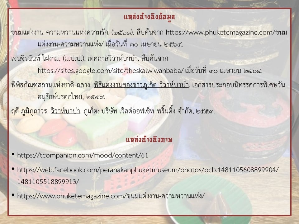 องค์ความรู้วิชาการ เรื่อง อาหารมงคลในพิธีแต่งงานของชาวบาบ๋าภูเก็ต