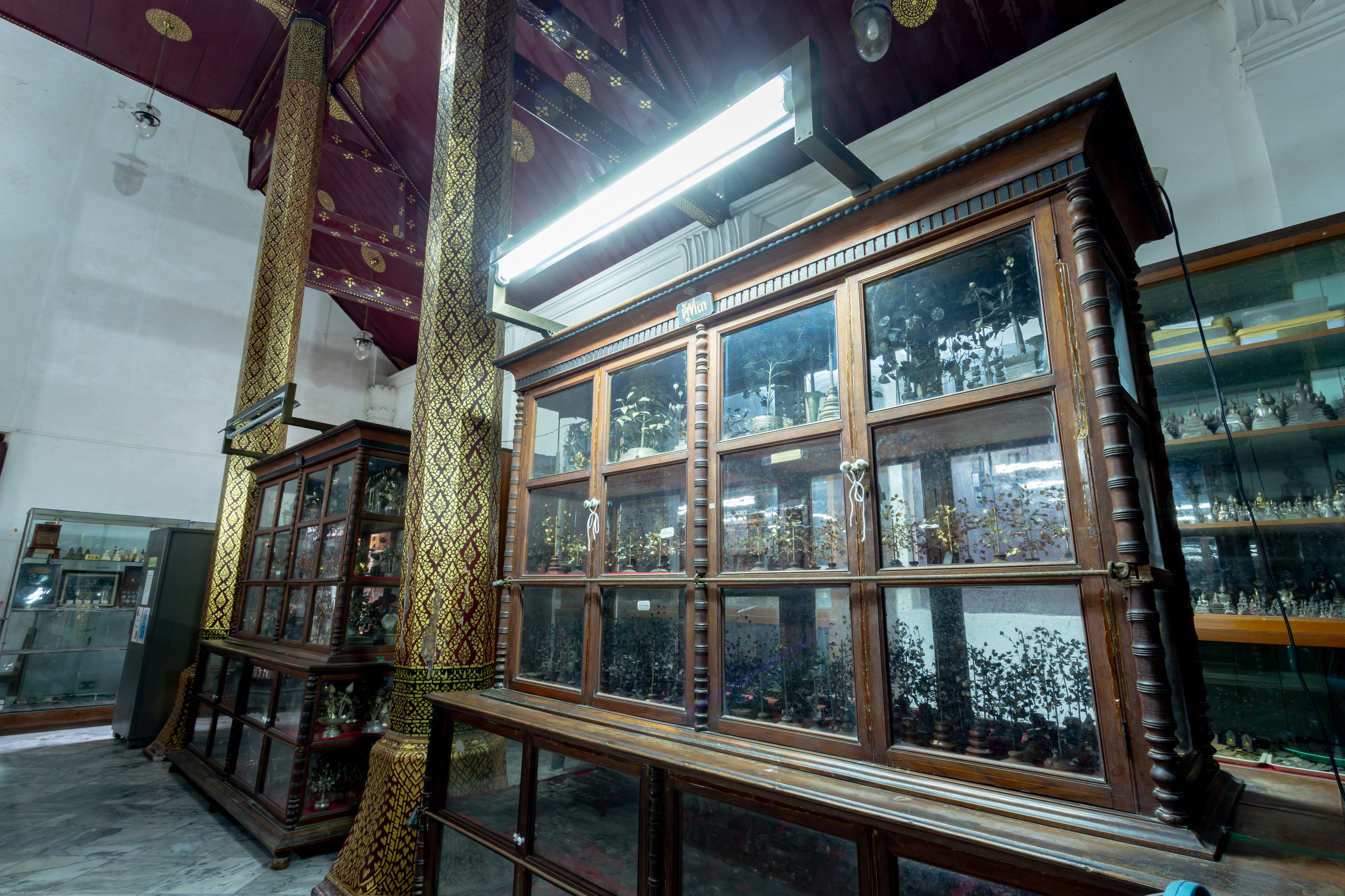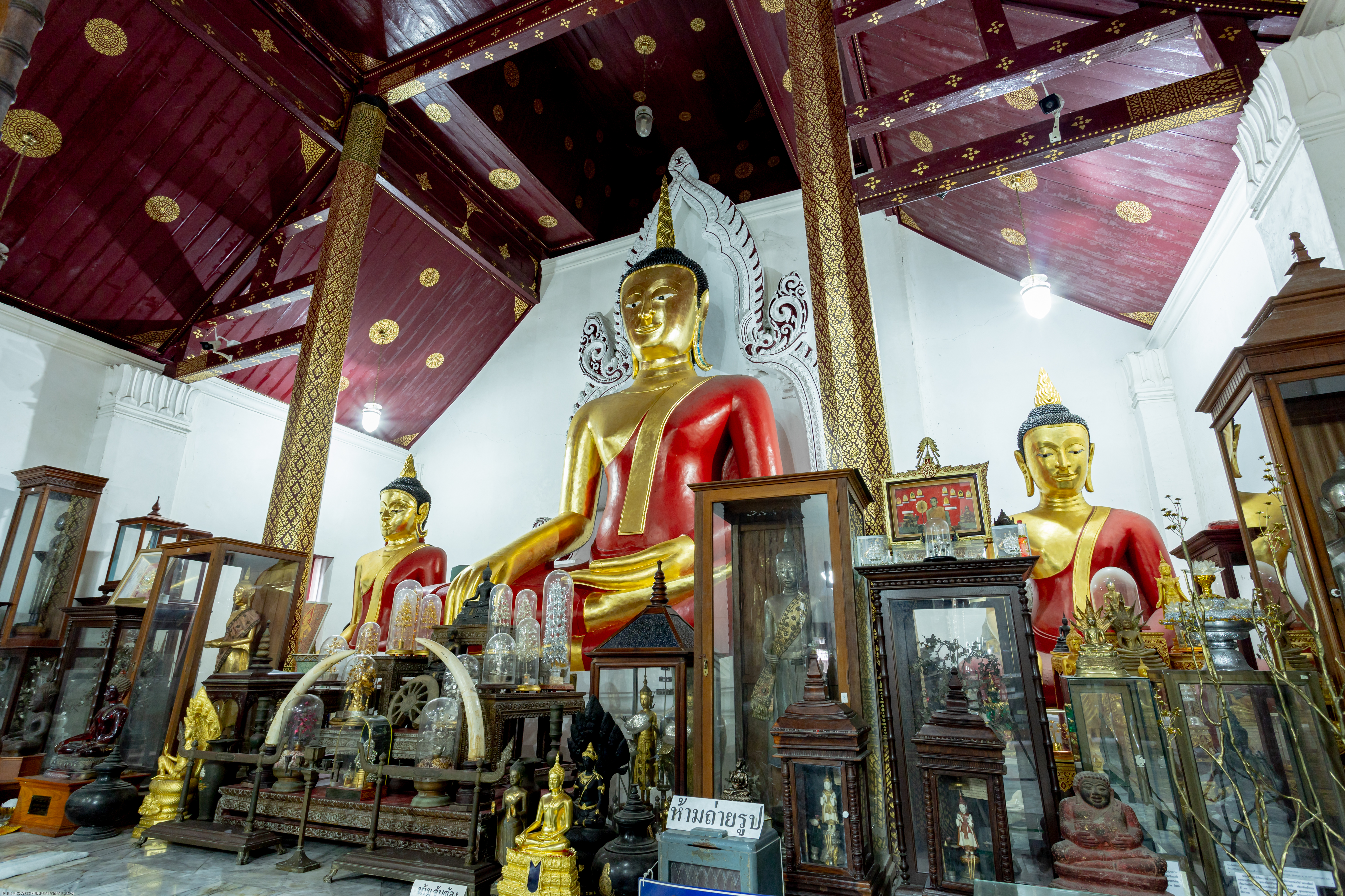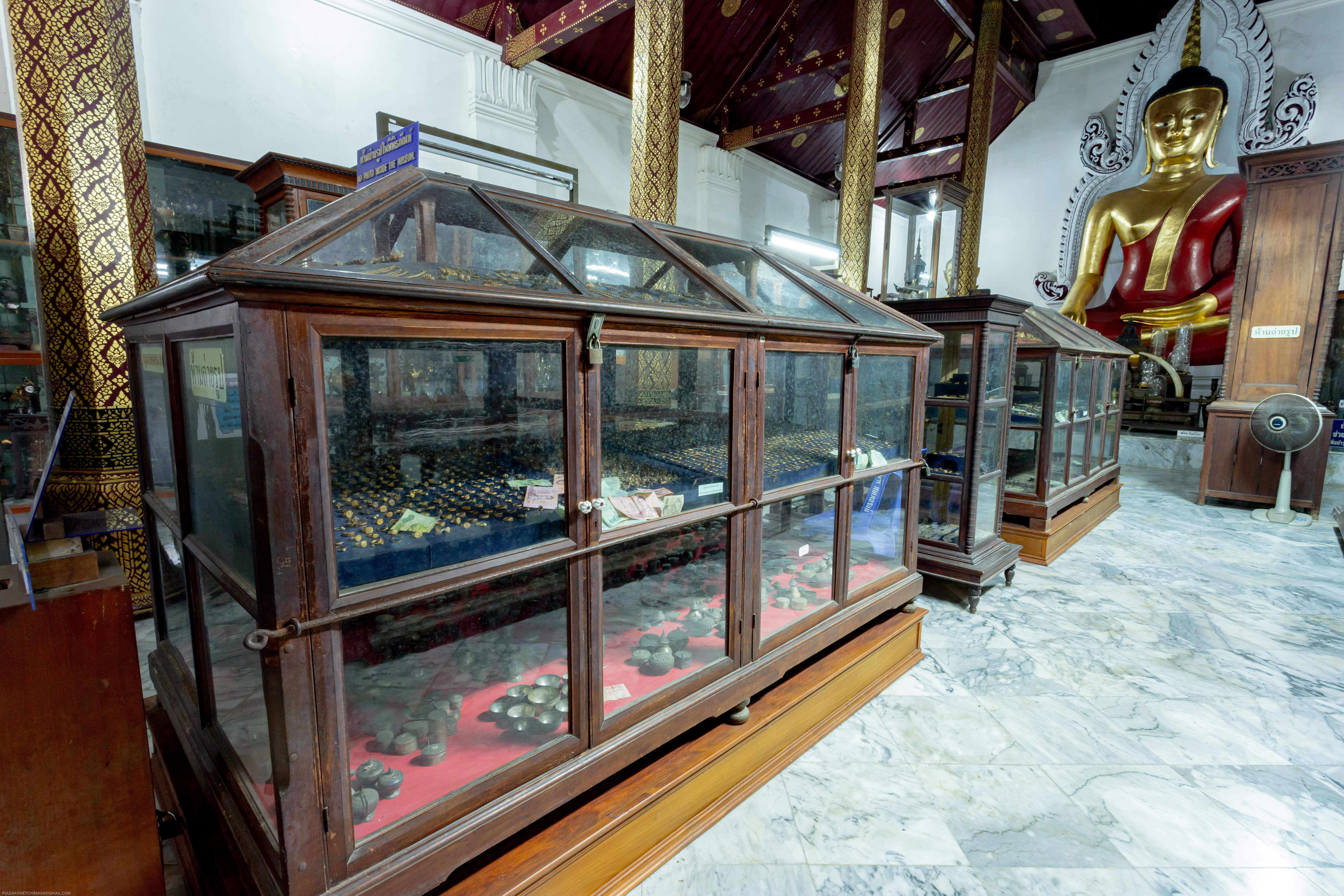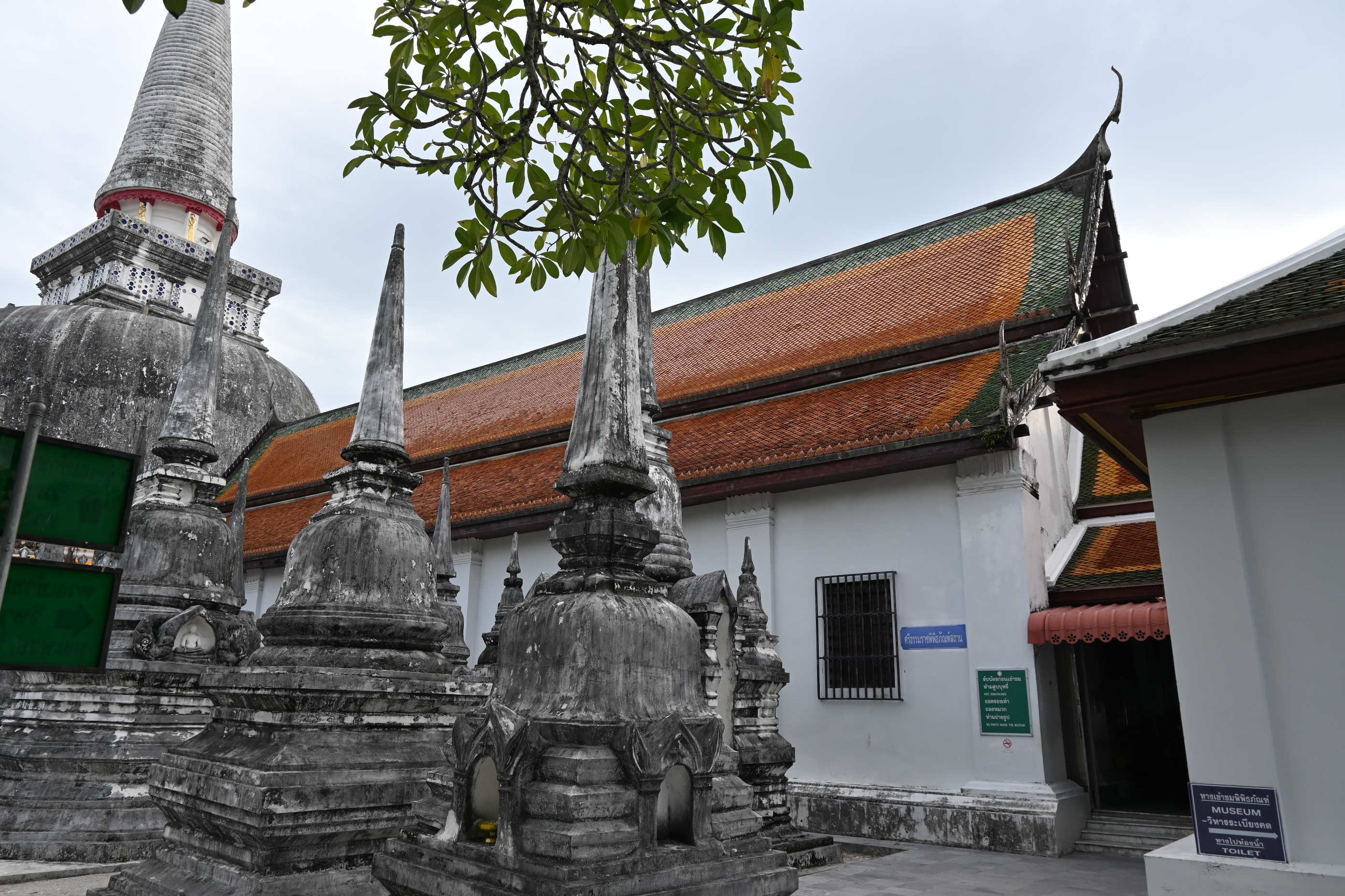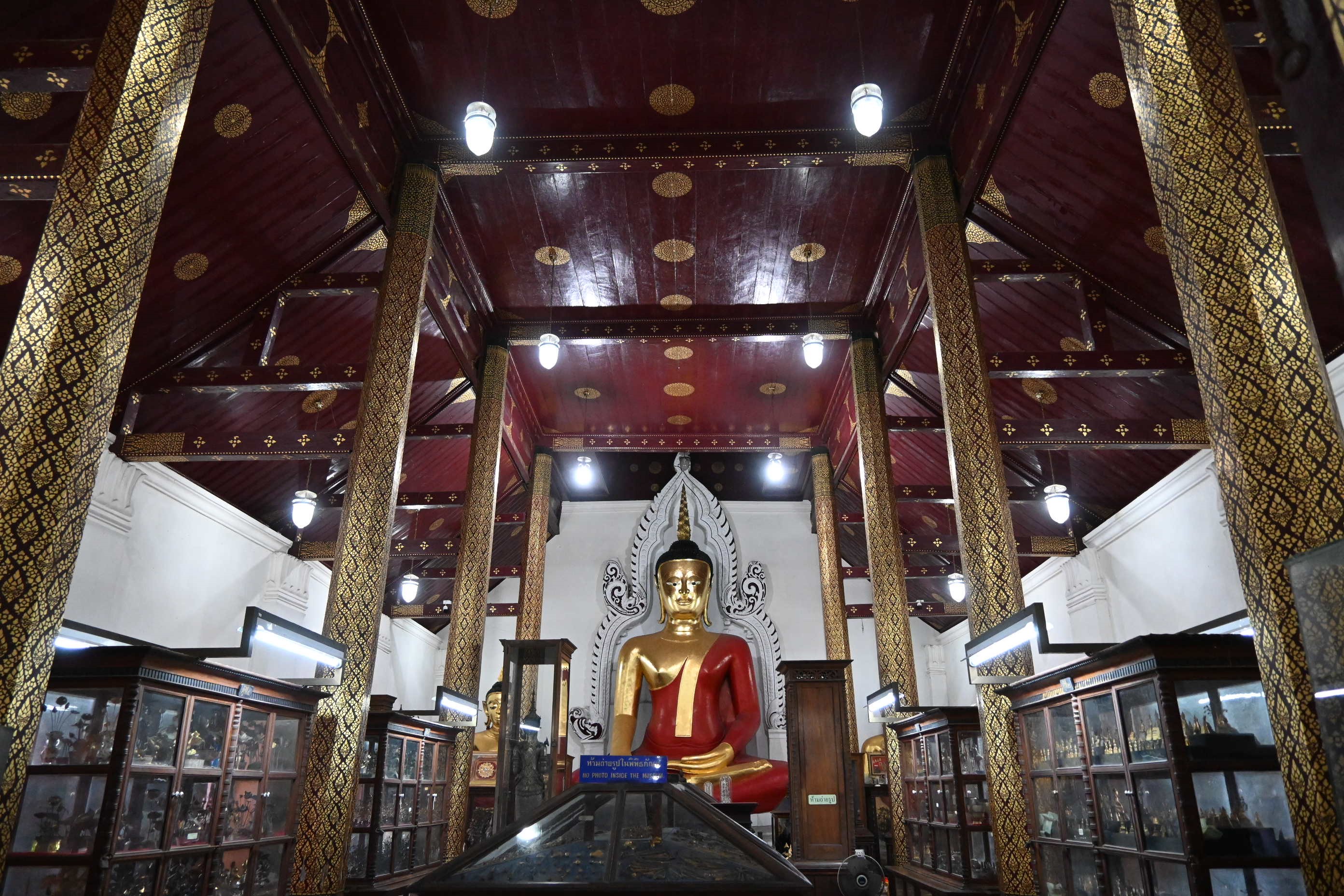 ใน พ.ศ. 2446 วิหารเขียนได้รับการปรับเปลี่ยนให้เป็นพิพิธภัณฑ์ของวัดเพื่อเก็บรักษาวัตถุมงคลและศิลปวัตถุหลายชนิด ภายในพิพิธภัณฑ์แห่งนี้มีศิลปวัตถุสำคัญนับร้อยชิ้น เช่น ดอกไม้และต้นไม้ทำจากเงินและทอง รวมถึงเครื่องประดับเงินและทองหลากหลายประเภท เช่น แหวน สร้อยคอ กำไลข้อมือ กำไลแขน ปิ่นปักผม ตุ้มหู และเข็มขัด นอกจากนี้ยังมีพระพิมพ์ กริช งานสลักจากงาช้าง เสาธง เสาหงส์ เจดีย์จำลอง ศาลาจำลอง เรือสำเภาจำลอง รวงข้าว คันไถ เชี่ยนหมาก ตะบันหมาก และพระพุทธรูปประดับอัญมณี สิ่งที่โดดเด่นในหมู่พระพุทธรูปเหล่านี้ ได้แก่ พระพุทธรูปปางห้ามสมุทรทำจากเงิน และอัญมณี และพระพุทธรูปทองคำถือบาตร วัดพระมหาธาตุมีพิพิธภัณฑ์ที่มีความโดดเด่นอย่างยิ่ง ตั้งอยู่ในวิหารเขียน วิหารโพธิ์ลังกา และอาคารส่วนขยายจากระเบียงคดด้านเหนือ ซึ่งเปิดให้ประชาชน เข้าชมฟรี พิพิธภัณฑ์แห่งนี้เก็บรักษาศิลปวัตถุและโบราณวัตถุจำนวนมากถึง 32,656 รายการ โดยมีงานศิลปะ 84 ชิ้น ที่ได้รับการขึ้นทะเบียนเป็นสมบัติของชาติและประกาศในราชกิจจานุเบกษา รวมทั้งได้รับการคุ้มครองจากรัฐบาล วัตถุมีค่าเหล่านี้ที่ได้รับบริจาคจากเชื้อพระวงศ์และประชาชนทั่วไป เป็นหลักฐานแห่งความศรัทธา วิถีปฏิบัติในการทำกุศลทาน และความเชื่อมโยงทางจิตวิญญาณที่มั่นคงระหว่างอารามแห่งนี้และประชาชน