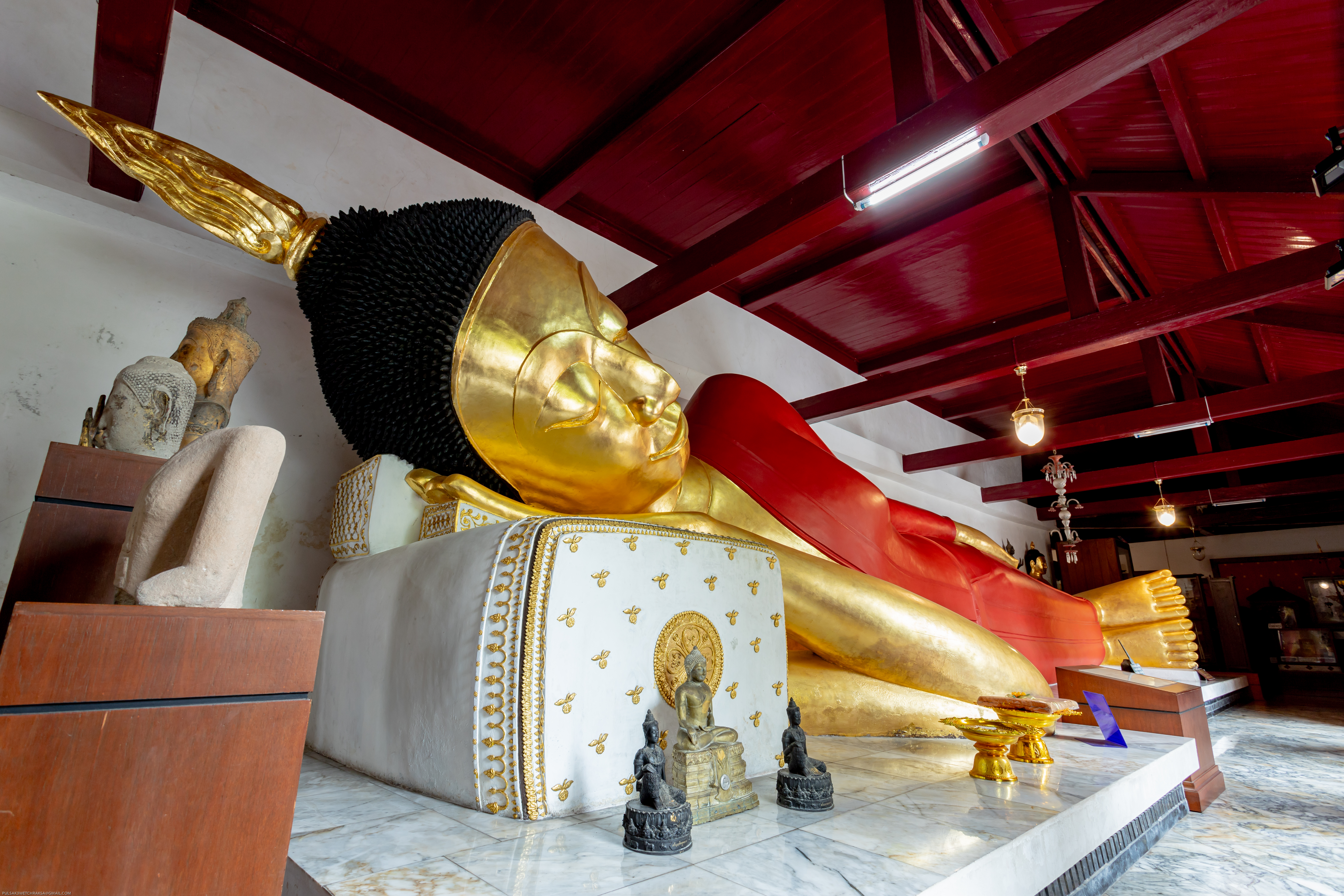 พระพุทธรูปอันโดดเด่นที่สร้างขึ้นเป็นครั้งแรกในสมัยกรุงธนบุรี พระพุทธรูปองค์นี้สร้างขึ้นในช่วงที่สมเด็จพระเจ้าตากสินมหาราชทรงเข้ามาปราบนครศรีธรรมราชใน พ.ศ. 2312 หลังจากการล่มสลายของกรุงศรีอยุธยา เพื่อรวบรวมอาณาจักรใหม่ของพระองค์ ต้นไม้เงิน ต้นไม้ทองที่ถวายแก่วัดพระมหาธาตุนั้นมีความสำคัญมาก เนื่องจากธรรมเนียมไทยมักจะถวายต้นไม้เหล่านี้แด่กษัตริย์ผู้ปกครองในฐานะเครื่องบรรณาการจากเมืองประเทศราช มีไม่ค่อยบ่อยครั้งนักที่ต้นไม้จำลองเหล่านี้ได้ถูกถวายให้แก่วัด การที่ต้นไม้เงินต้นไม้ทองปรากฏอยู่ในวัดพระมหาธาตุบ่งบอกว่าวัดนี้เคยเป็นศูนย์กลางของอาณาจักรที่มีอำนาจและทรงอิทธิพลในภูมิภาค นอกจากนี้ต้นไม้บางต้นทำขึ้นให้มีลักษณะคล้ายต้นโพธิ์ ซึ่งยืนยันถึง การเคารพบูชาต้นโพธิ์ทั้งต้นจริงและต้นจำลองที่มีความสำคัญและมีการปฏิบัติสืบต่อกันมาในอารามแห่งนี้
