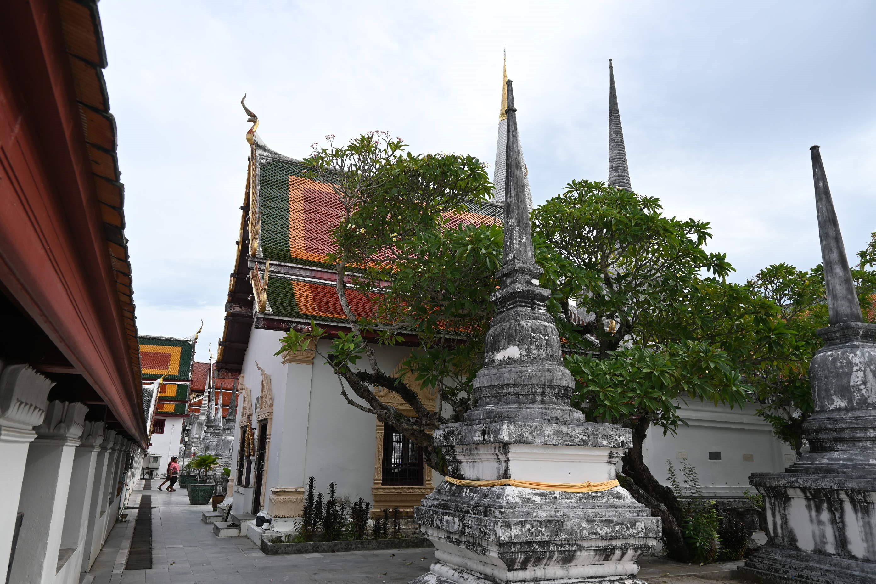 ชั้นบนของเจดีย์มีทางเดินแคบ ๆ สำหรับเวียนประทักษิณ โดยมีครุฑปูนปั้นประดับอยู่ที่มุมทั้ง 4 ด้านในวิหารมีพระพุทธรูปขนาดใหญ่ที่ประดับด้วยอัญมณี ซึ่งแต่เดิมประดิษฐานอยู่ในวิหารโพธิ์ลังกา ทางด้านทิศเหนือของวัด ต่อมาพระพุทธรูปองค์นี้ถูกย้ายมาประดิษฐานเป็นพระประธานในวิหารแห่งนี้ และได้รับการขนานนามว่า พระศรีธรรมาโศกราช เพื่อเป็นเกียรติแก่พระเจ้าศรีธรรมโศกราชผู้เป็นปฐมกษัตริย์และผู้ก่อตั้งวัดพระมหาธาตุและนครศรีธรรมราช ตามที่ระบุไว้ในพงศาวดารท้องถิ่น วิหารแห่งนี้สร้างขึ้นโดยนายสามจอม ข้าราชการผู้ดูแลรายชื่อเจ้าหน้าที่ที่ปฏิบัติงานในวัด