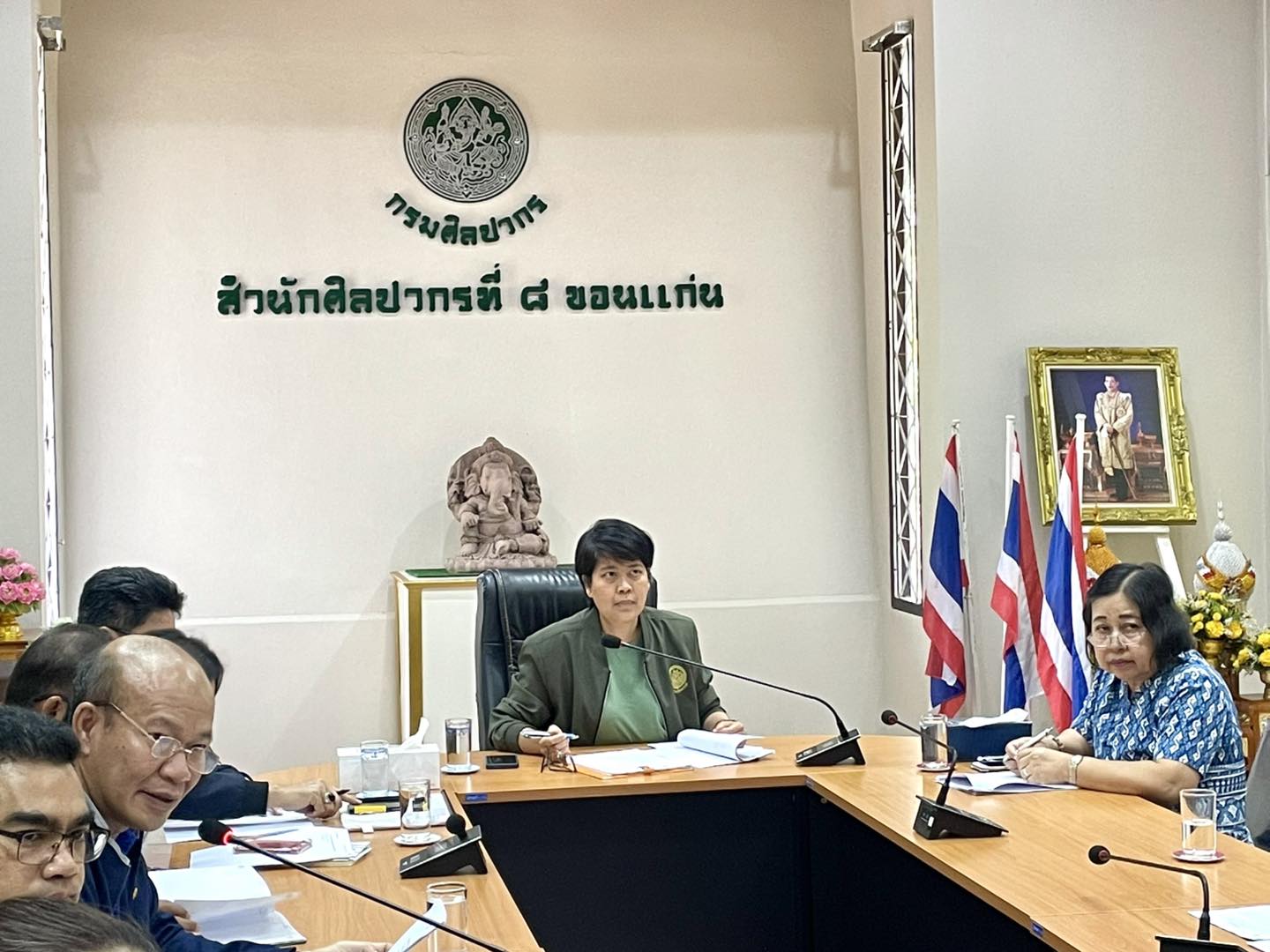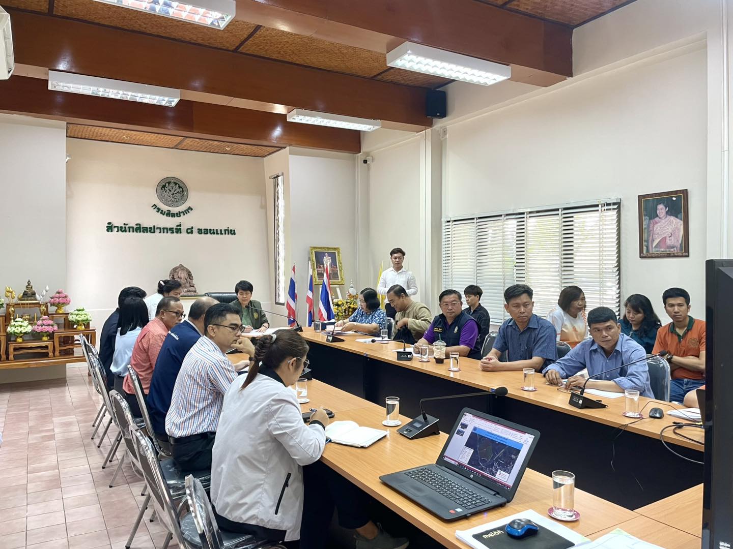 วันพฤหัสบดีที่ ๑๓ มีนาคม ๒๕๖๘ เวลา ๑๐.๐๐ น. นางสาวมนัชญา วาจก์วิศุทธิ์ ผู้อำนวยการสำนักศิลปากรที่ ๘ ขอนแก่น พร้อมด้วยข้าราชการ และเจ้าหน้าที่จากอำเภอน้ำพอง สำนักงานชลประทานที่ ๖ และองค์การบริหารส่วนตำบลบ้านขาม ประชุมหารือร่วมกันเกี่ยวกับแหล่งโบราณคดีโนนหนองเทา อำเภอน้ำพอง จังหวัดขอนแก่น ณ ห้องประชุมสำนักศิลปากรที่ ๘ ขอนแก่น