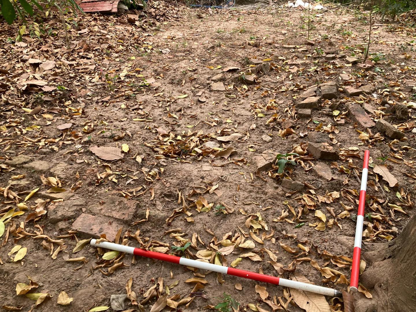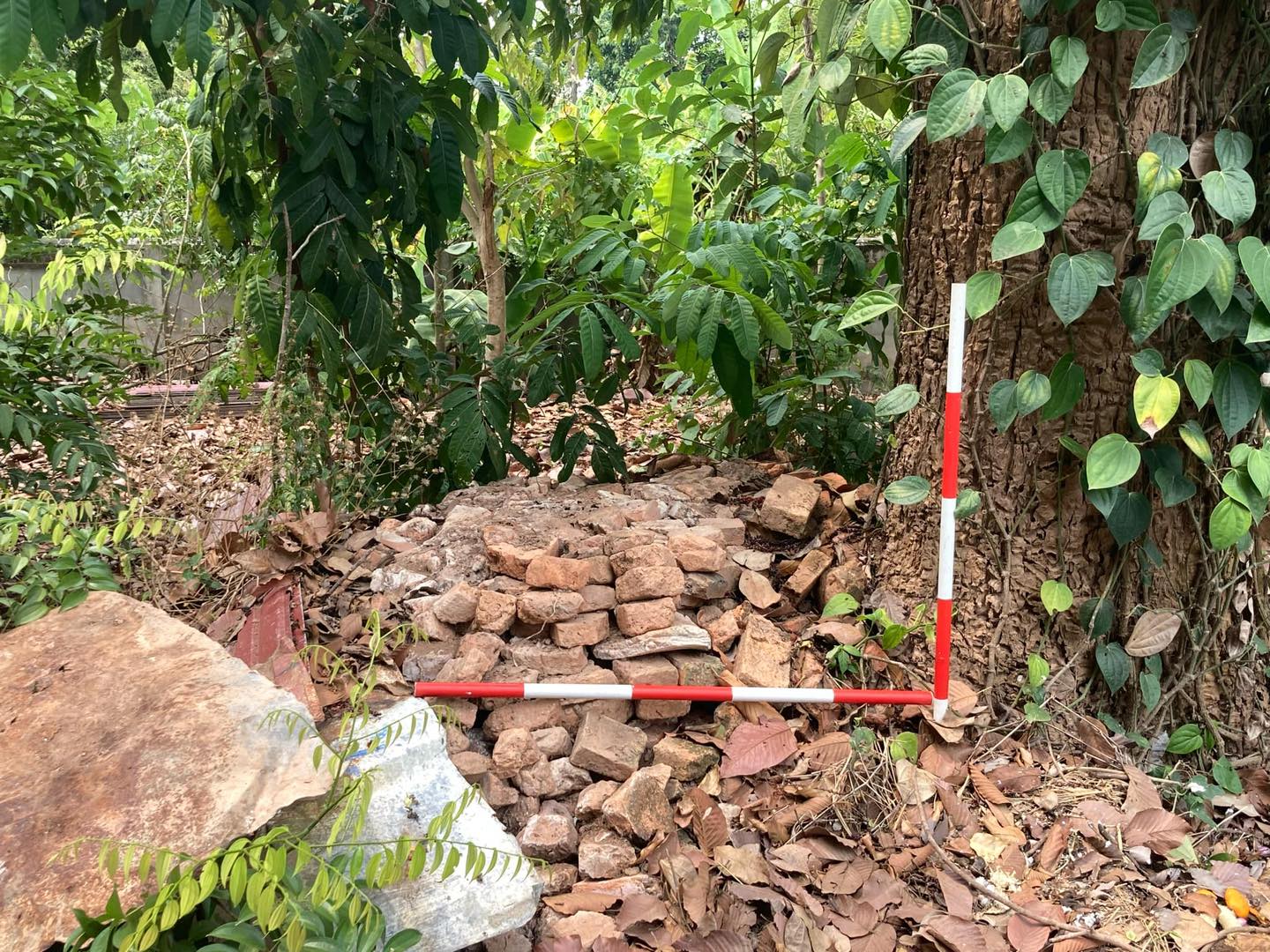 ๒. แนวฐานอาคารก่ออิฐในผังสี่เหลี่ยมผืนผ้าขนาดประมาณ ๗x๑๑ เมตร พบร่วมกับเศษปูนปั้น และเศษกระเบื้องมุงหลังคา