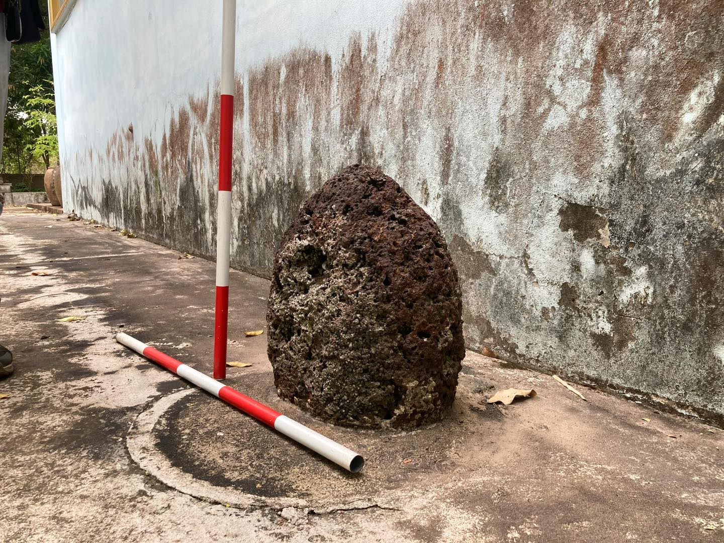 ๕. ใบเสมาศิลาแลง ขนาดกว้างประมาณ ๔๐-๕๐ ซม. ปักรอบอุโบสถ หลังใหม่ (ตามประวัติระบุว่า อุโบสถ สร้างทับฐานอาคารเดิม)