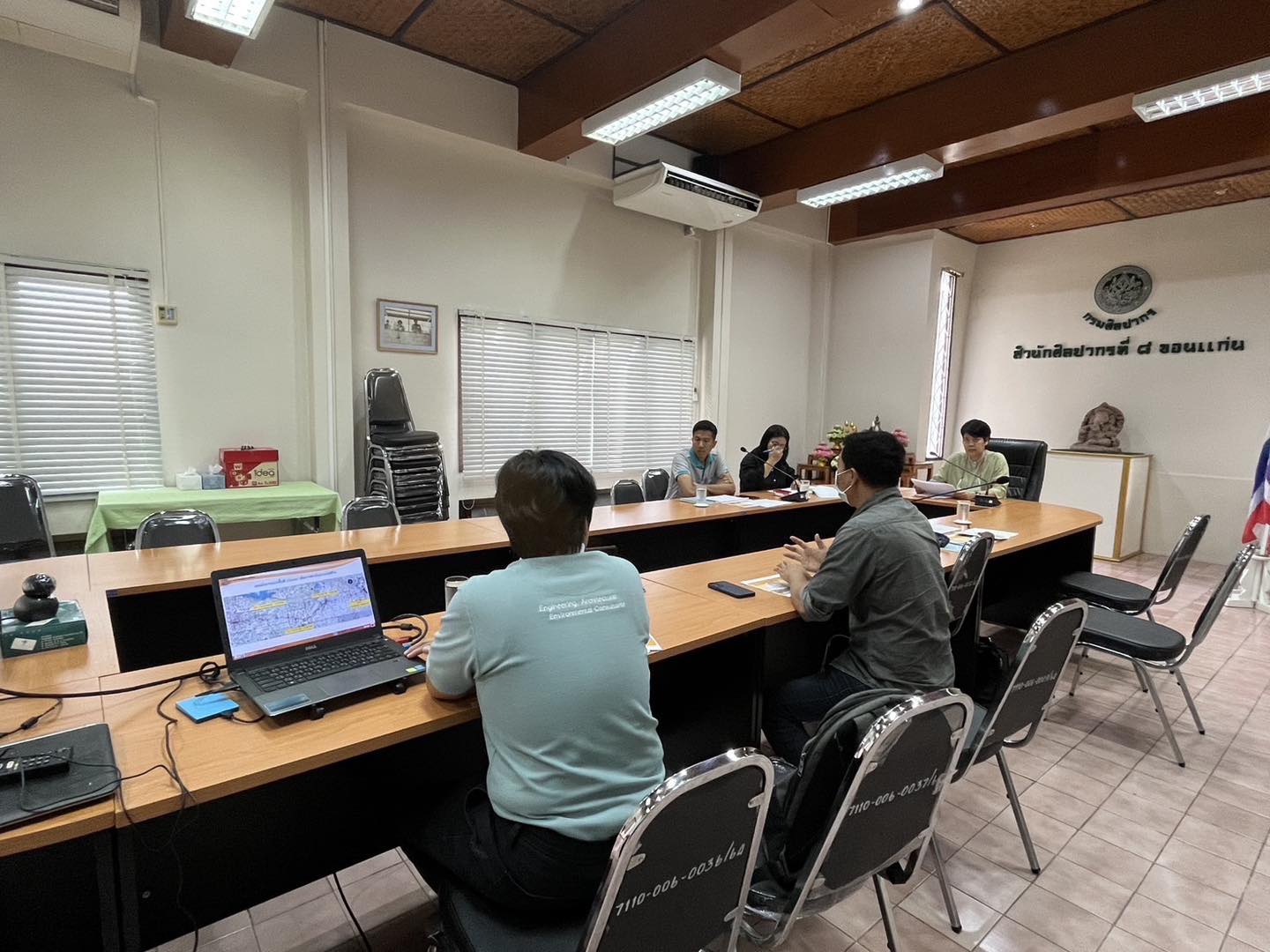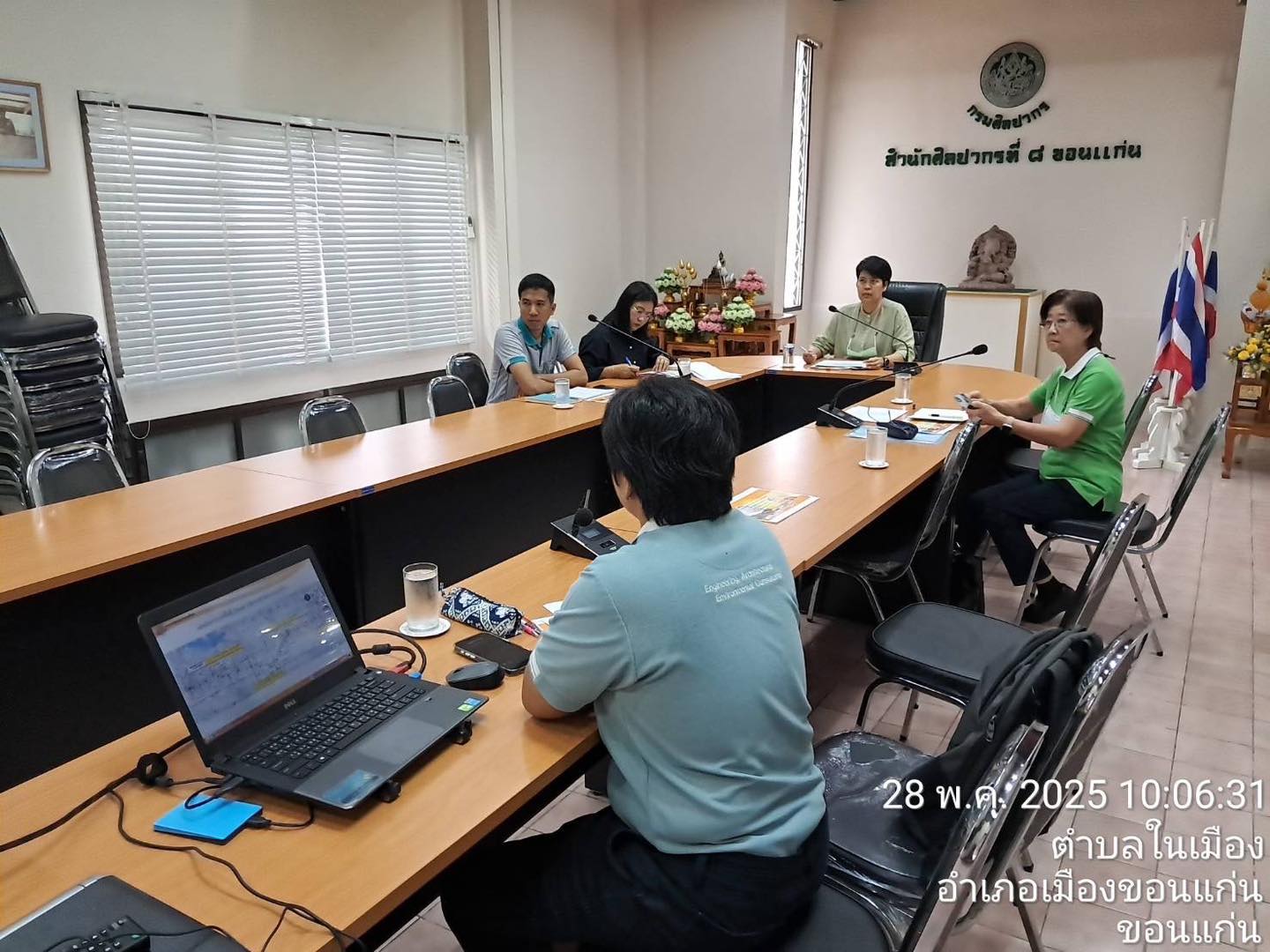 วันพุธที่ ๒๘ พฤษภาคม ๒๕๖๘ เวลา ๑๐.๐๐ น. บริษัทที่ปรึกษาการรถไฟแห่งประเทศไทย โครงการรถไฟทางคู่ ช่วงขอนแก่น-หนองคาย นำโดย นางดารณี ต.เจริญ ผู้เชี่ยวชาญด้านสิ่งแวดล้อม กลุ่มบริษัทที่ปรึกษา CSCKN นางสาวพัชรี ชลาประเสริฐ ผู้ช่วยผู้เชี่ยวชาญด้านสิ่งแวดล้อม กลุ่มบริษัทที่ปรึกษา CSCKN และนายบุญเพิ่ม พลเยี่ยม เจ้าความปลอดภัยและสิ่งแวดล้อม กิจการร่วมค้า ช.ทวี-เอเอส ก่อสร้าง (ผู้รับเหมาก่อสร้างของโครงการ) เข้าหารือร่วมกับนางสาวมนัชญา วาจก์วิศุทธิ์ ผู้อำนวยการสำนักศิลปากรที่ ๘ ขอนแก่น พร้อมด้วยนางสาวกุลวดี สมัครไทย นักโบราณคดีชำนาญการ และนายจักรพันธ์ เพ็งประไพ นักโบราณคดีชำนาญการ ในการวางแนวปฏิบัติเกี่ยวกับแหล่งโบราณสถานที่ยังไม่ขึ้นทะเบียน ซึ่งอยู่ในเขตทางของการรถไฟ ซึ่งอาจพบหลักฐานใต้ดิน จึงจำเป็นต้องมีการดำเนินการตรวจสอบทางโบราณคดี ๒ แหล่ง คือ วัดป่าศรีจันทร์ ตำบลนาพู่ อำเภอเพ็ญ จังหวัดอุดรธานี และวัดโพธิ์ทอง (ร้าง) ตำบลนาพู่ อำเภอเพ็ญ จังหวัดอุดรธานี