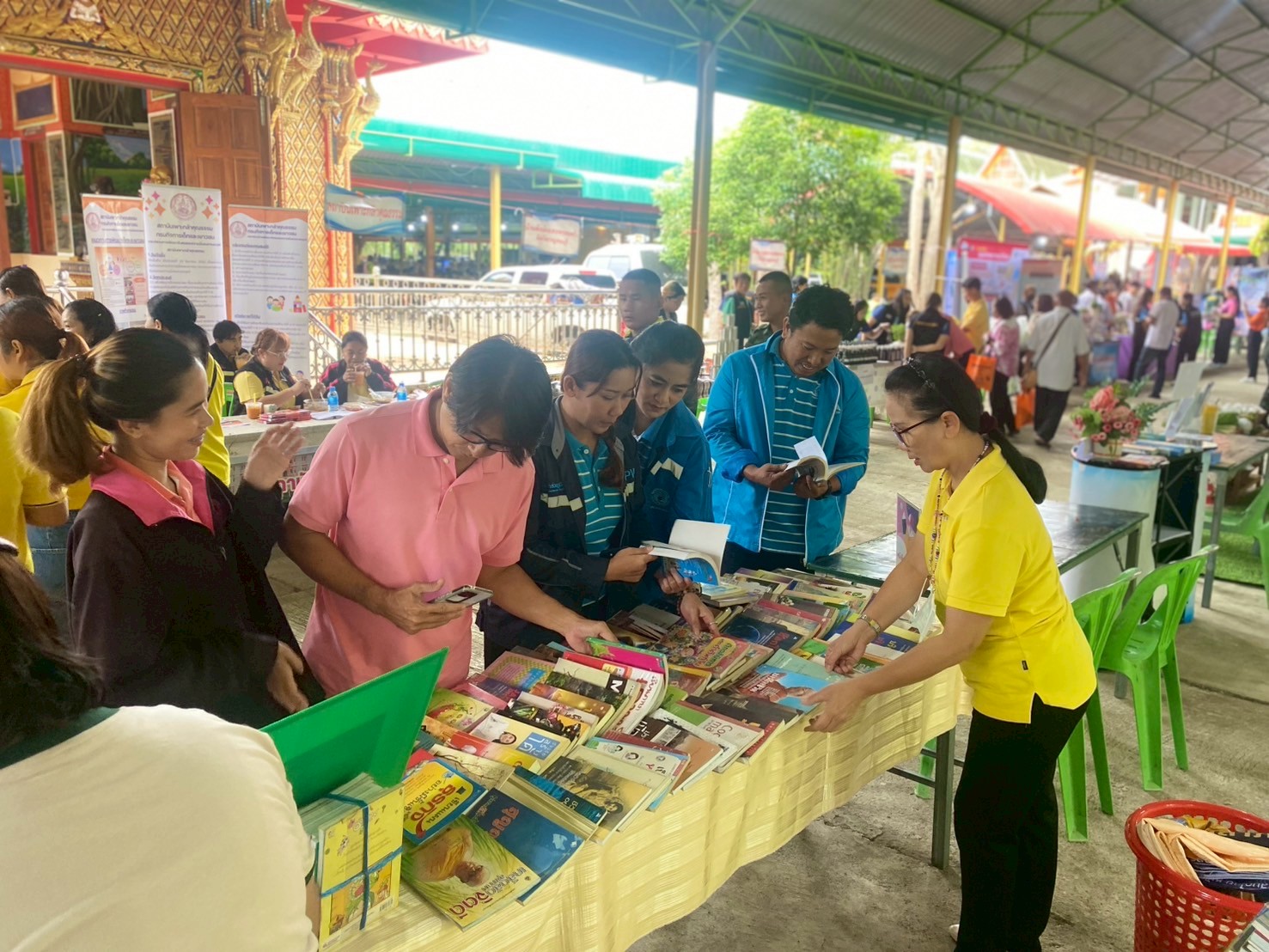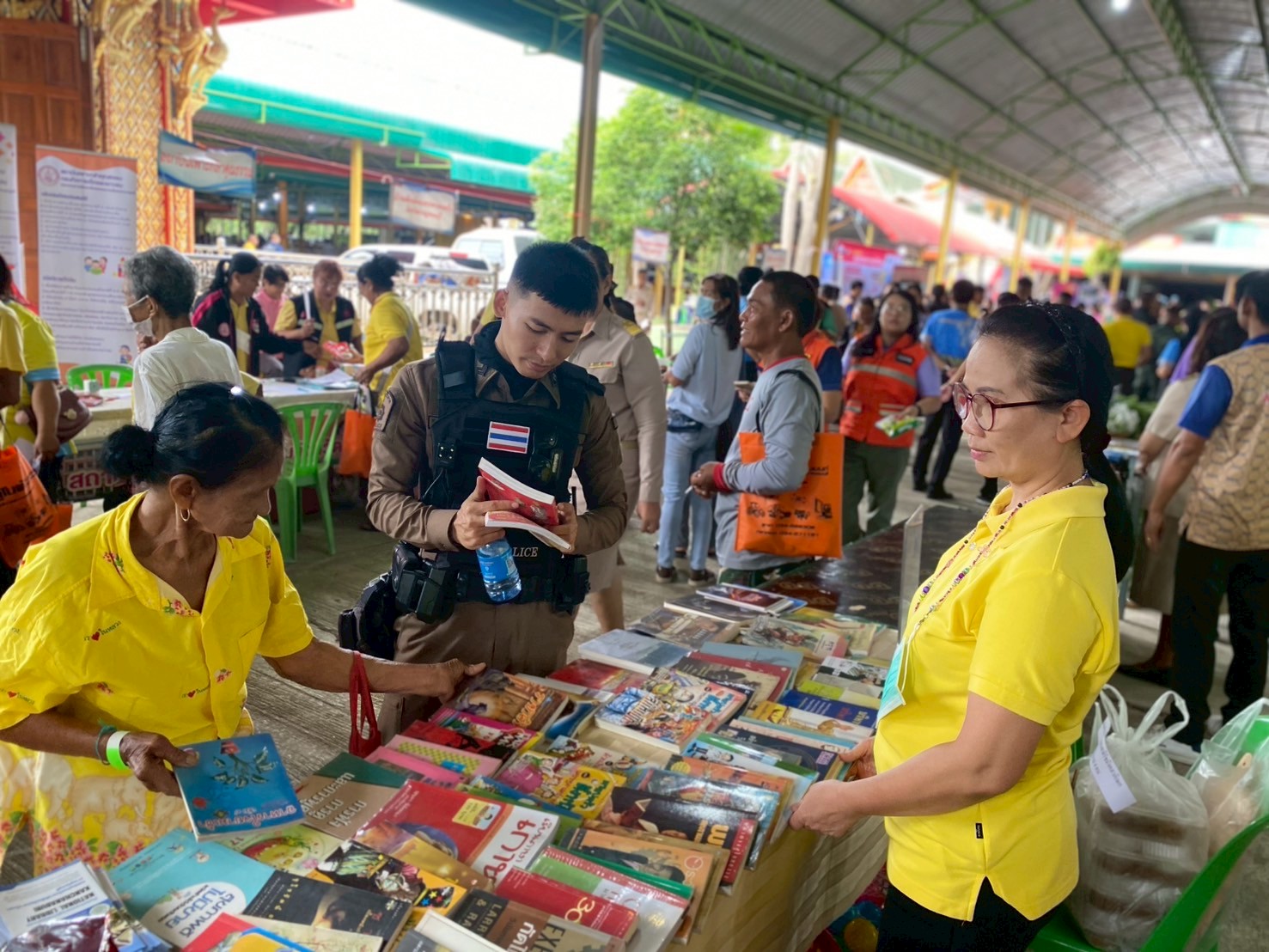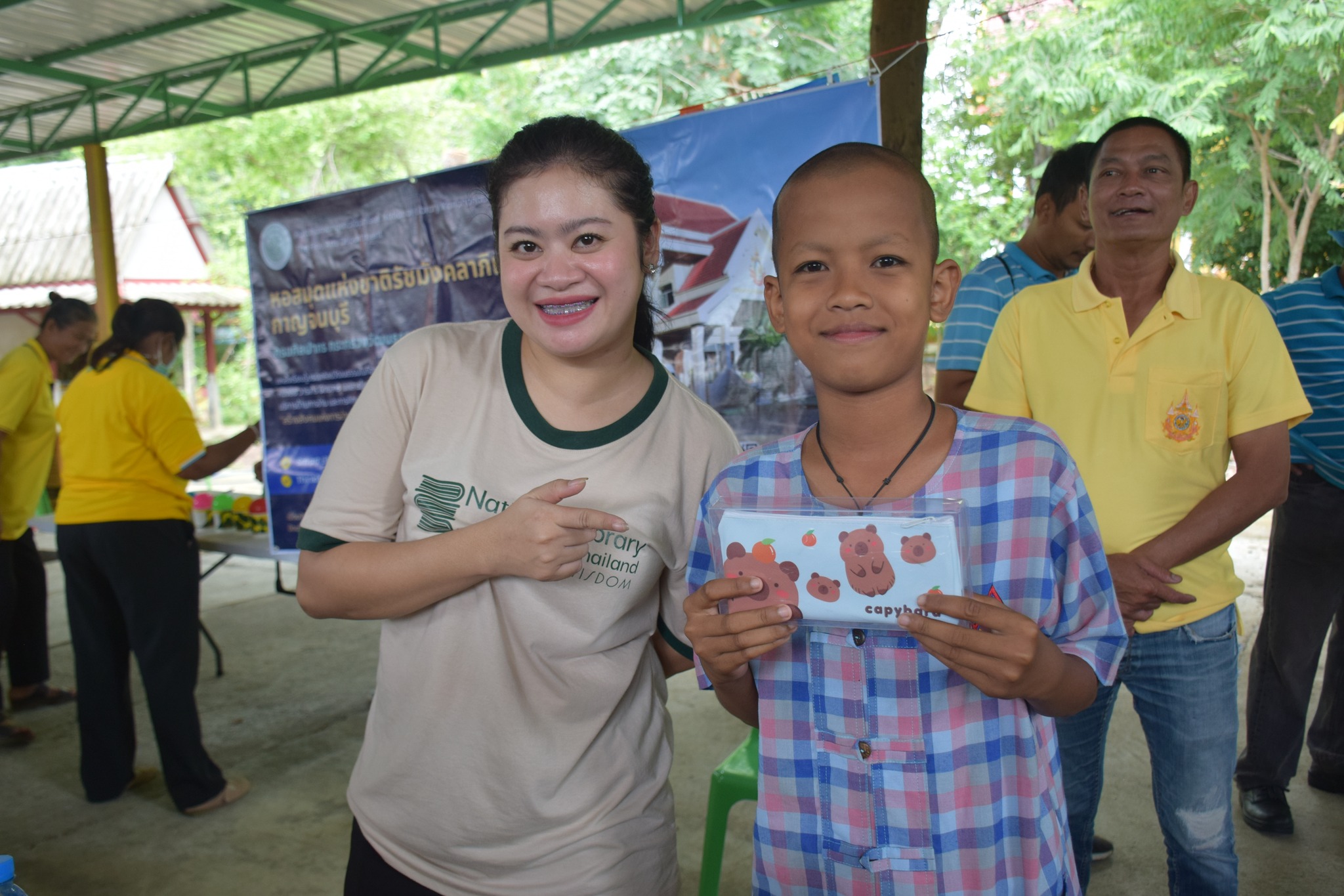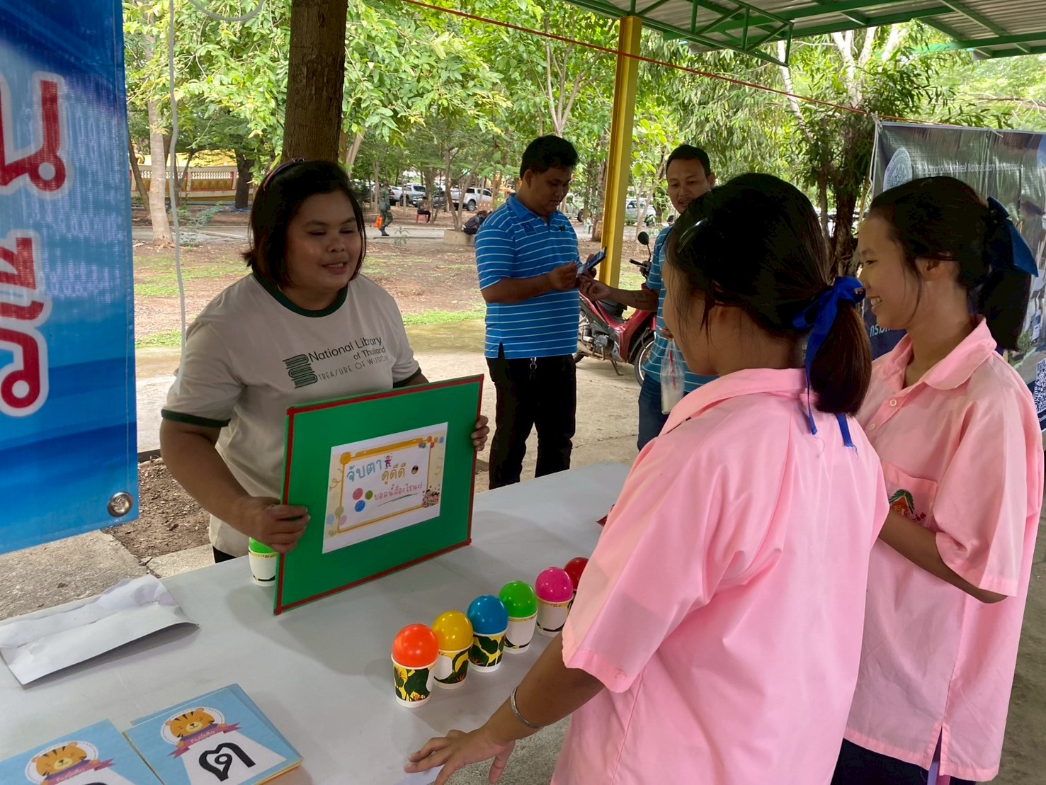 วันนี้ (วันที่ 22 กรกฎาคม 2568) หอสมุดแห่งชาติรัชมังคลาภิเษก กาญจนบุรี ร่วมกับ จังหวัดกาญจนบุรีในโครงการจังหวัดเคลื่อนที่ “บำบัดทุกข์ บำรุงสุข สร้างรอยยิ้มให้ประชาชน” ครั้งที่ 9 นำโดย นางสาวสรณ์สิริ สีหนาท หัวหน้าหอสมุดแห่งชาติรัชมังคลาภิเษก กาญจนบุรี พร้อมด้วย นางสาวลกุล เหมพันธ์ บรรณารักษ์ นางสาวมณฑิตา ทองอินทร์ บรรณารักษ์ และนายกนก ทองอินทร์ เจ้าพนักงานโสตทัศนศึกษา ได้จัดหนังสือดีจากโครงการ Books Share แบ่งปันกันอ่าน มอบให้ผู้เข้าร่วมโครงการจำนวน 200 เล่ม กิจกรรมจับตาดูดีดีบอลนี้สีอะไรนะ! และปริศนาคำประสม ณ วัดสระสำเภาทอง ต.พนมทวน อ.พนมทวน จ.กาญจนบุรี