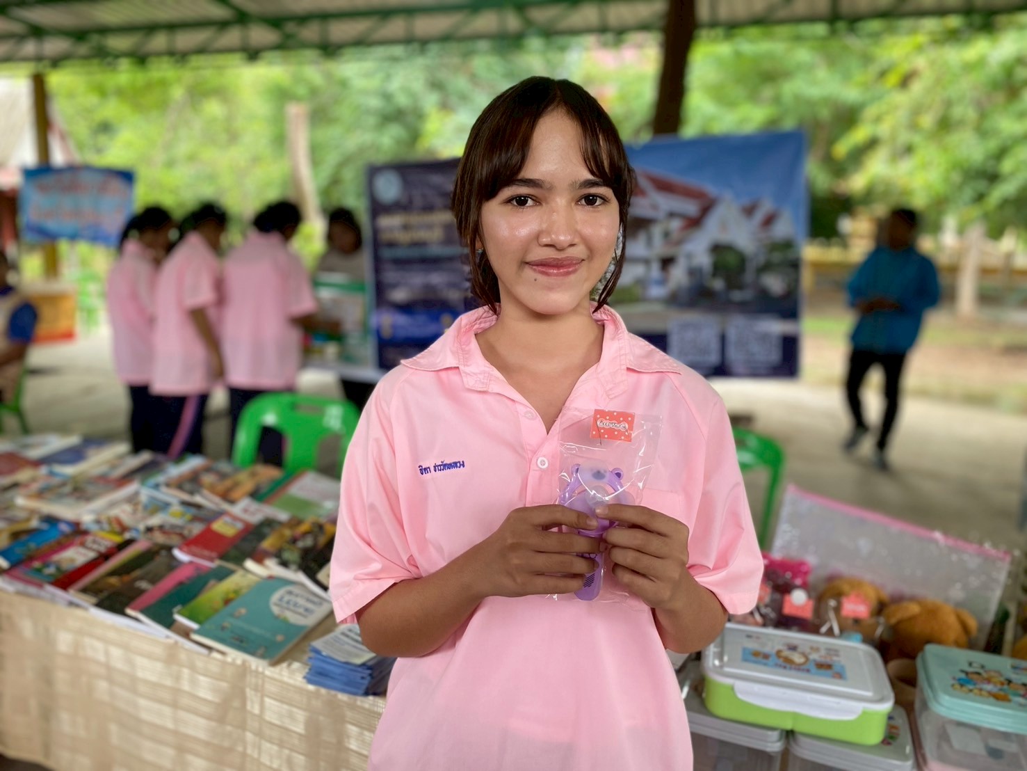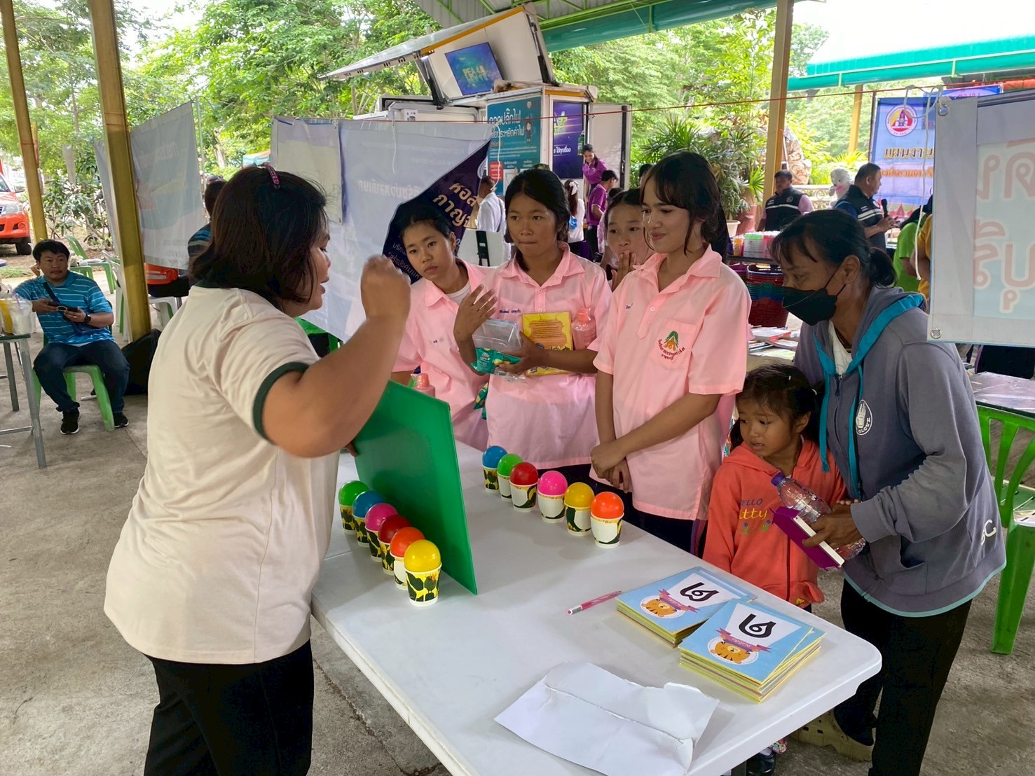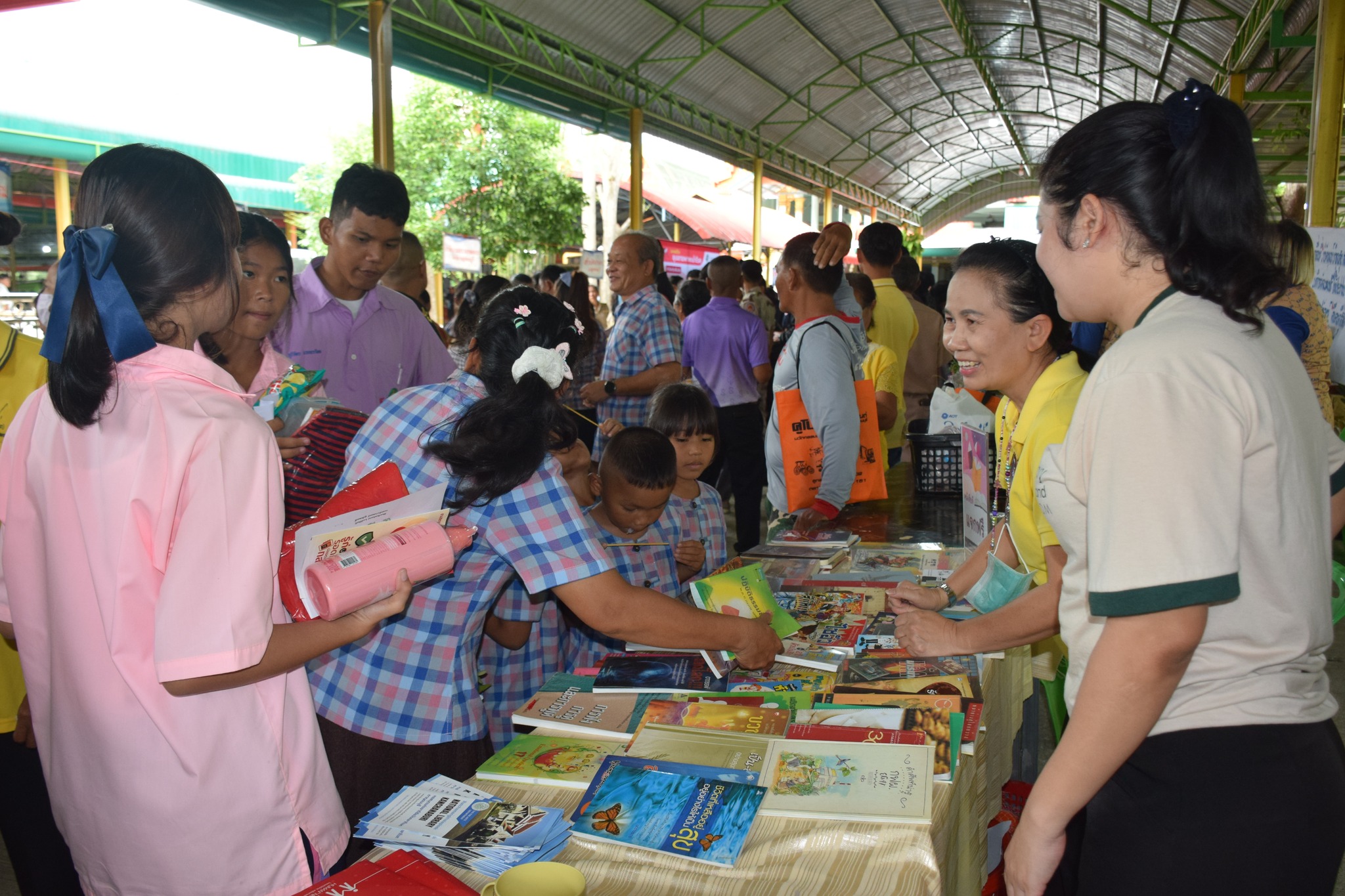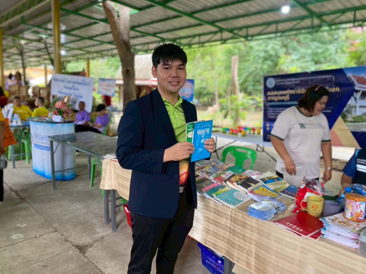 วันนี้ (วันที่ 22 กรกฎาคม 2568) หอสมุดแห่งชาติรัชมังคลาภิเษก กาญจนบุรี ร่วมกับ จังหวัดกาญจนบุรีในโครงการจังหวัดเคลื่อนที่ “บำบัดทุกข์ บำรุงสุข สร้างรอยยิ้มให้ประชาชน” ครั้งที่ 9 นำโดย นางสาวสรณ์สิริ สีหนาท หัวหน้าหอสมุดแห่งชาติรัชมังคลาภิเษก กาญจนบุรี พร้อมด้วย นางสาวลกุล เหมพันธ์ บรรณารักษ์ นางสาวมณฑิตา ทองอินทร์ บรรณารักษ์ และนายกนก ทองอินทร์ เจ้าพนักงานโสตทัศนศึกษา ได้จัดหนังสือดีจากโครงการ Books Share แบ่งปันกันอ่าน มอบให้ผู้เข้าร่วมโครงการจำนวน 200 เล่ม กิจกรรมจับตาดูดีดีบอลนี้สีอะไรนะ! และปริศนาคำประสม ณ วัดสระสำเภาทอง ต.พนมทวน อ.พนมทวน จ.กาญจนบุรี