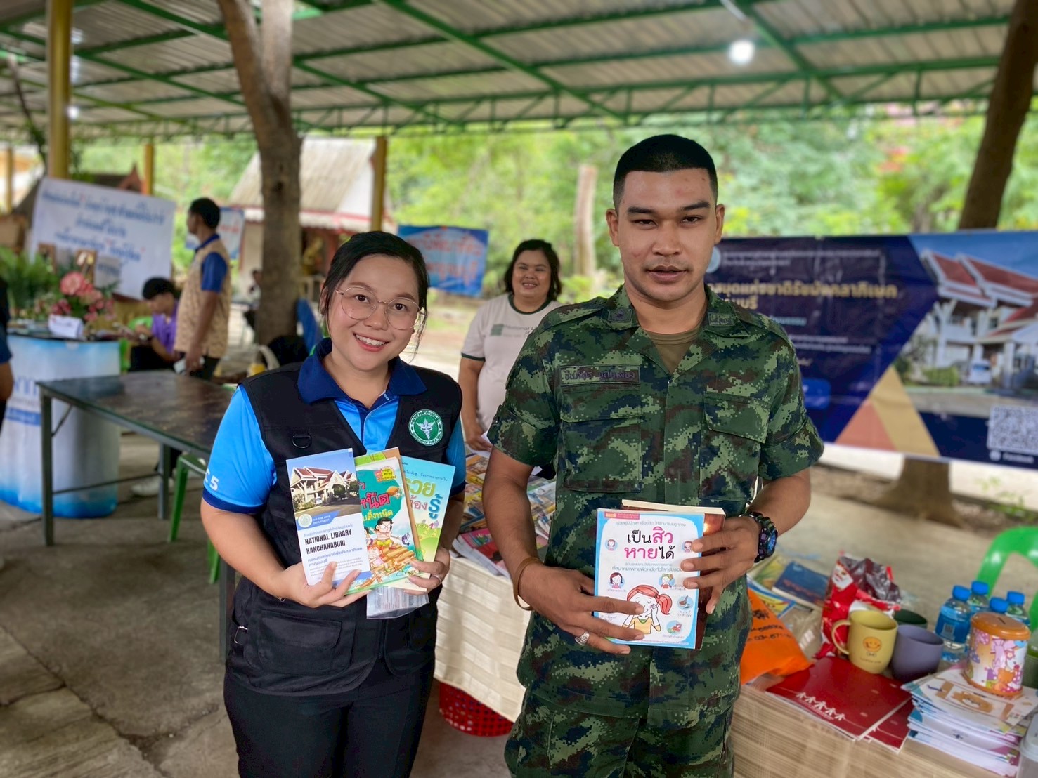 หอสมุดแห่งชาติรัชมังคลาภิเษก กาญจนบุรี ร่วมกับ จังหวัดกาญจนบุรีในโครงการจังหวัดเคลื่อนที่ “บำบัดทุกข์ บำรุงสุข สร้างรอยยิ้มให้ประชาชน” ครั้งที่ 9