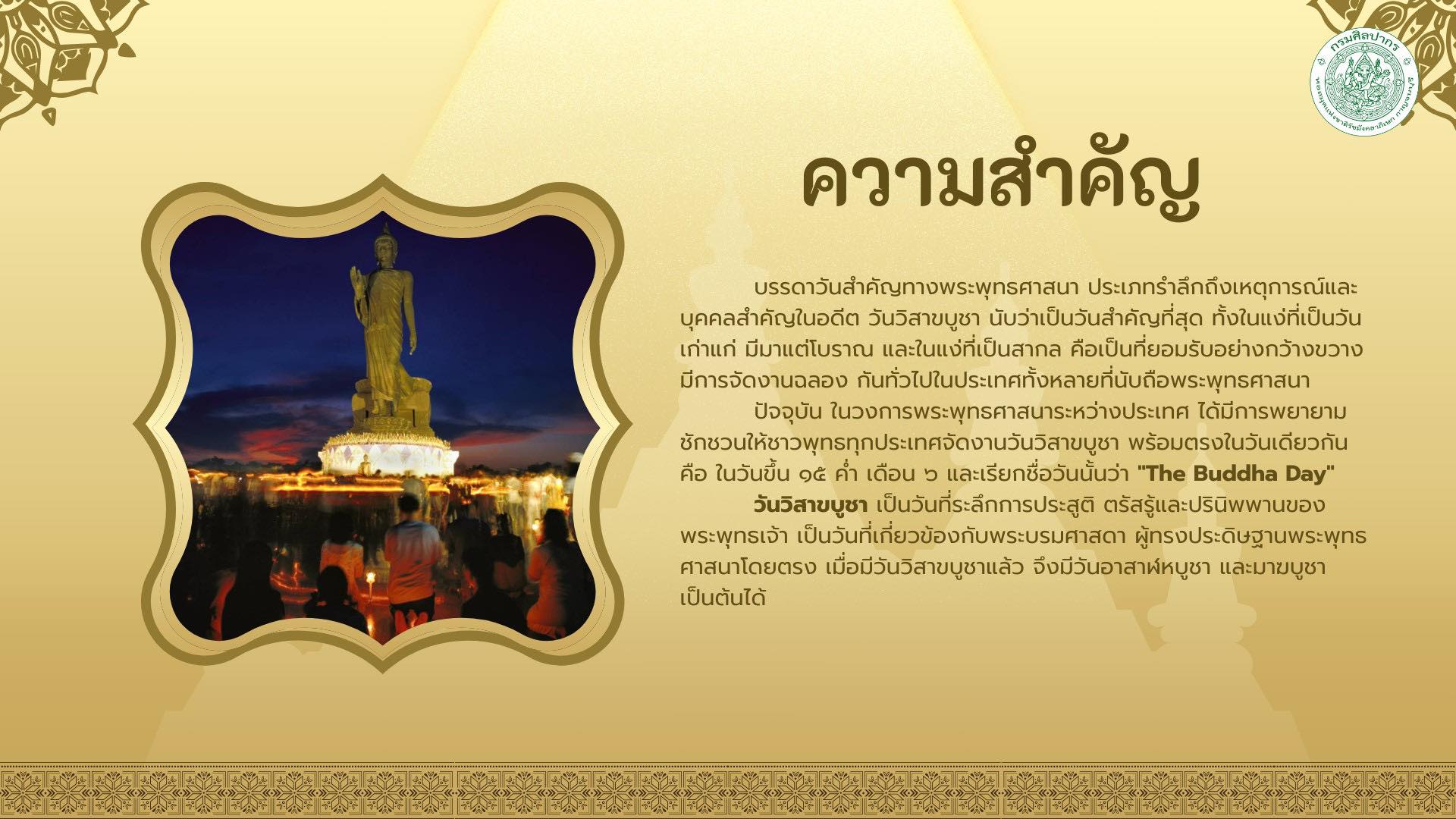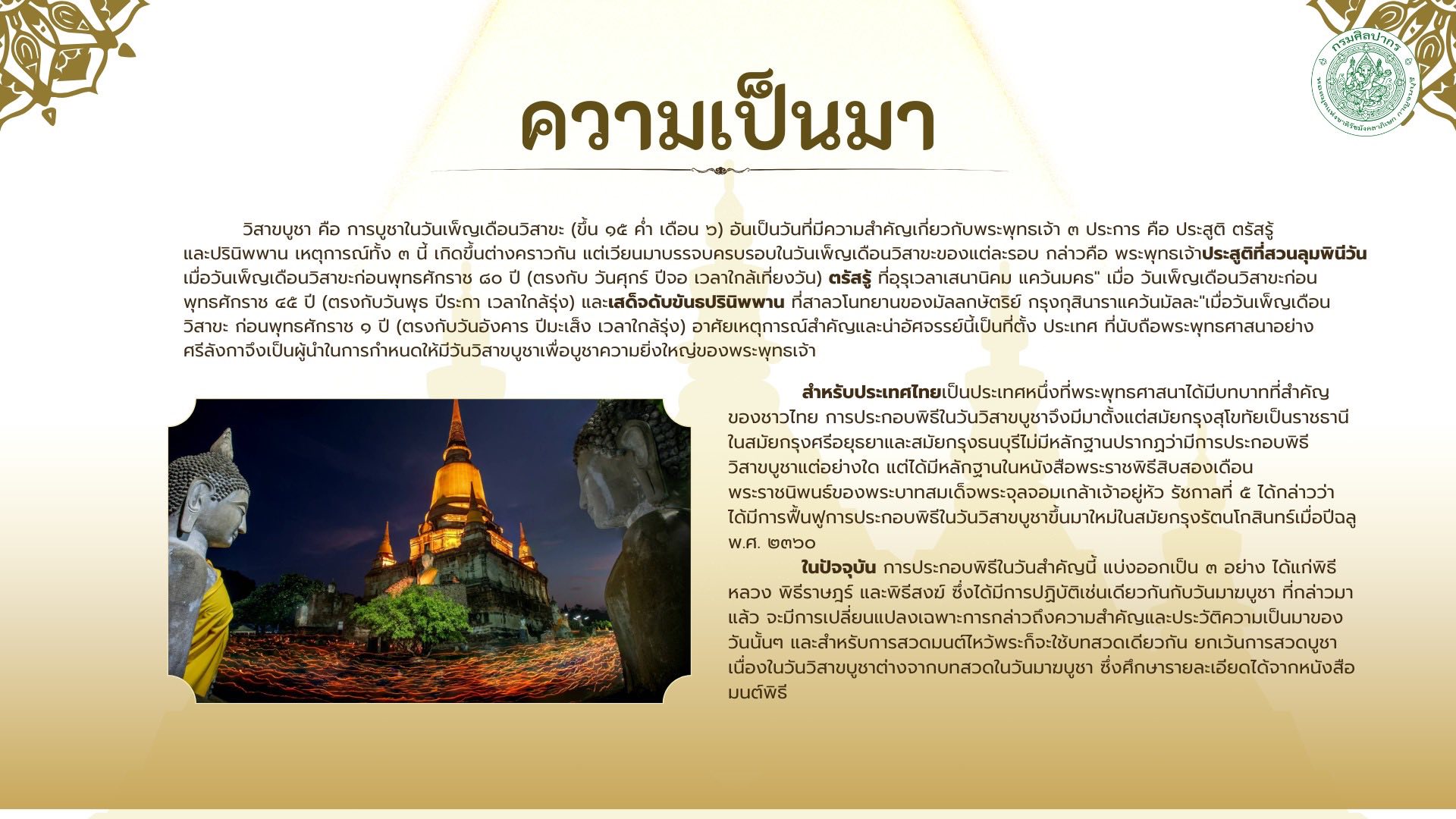 องค์ความรู้ เรื่อง วันสำคัญในพระพุทธศาสนา วันวิสาขบูชา