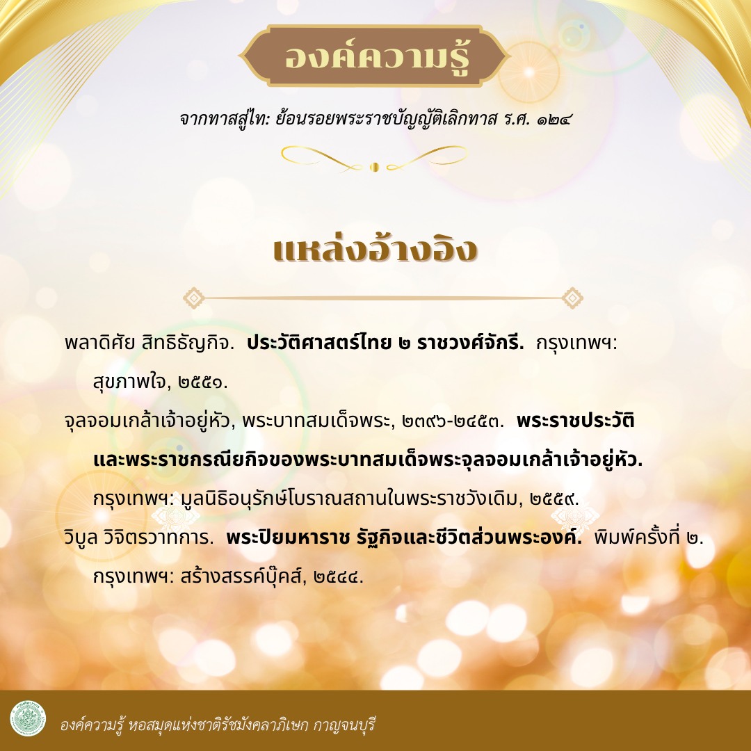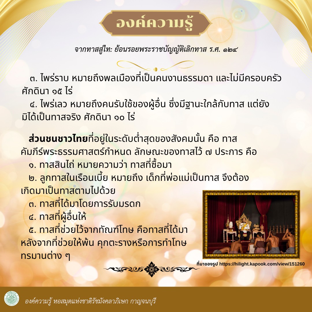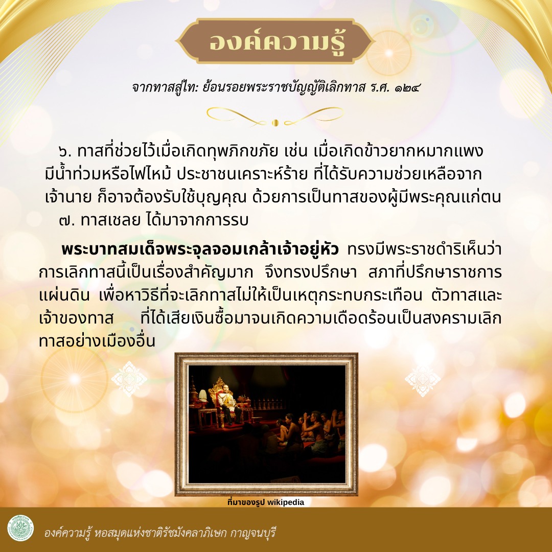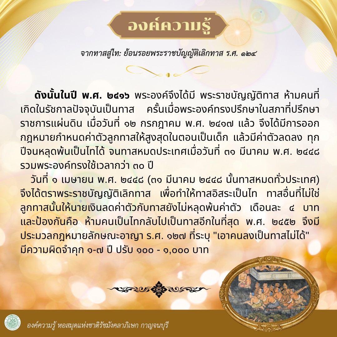 องค์ความรู้ เรื่อง จากทาสสู่ไท: ย้อนรอยพระราชบัญญัติเลิกทาส ร.ศ.124