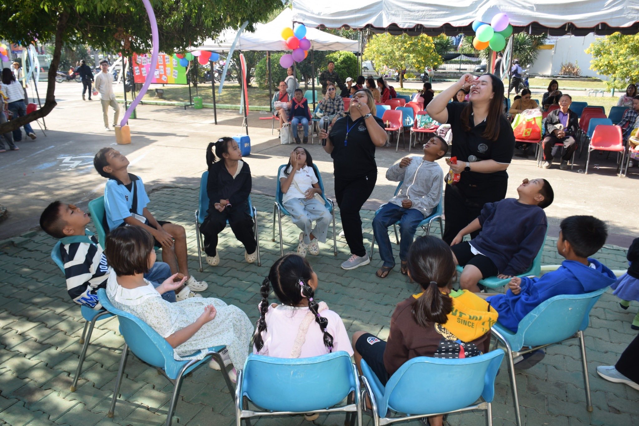 -เล่นเกมมหาสนุก อาทิ เกมตอบคำถาม,เกมชิงแก้ว,เกมส่งไข่หรรษา,เกมส่งต่อแก้ว และเกมกินขนมบนหน้า
