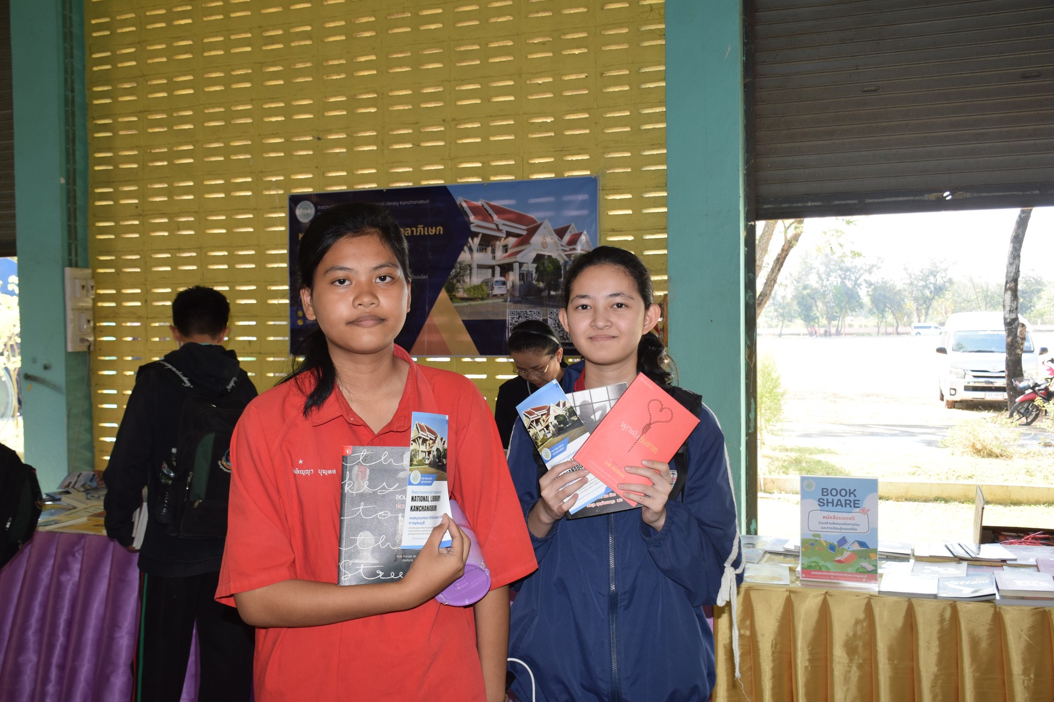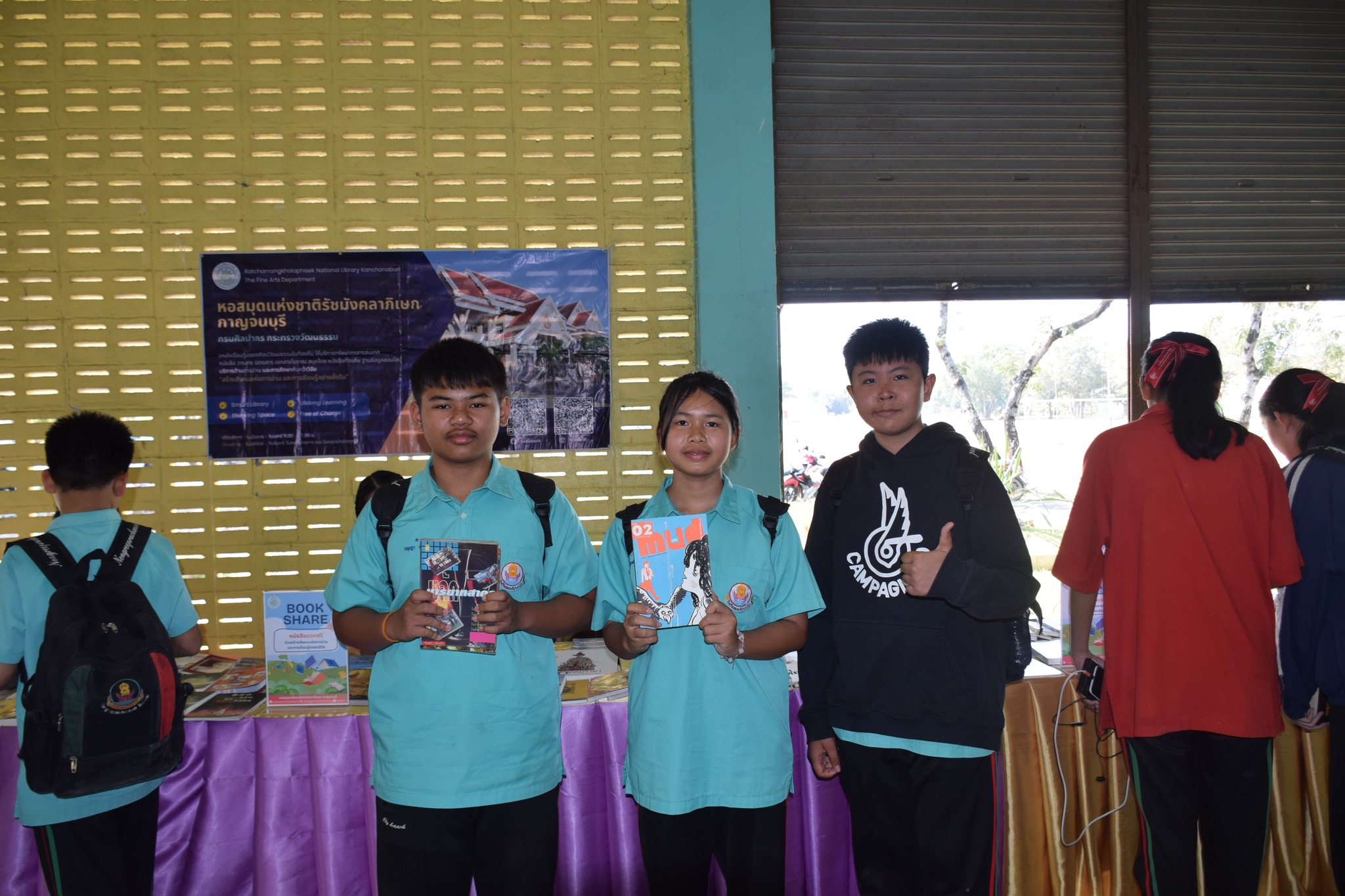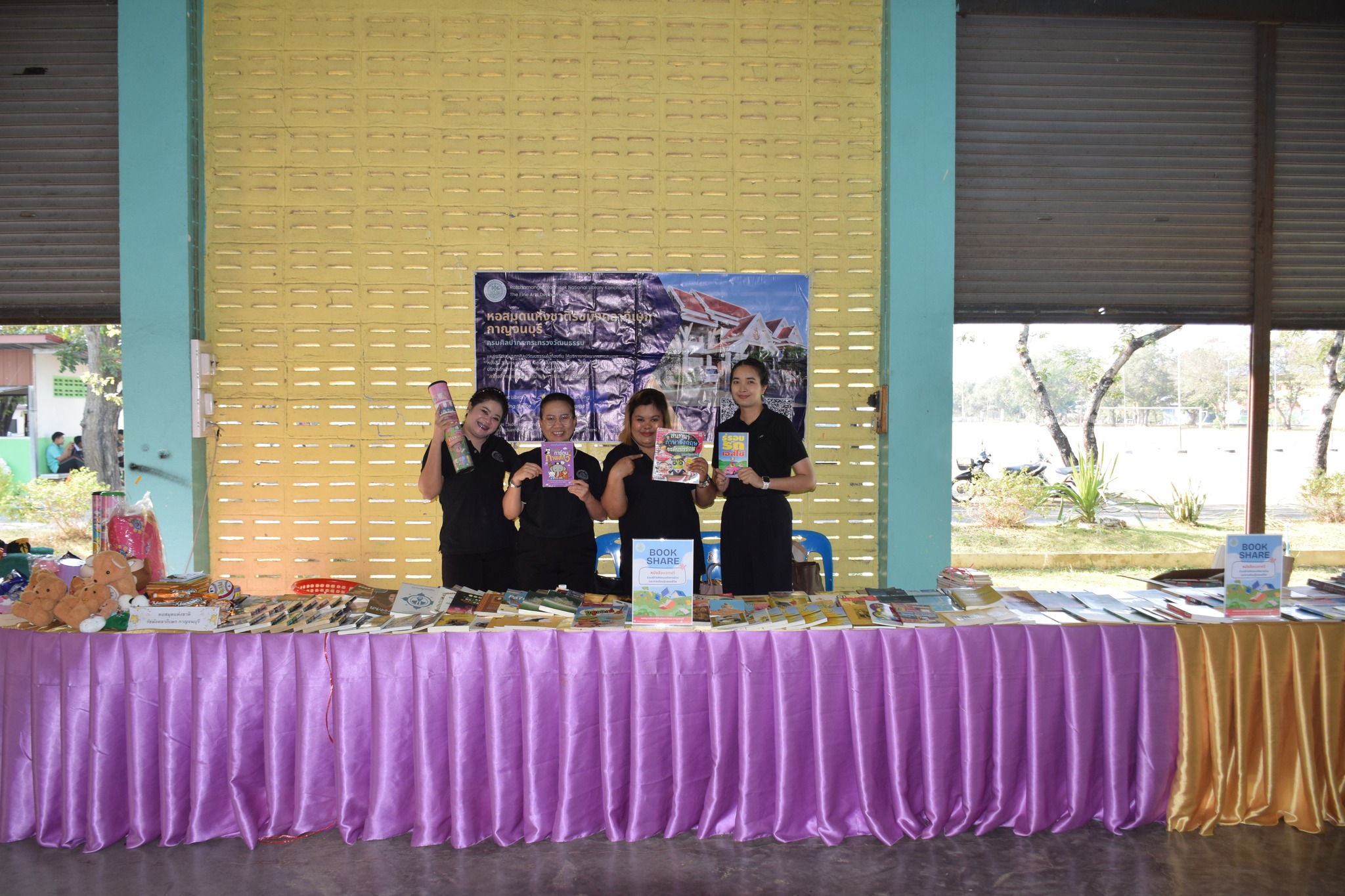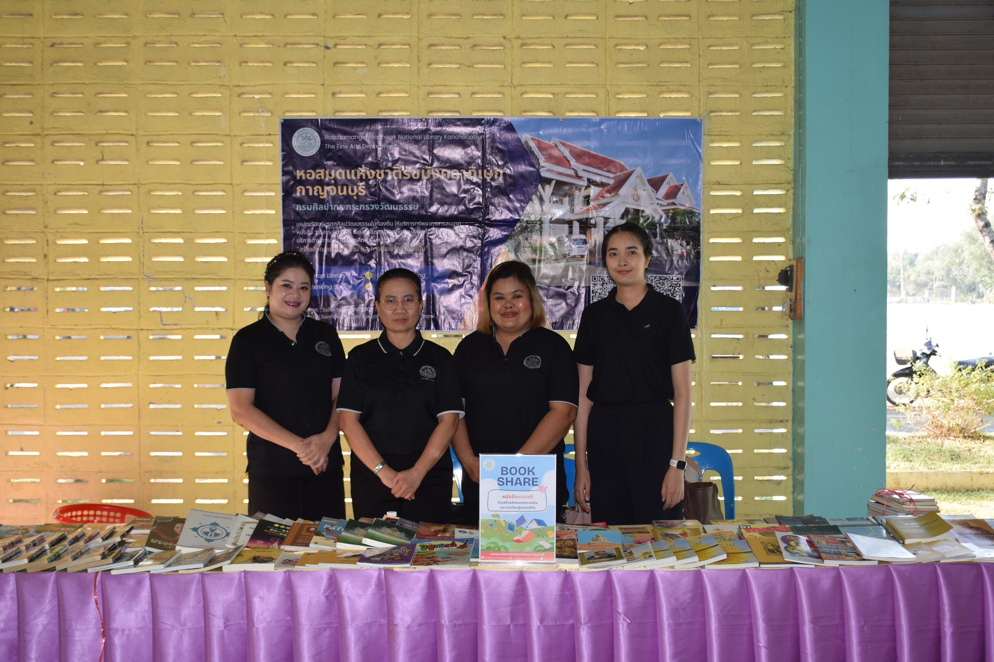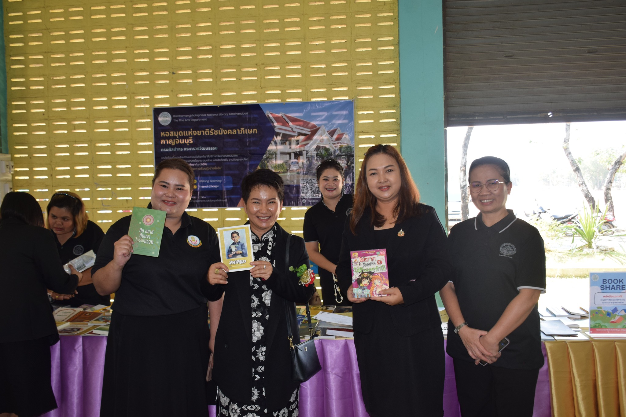 วันที่ 12 กุมภาพันธ์ 2569 นางสาวสรณ์สิริ สีหนาท หัวหน้าหอสมุดแห่งชาติรัชมังคลาภิเษก กาญจนบุรี พร้อมด้วยนางสาวอาทิตยา พิบูลแถว บรรณารักษ์ปฏิบัติการ, นางสาวลกุล เหมพันธ์ นางสาวมณฑิตา ทองอินทร์ บรรณารักษ์ และนายกนก ทองอินทร์ เจ้าพนักงานโสตทัศนศึกษา เข้าร่วมกิจกรรมนิทรรศการเปิดบ้านงานวิชาการ Open house ประจำปีการศึกษา 2568 "ดอกแก้วบาน สืบสานปัญญาไทย เทิดไท้พระพันปี" ณ โรงเรียนหนองรีประชานิมิต ต.หนองรี อ.บ่อพลอย จ.กาญจนบุรี ได้นำหนังสือดีจากโครงการ Books Share แบ่งปันกันอ่าน มอบให้ผู้เข้าร่วมกิจกรรมจำนวน 280 เล่ม จัดกิจกรรมเกมมหาสนุก บอร์ดเกม, ประสมคำ และอักษรป่วนชวนคิด