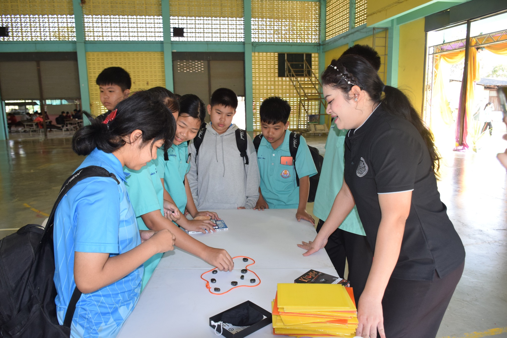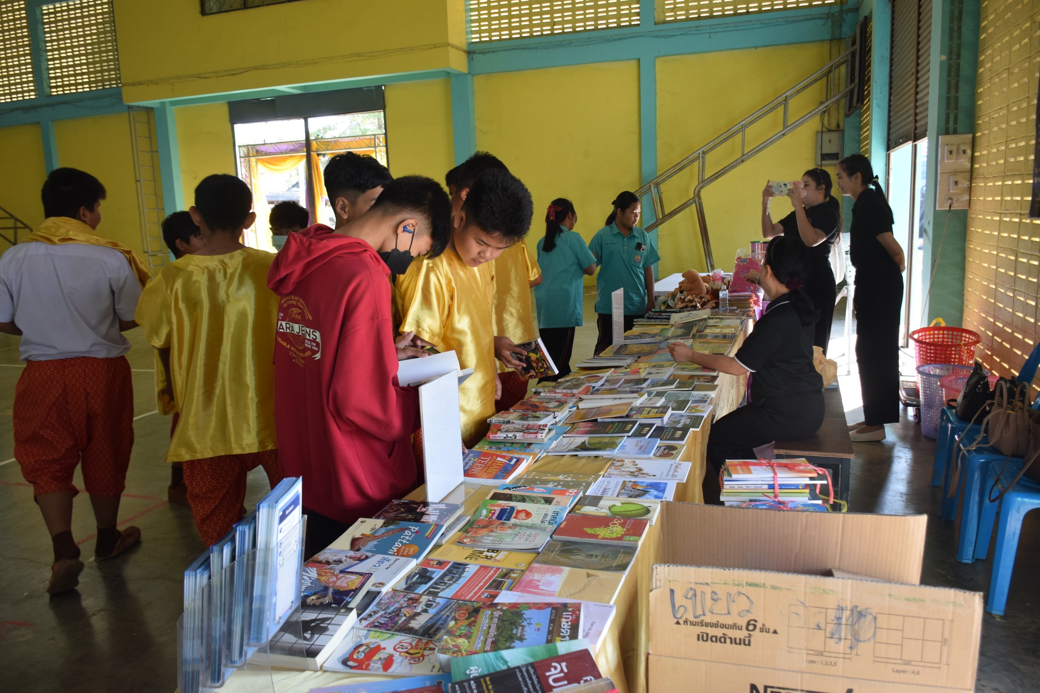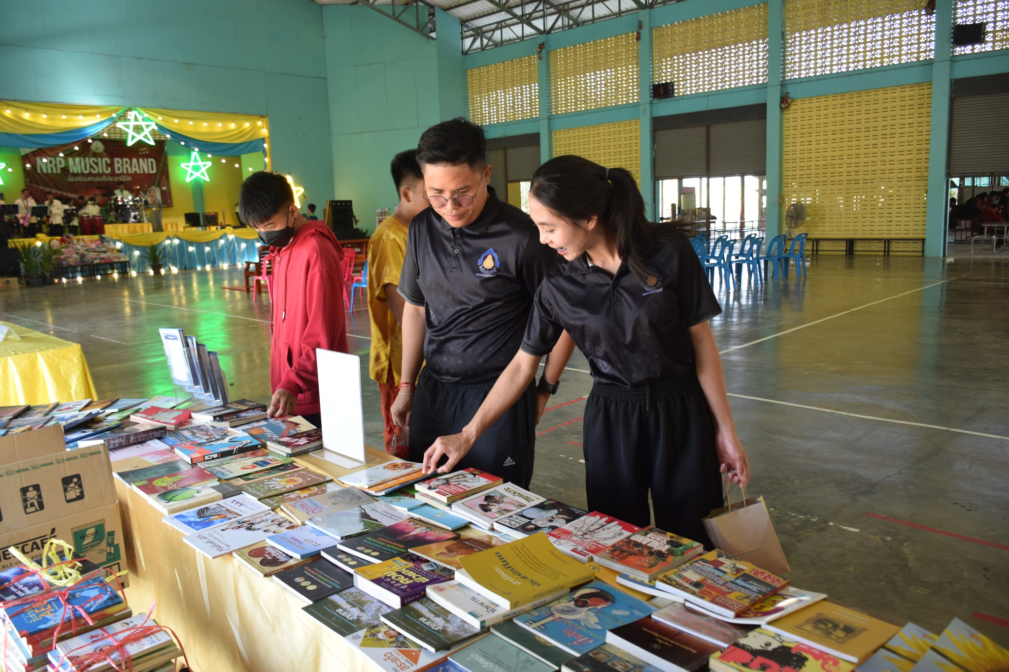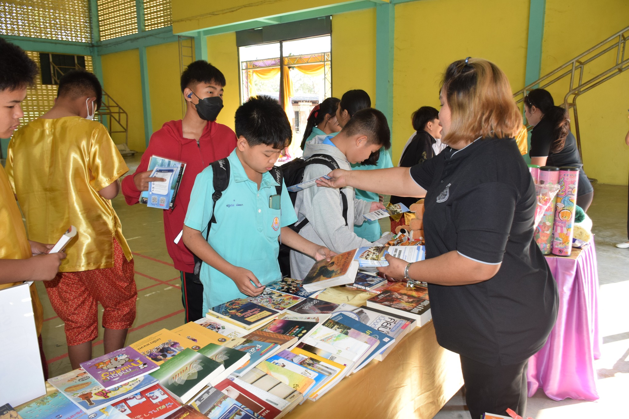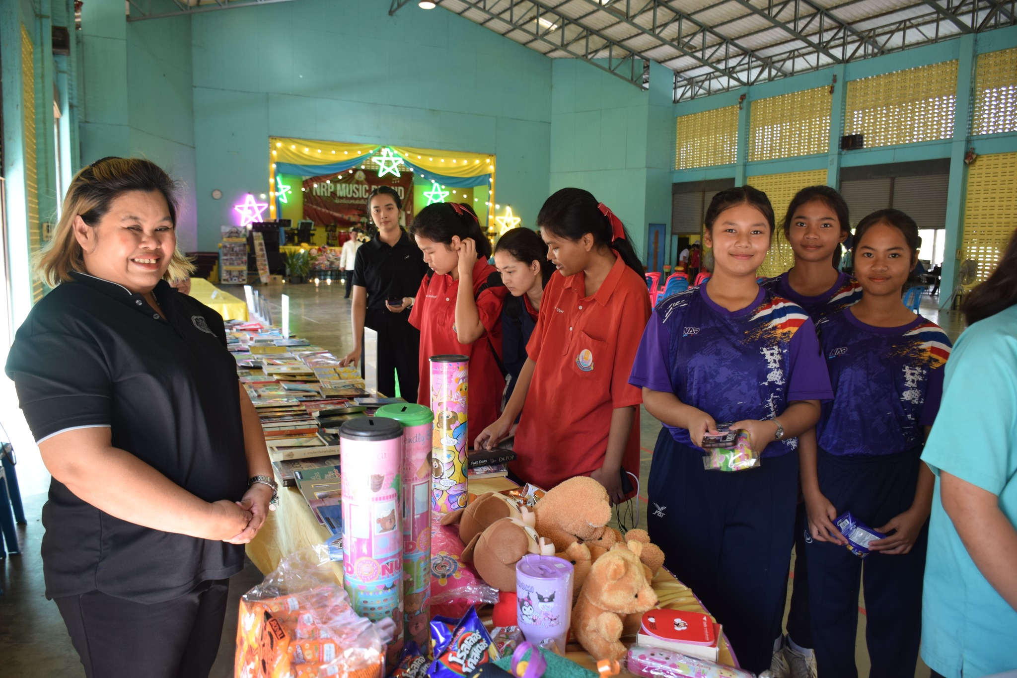 วันที่ 12 กุมภาพันธ์ 2569 นางสาวสรณ์สิริ สีหนาท หัวหน้าหอสมุดแห่งชาติรัชมังคลาภิเษก กาญจนบุรี พร้อมด้วยนางสาวอาทิตยา พิบูลแถว บรรณารักษ์ปฏิบัติการ, นางสาวลกุล เหมพันธ์ นางสาวมณฑิตา ทองอินทร์ บรรณารักษ์ และนายกนก ทองอินทร์ เจ้าพนักงานโสตทัศนศึกษา เข้าร่วมกิจกรรมนิทรรศการเปิดบ้านงานวิชาการ Open house ประจำปีการศึกษา 2568 "ดอกแก้วบาน สืบสานปัญญาไทย เทิดไท้พระพันปี" ณ โรงเรียนหนองรีประชานิมิต ต.หนองรี อ.บ่อพลอย จ.กาญจนบุรี ได้นำหนังสือดีจากโครงการ Books Share แบ่งปันกันอ่าน มอบให้ผู้เข้าร่วมกิจกรรมจำนวน 280 เล่ม จัดกิจกรรมเกมมหาสนุก บอร์ดเกม, ประสมคำ และอักษรป่วนชวนคิด