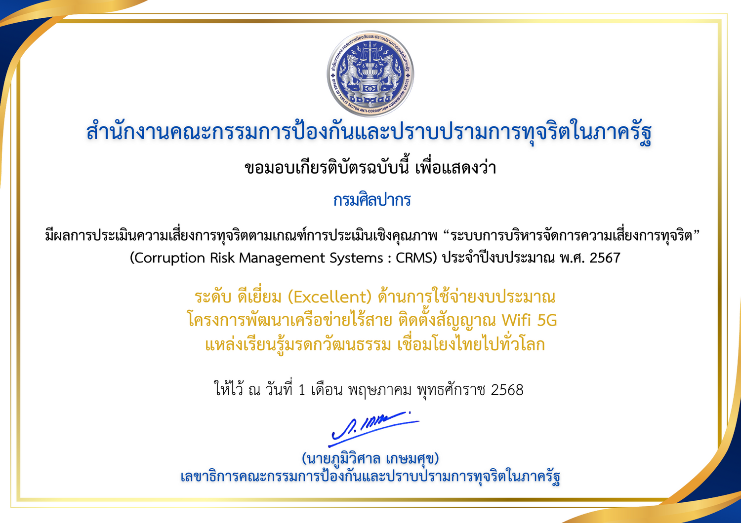 - ประกาศกรมศิลปากร เรื่อง รายชื่อผู้มีสิทธิเข้ารับคัดเลือกเพื่อจ้างบุคคลเป็นลูกจ้างชั่วคราว ตำแหน่งเจ้าพนักงานธุรการ Human Resource Group Office of Finearts Department Wednesday 26 November 2025 488