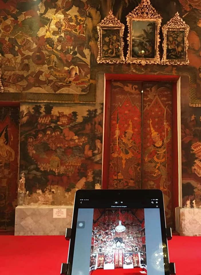 งานบันทึกหลักฐานสภาพความชำรุดเสียหายของจิตรกรรมฝาผนัง ด้วยการบันทึกภาพถ่าย เพื่อใช้เป็นหลักฐานประกอบการปฏิบัติงานอนุรักษ์ในขั้นตอนต่อไป