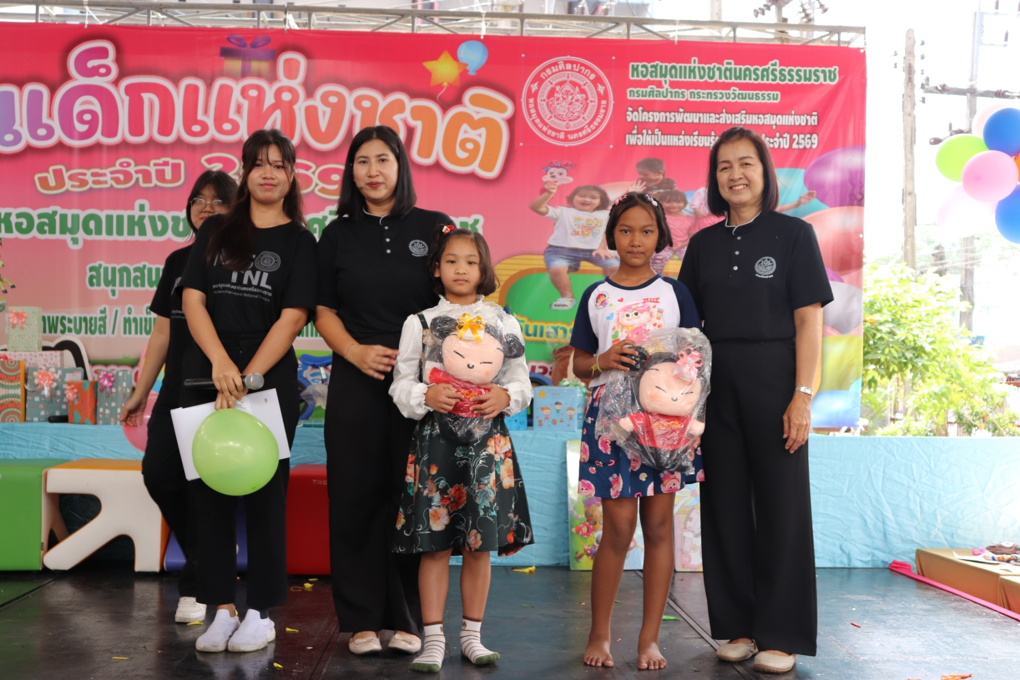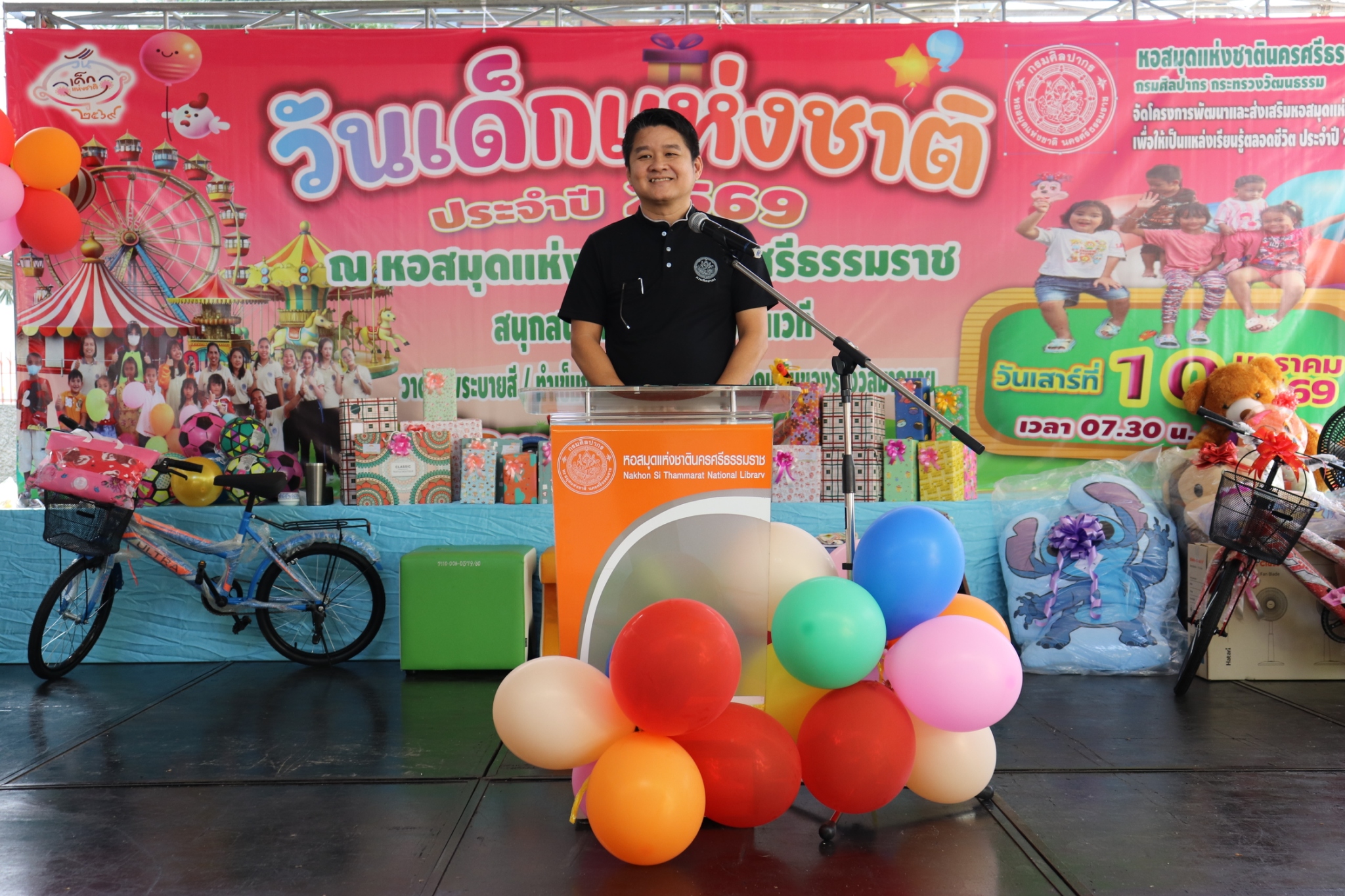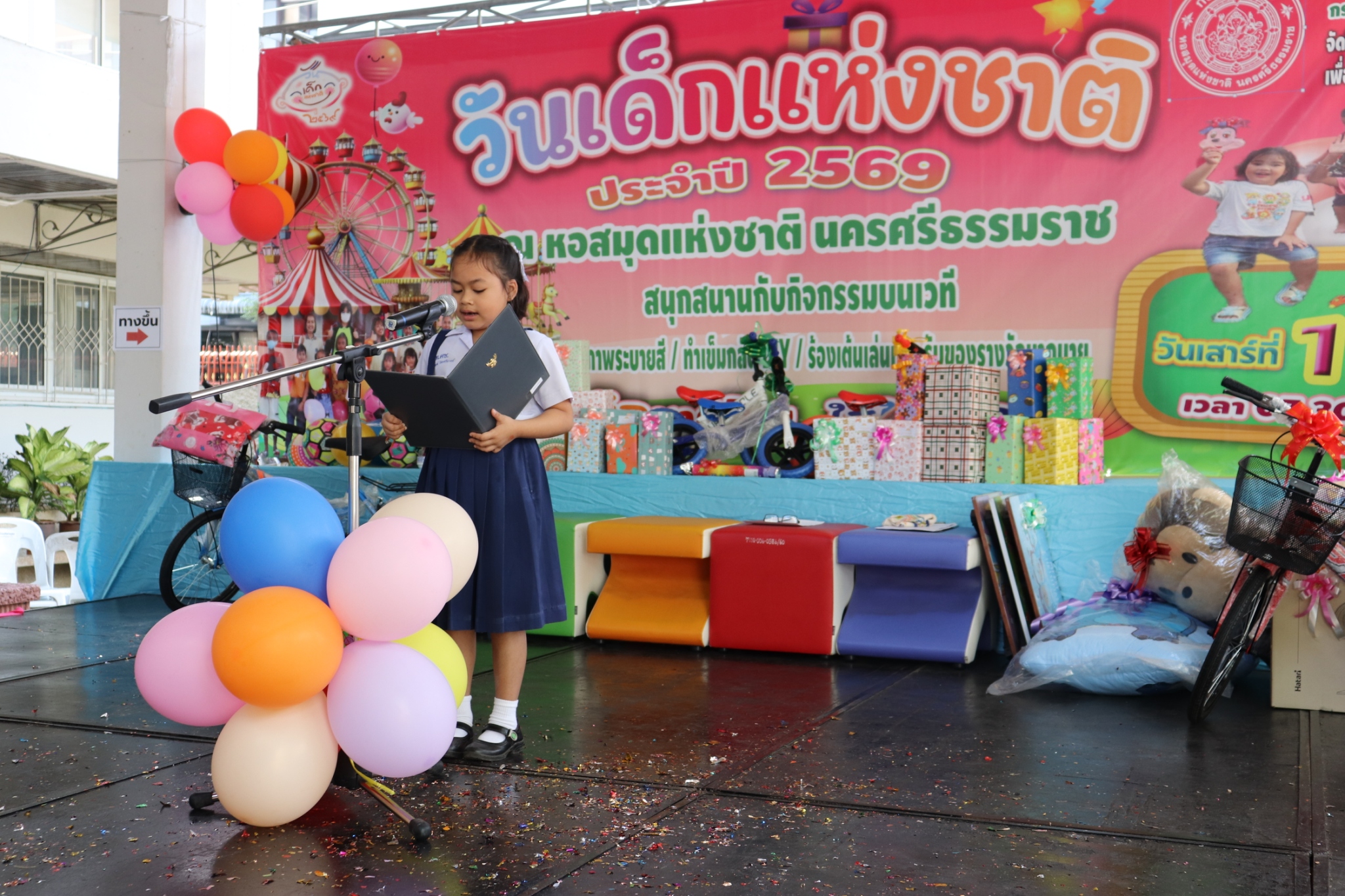 วันเสาร์ที่ ๑๐ มกราคม ๒๕๖๙ หอสมุดแห่งชาตินครศรีธรรมราช จัดโครงการพัฒนาและส่งเสริมหอสมุดแห่งชาติเพื่อให้เป็นแหล่งเรียนรู้ตลอดชีวิต เนื่องในวันเด็กแห่งชาติ ประจำปี ๒๕๖๙ ณ หอสมุดแห่งชาตินครศรีธรรมราช โดยมีนายภัทรพงษ์ เก่าเงิน ผู้อำนวยการสำนักศิลปากรที่ ๑๒ นครศรีธรรมราช เป็นประธานในพิธีเปิดกิจกรรมวันเด็กแห่งชาติ ประจำปี ๒๕๖๙ และนางวันเพ็ญ สุกใส บรรณารักษ์ชำนาญการ รักษาการในตำแหน่ง ผู้อำนวยการหอสมุดแห่งชาตินครศรีธรรมราช เป็นผู้กล่าวรายงาน