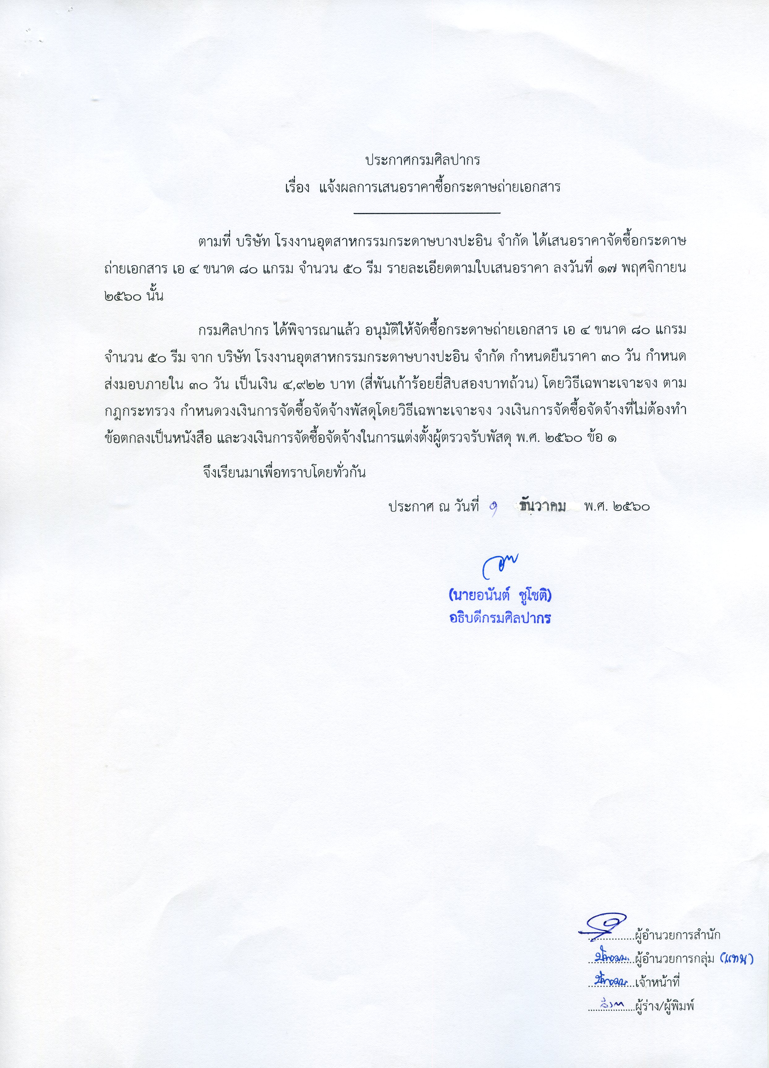 แจ้งผลการเสนอราคาซื้อกระดาษถ่ายเอกสาร