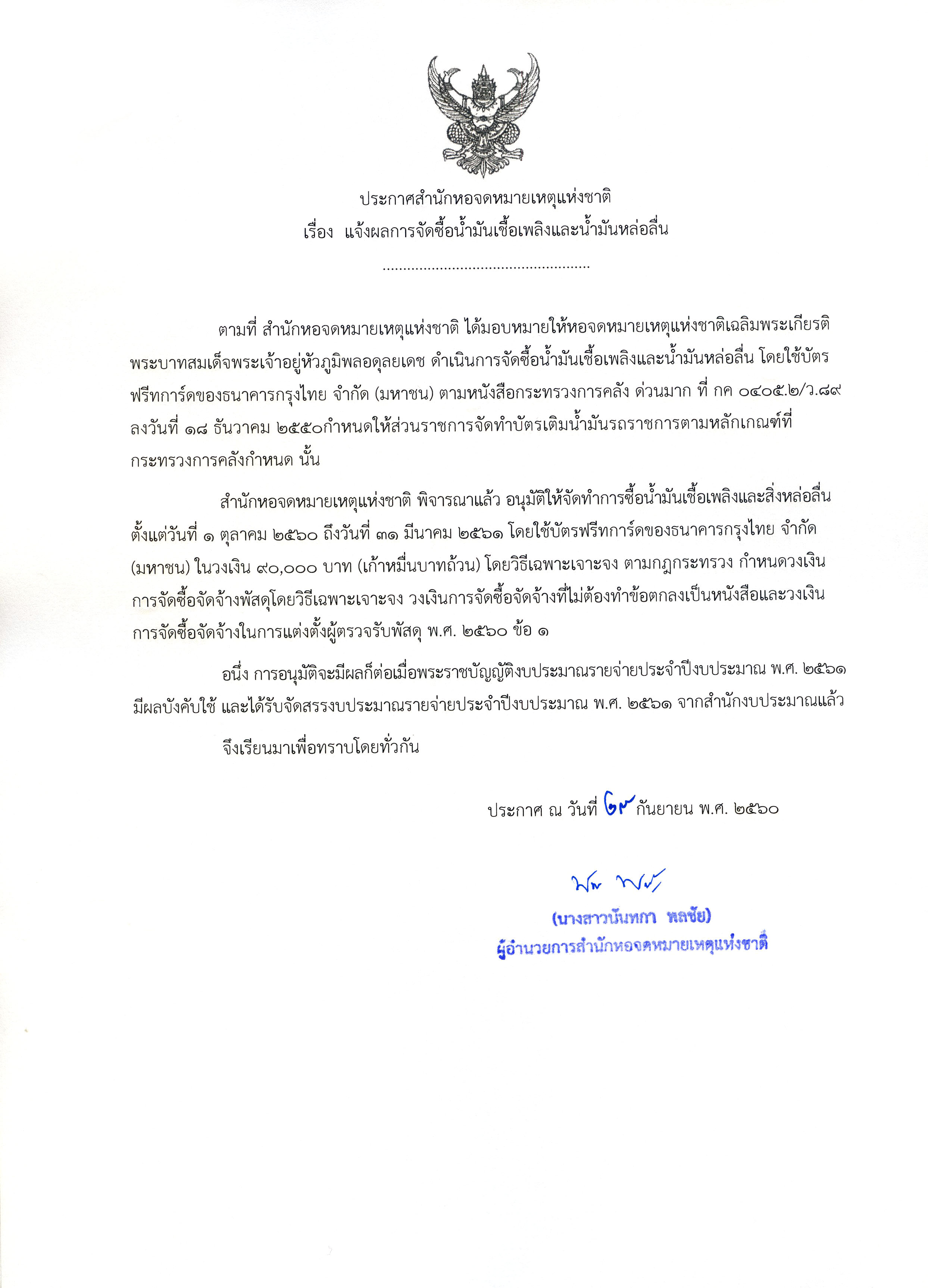 แจ้งผลการเสนอราคาจ้างเหมากำจัดปลวกอาคาร หอจดหมายเหตุแห่งชาติเฉลิมพระเกียรติฯ จำนวน 1 ราย โดยวิธีเฉพาะเจาะจง