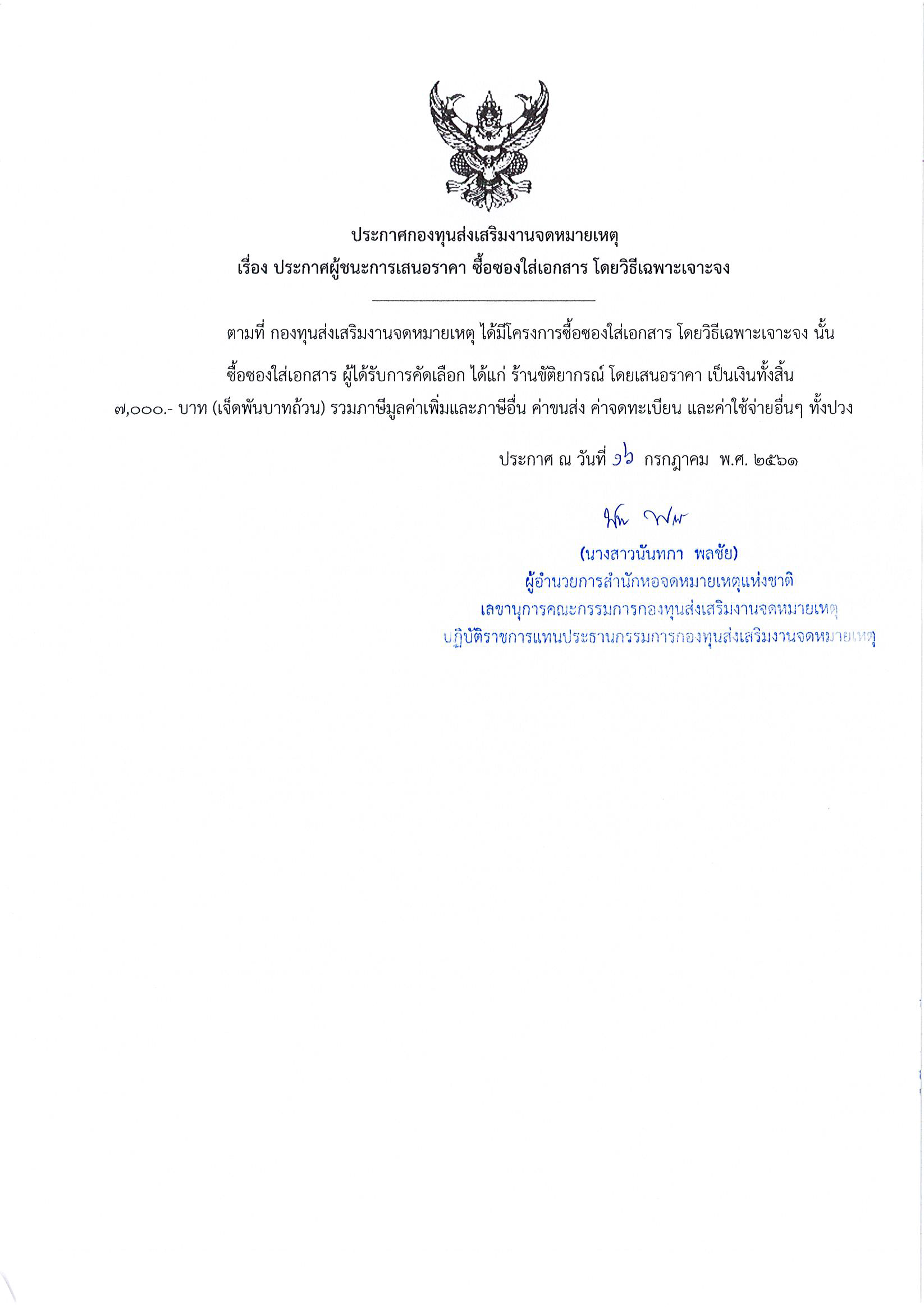 ประกาศผู้ชนะการเสนอราคาซื้อซองใส่เอกสาร