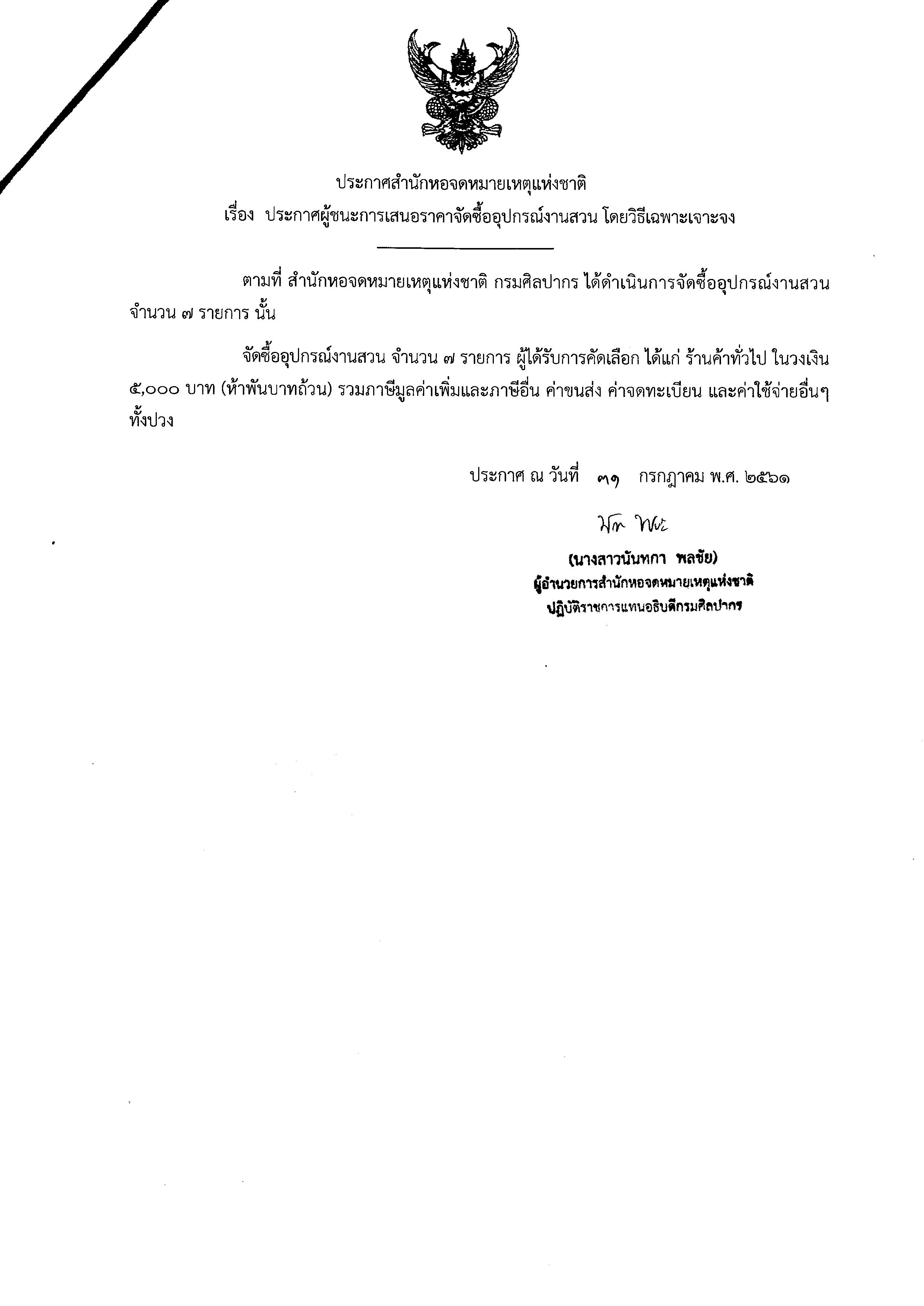 ประกาศผู้ชนะการเสนอราคาจัดซื้ออุปกรณ์งานสวน 2