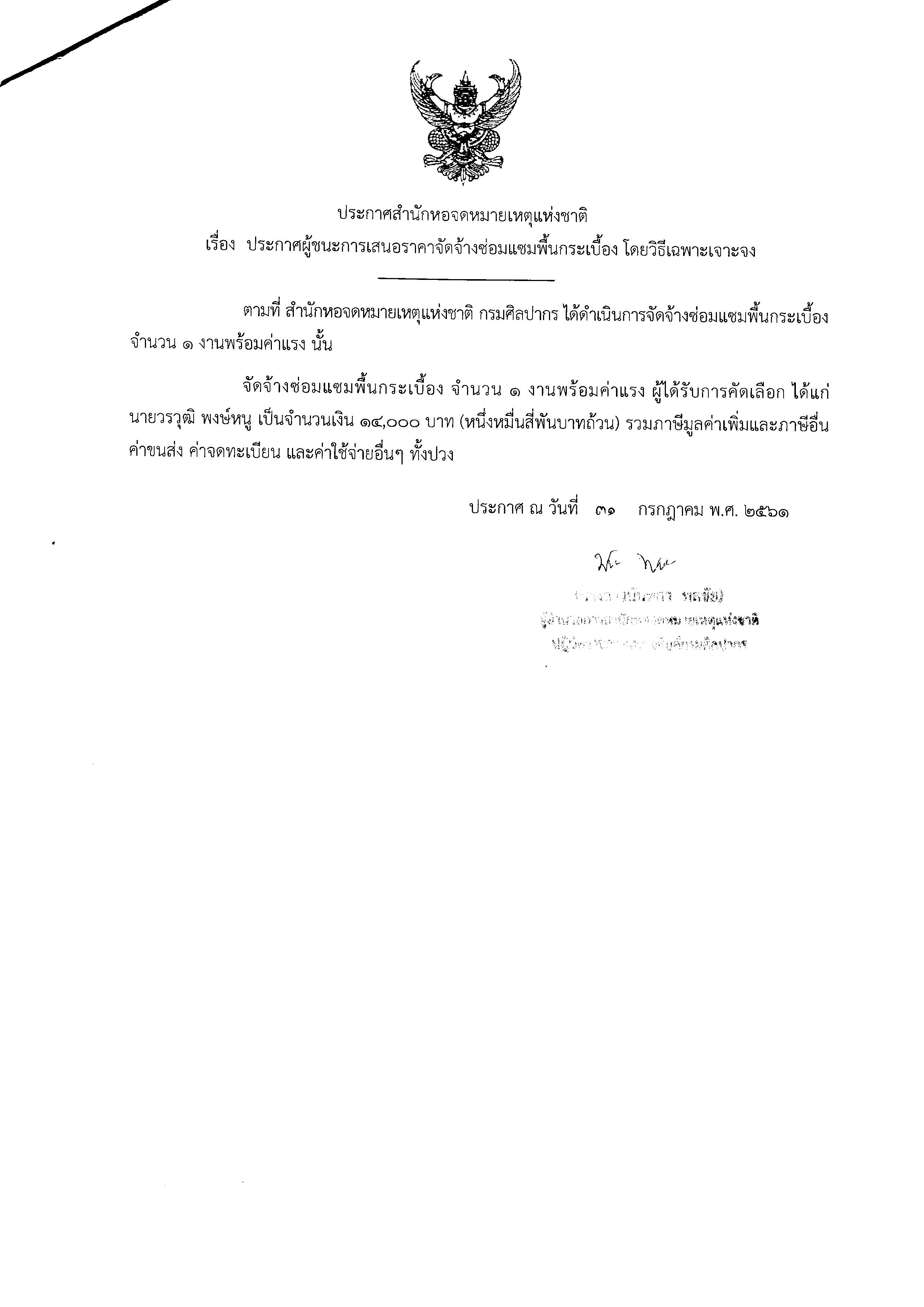 ประกาศผู้ชนะการเสนอราคาจัดจ้างซ่อมพื้นกระเบื้อง