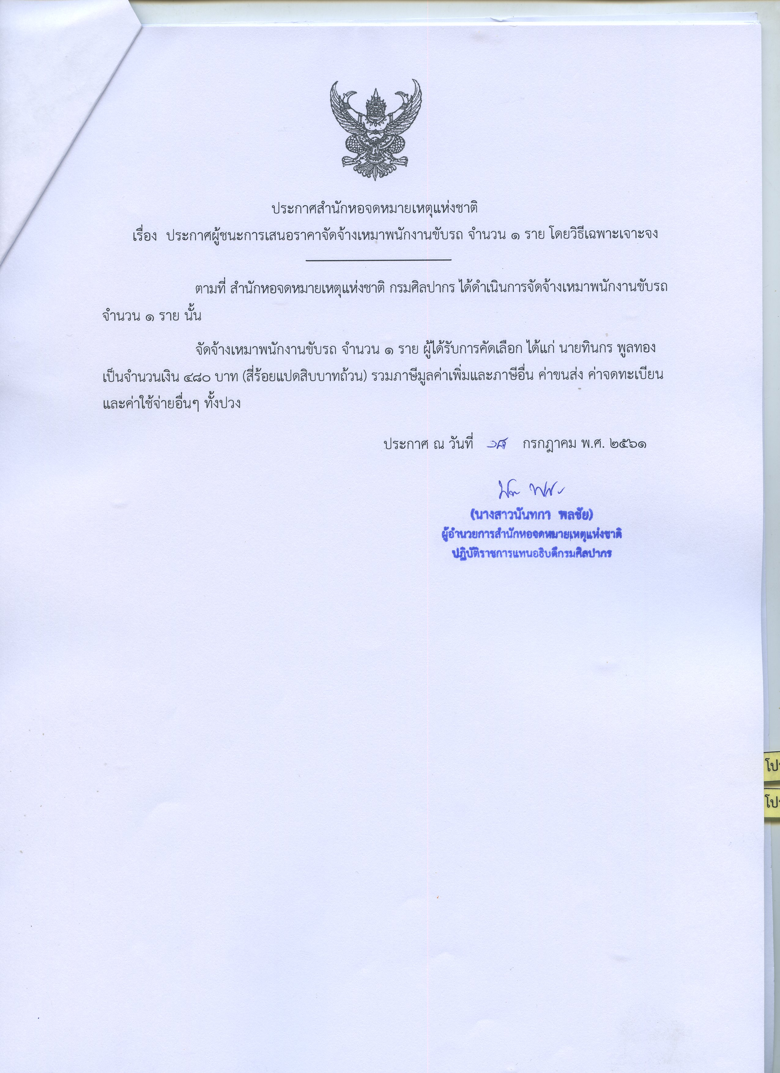 ประกาศผู้ชนะการเสนอราคาจัดจ้างเหมาพนักงานขับรถ