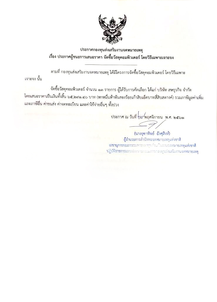 ประกาศผู้ชนะการเสนอราคา จัดซื้อวัสดุคอมพิวเตอร์ 2