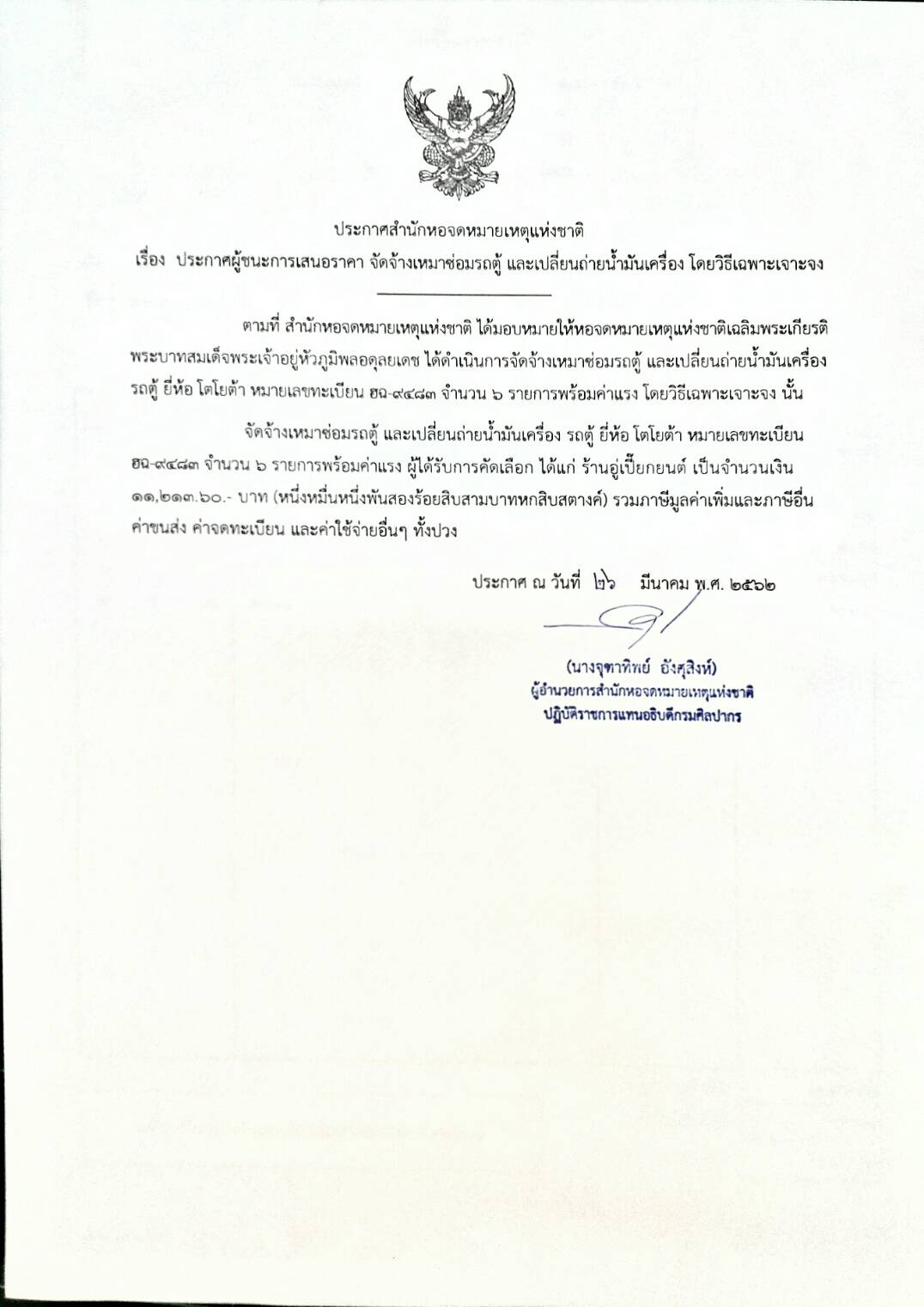 ประกาศผู้ชนะการเสนอราคาจัดจ้างเหมาซ่อมรถตู้และเปลี่ยนถ่ายน้ำมันเครื่อง